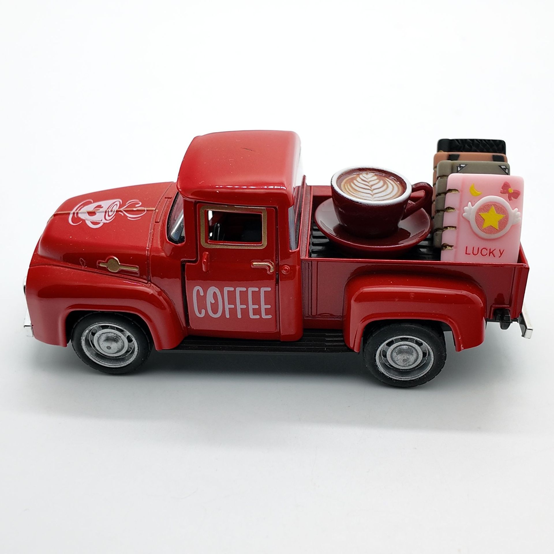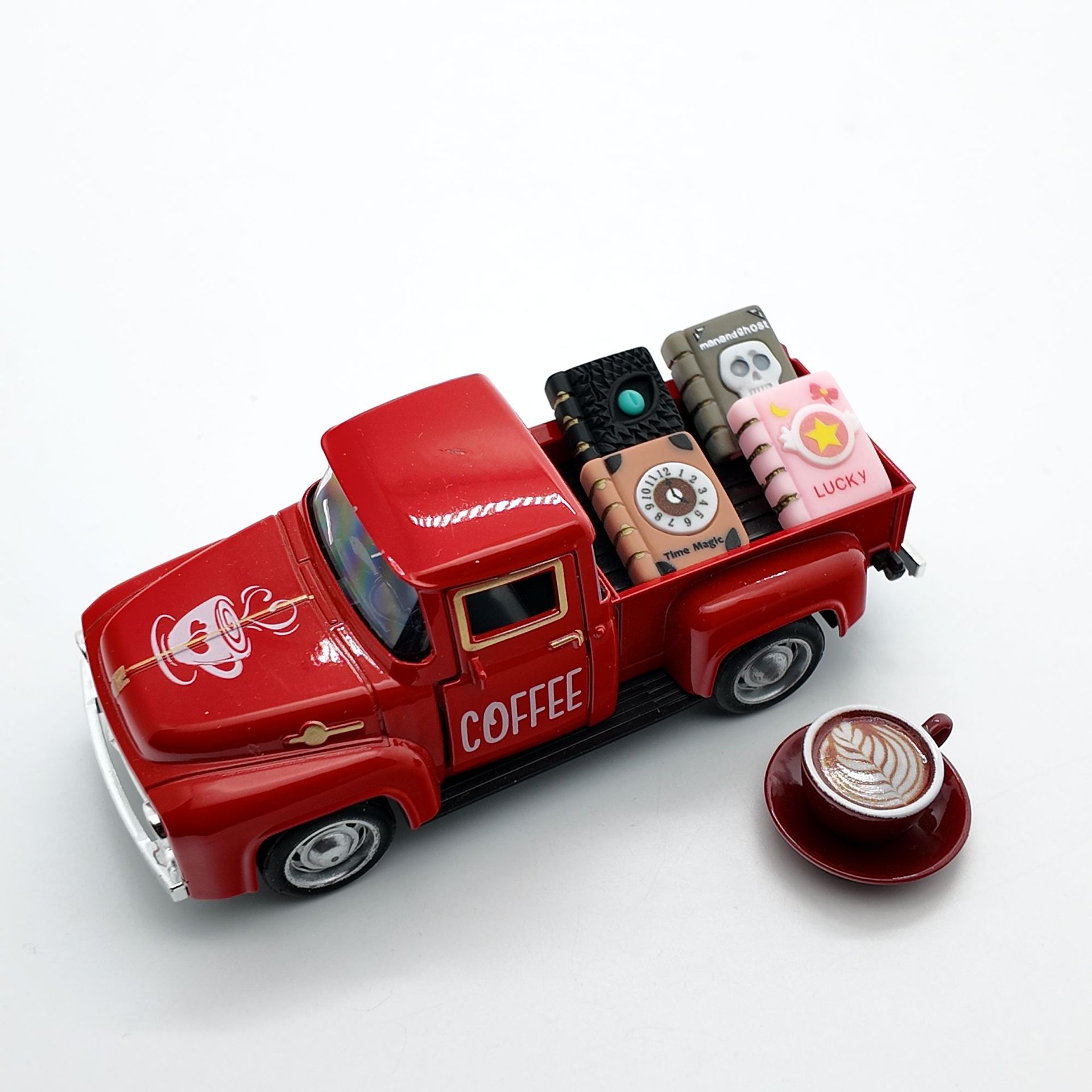 • 빨간색 픽업트럭 12.5cm + 커피 1세트 + 책 4권(밀봉된 흰색 상자)