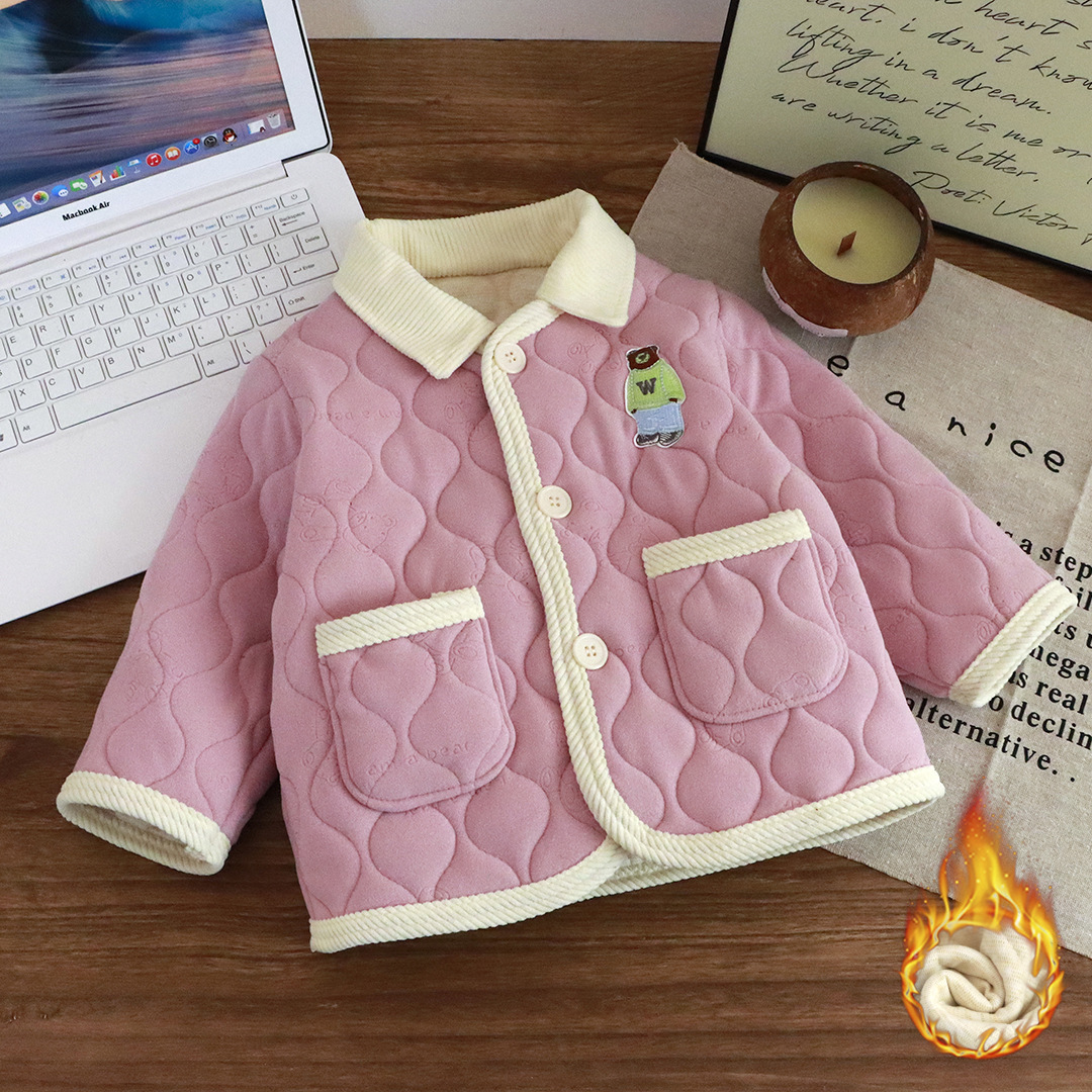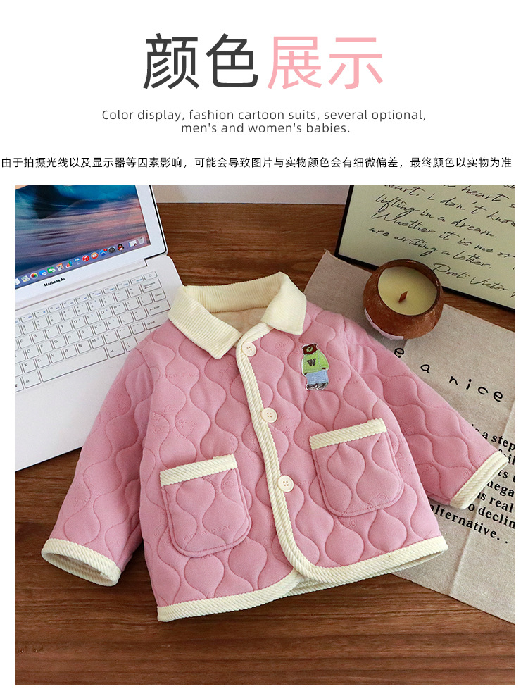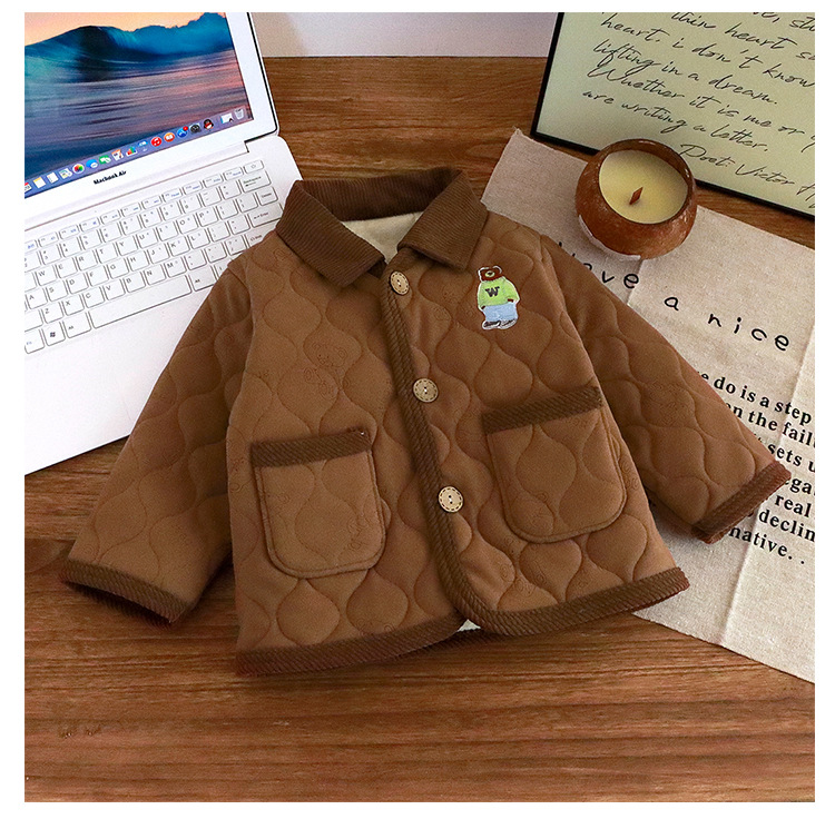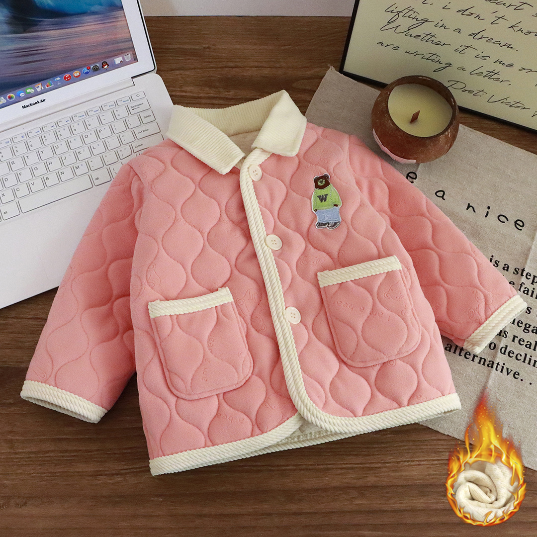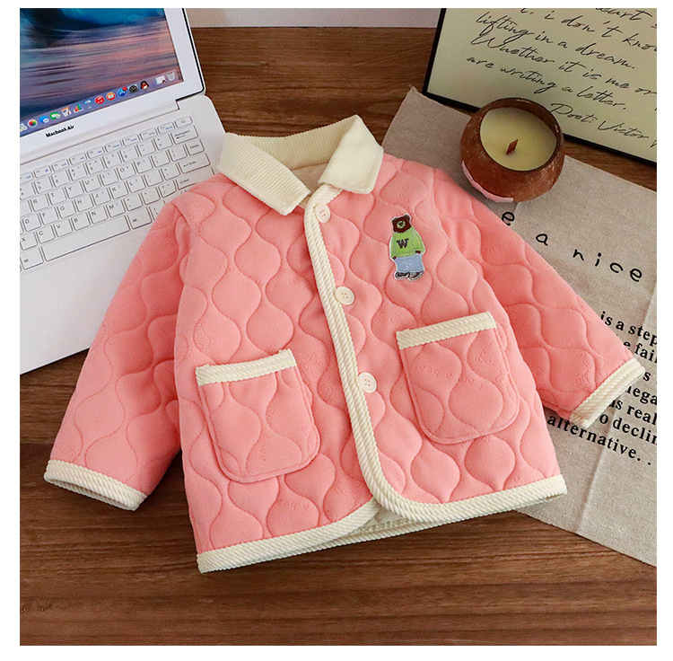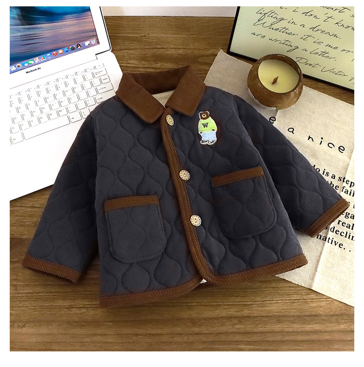 가을과 겨울 새로운 어린이 면화 패딩 재킷 옷깃 마름모꼴 퀼트 코튼 패딩 코트 중소 어린이 3 층 면 패딩 코트 캐주얼 베어 코트스토어 가기