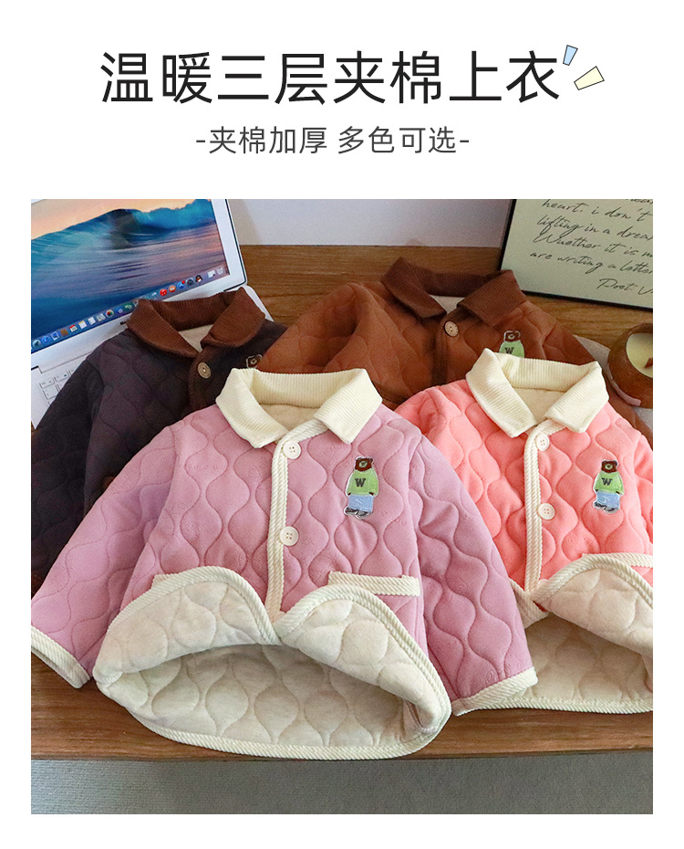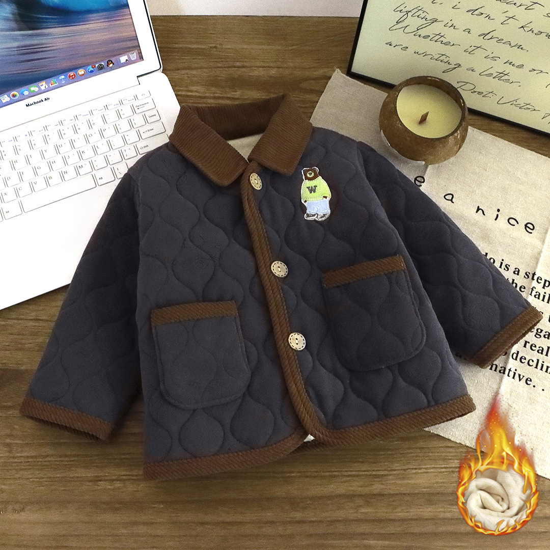 가을과 겨울 새로운 어린이 면화 패딩 재킷 옷깃 마름모꼴 퀼트 코튼 패딩 코트 중소 어린이 3 층 면 패딩 코트 캐주얼 베어 코트