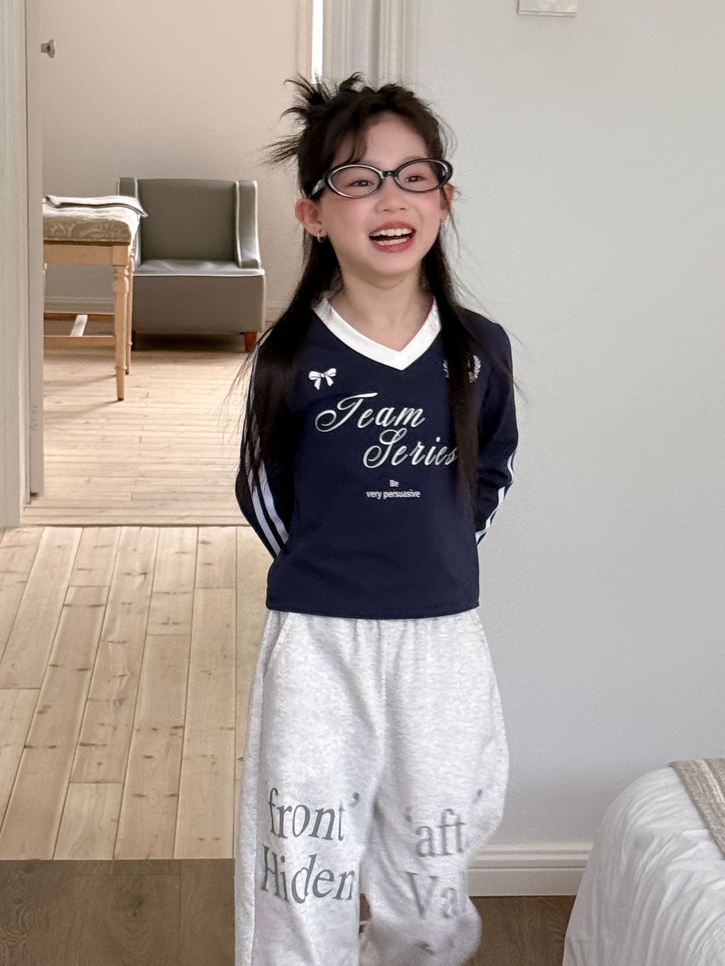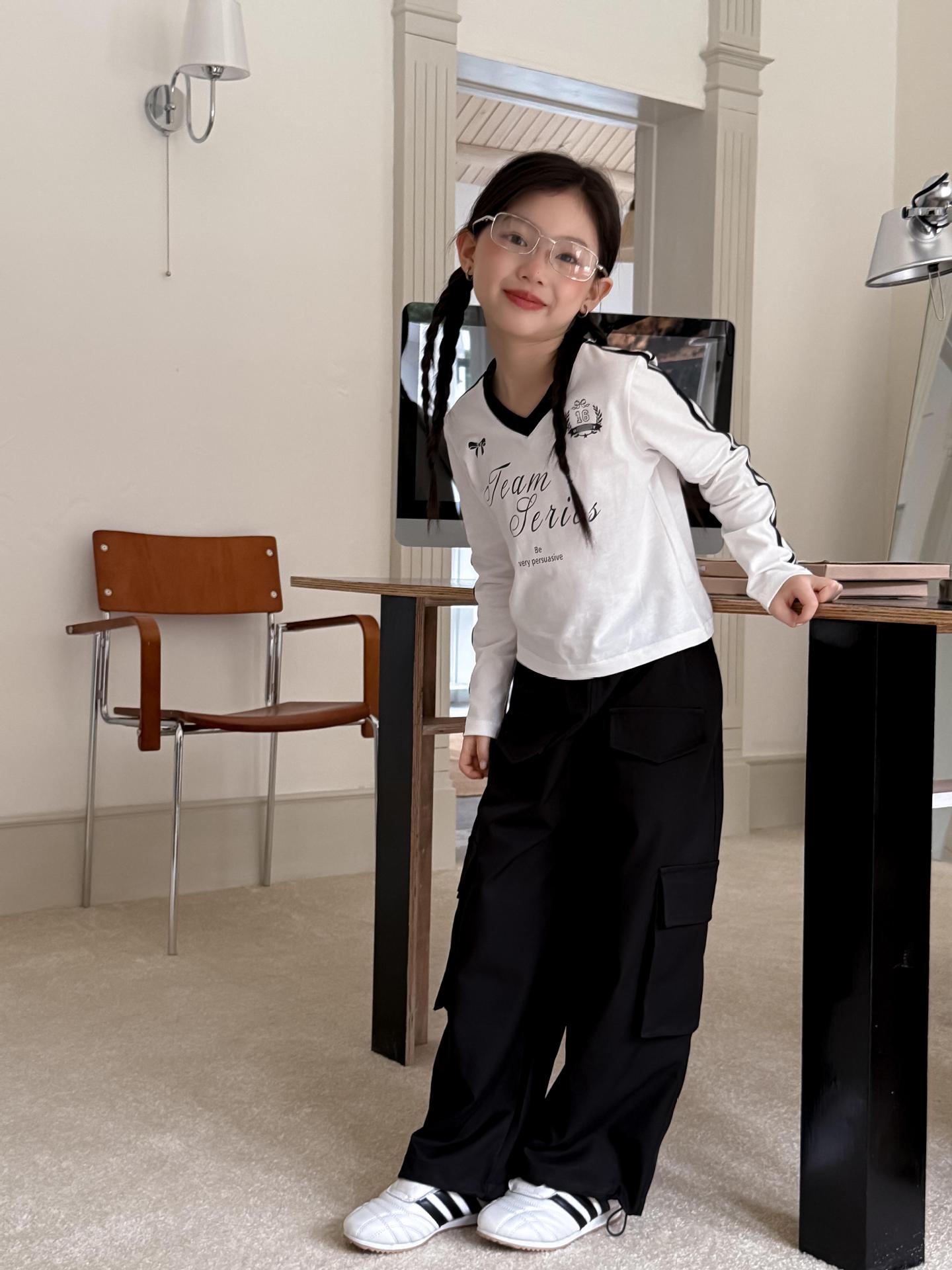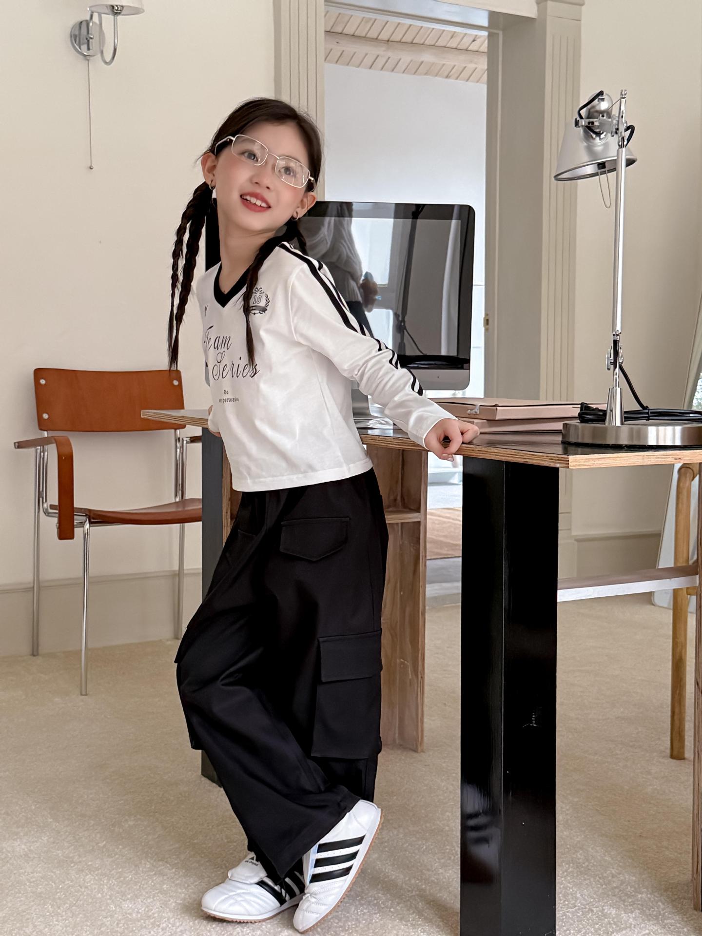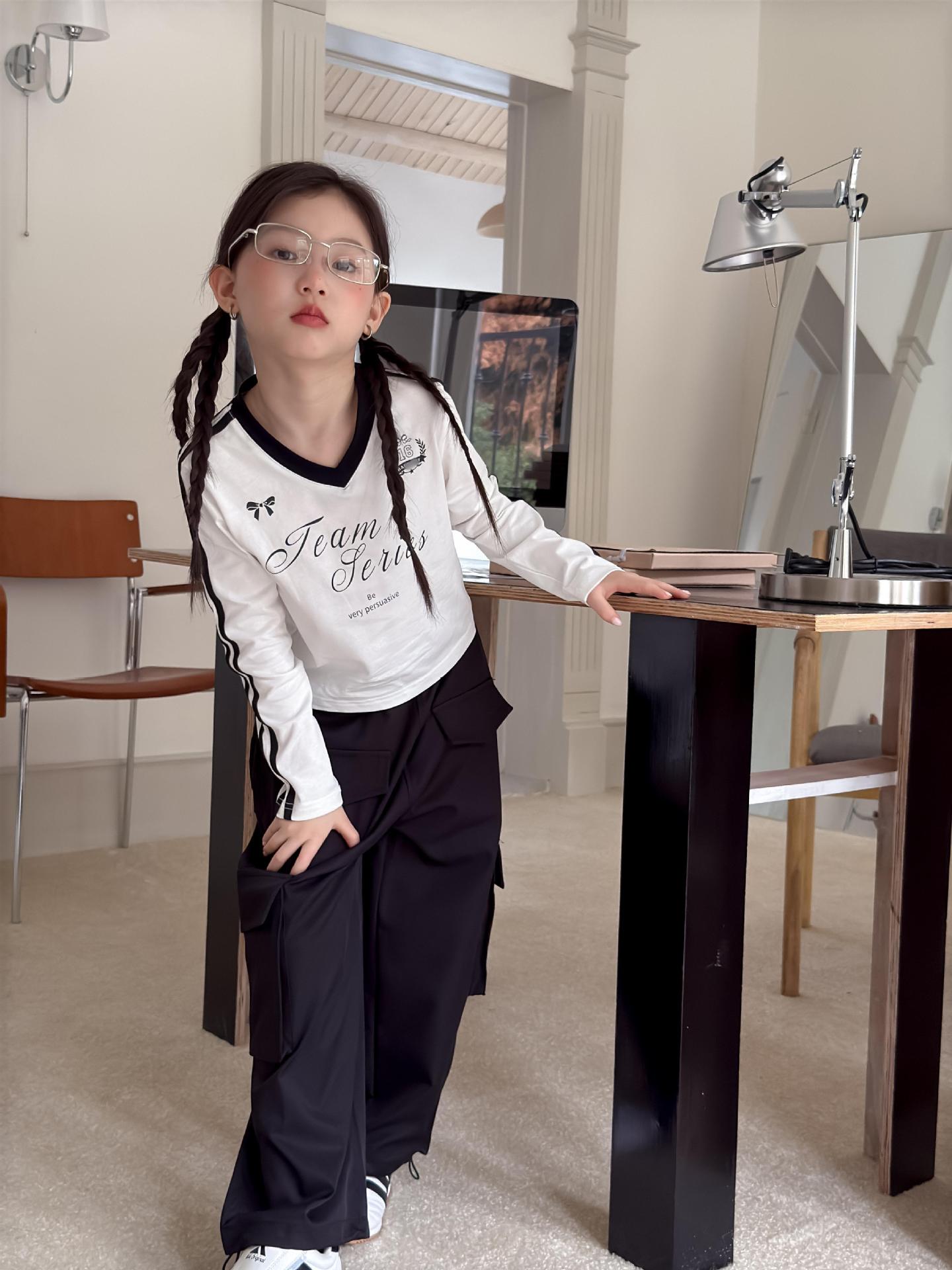 어린이 티셔츠 2025 봄 소녀 긴팔 V 넥 슬림 핏 내면베이스 셔츠 중 어린이 보물 인쇄 티셔츠 탑스토어 가기