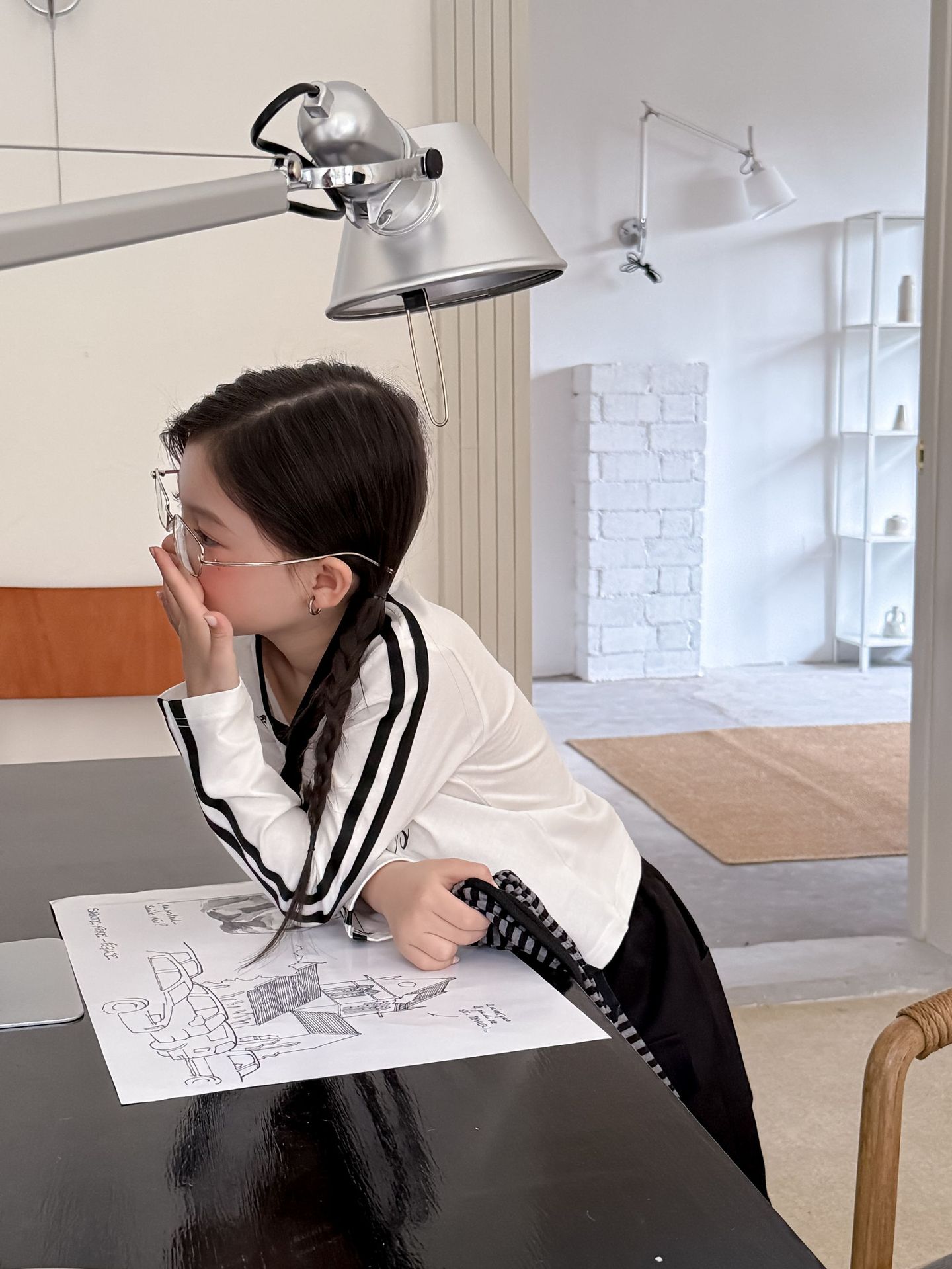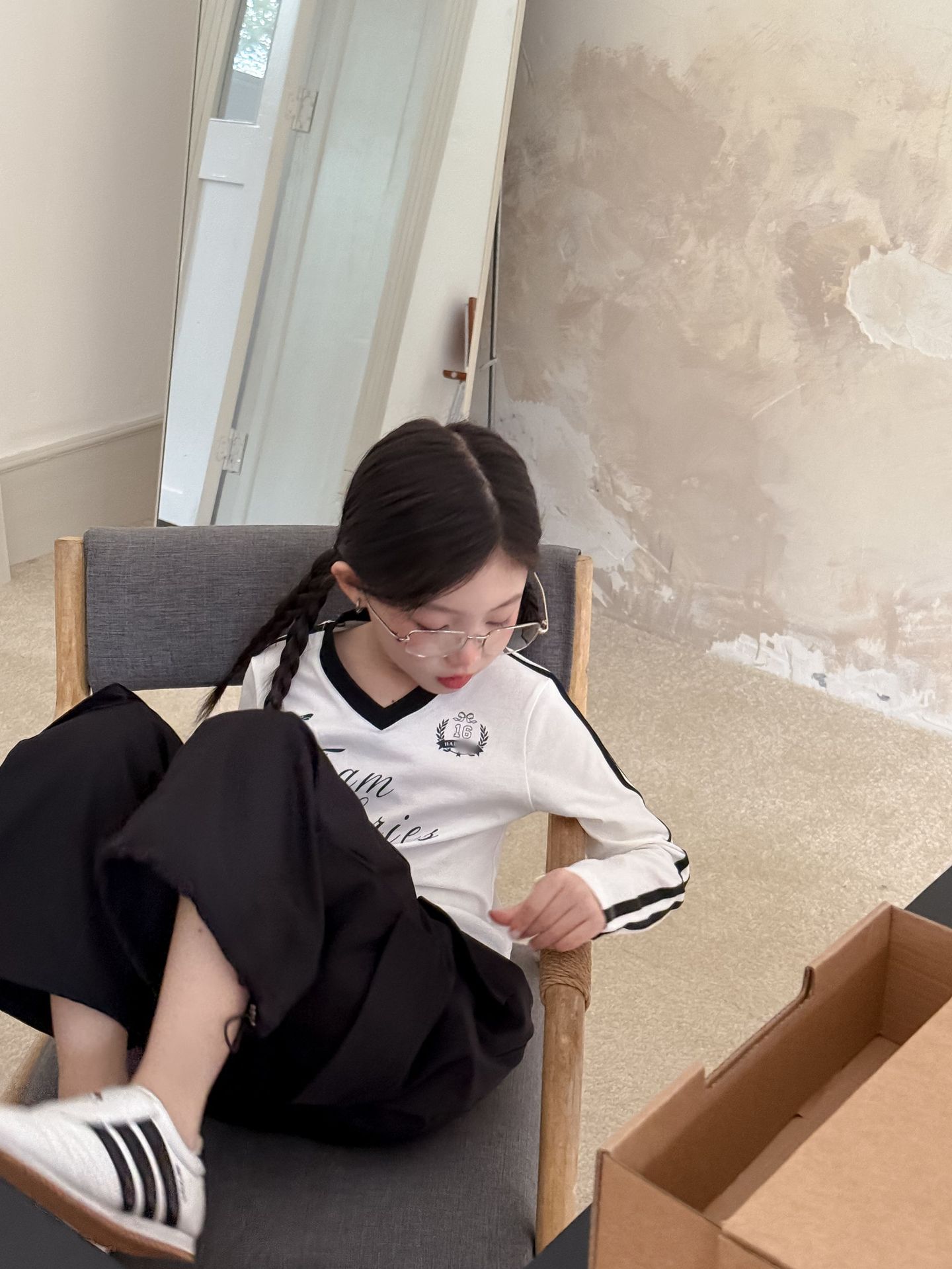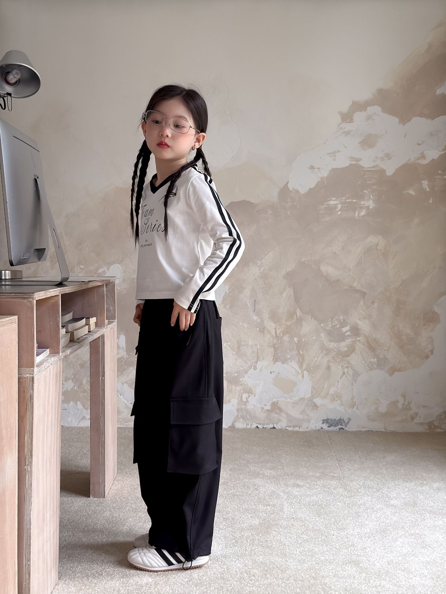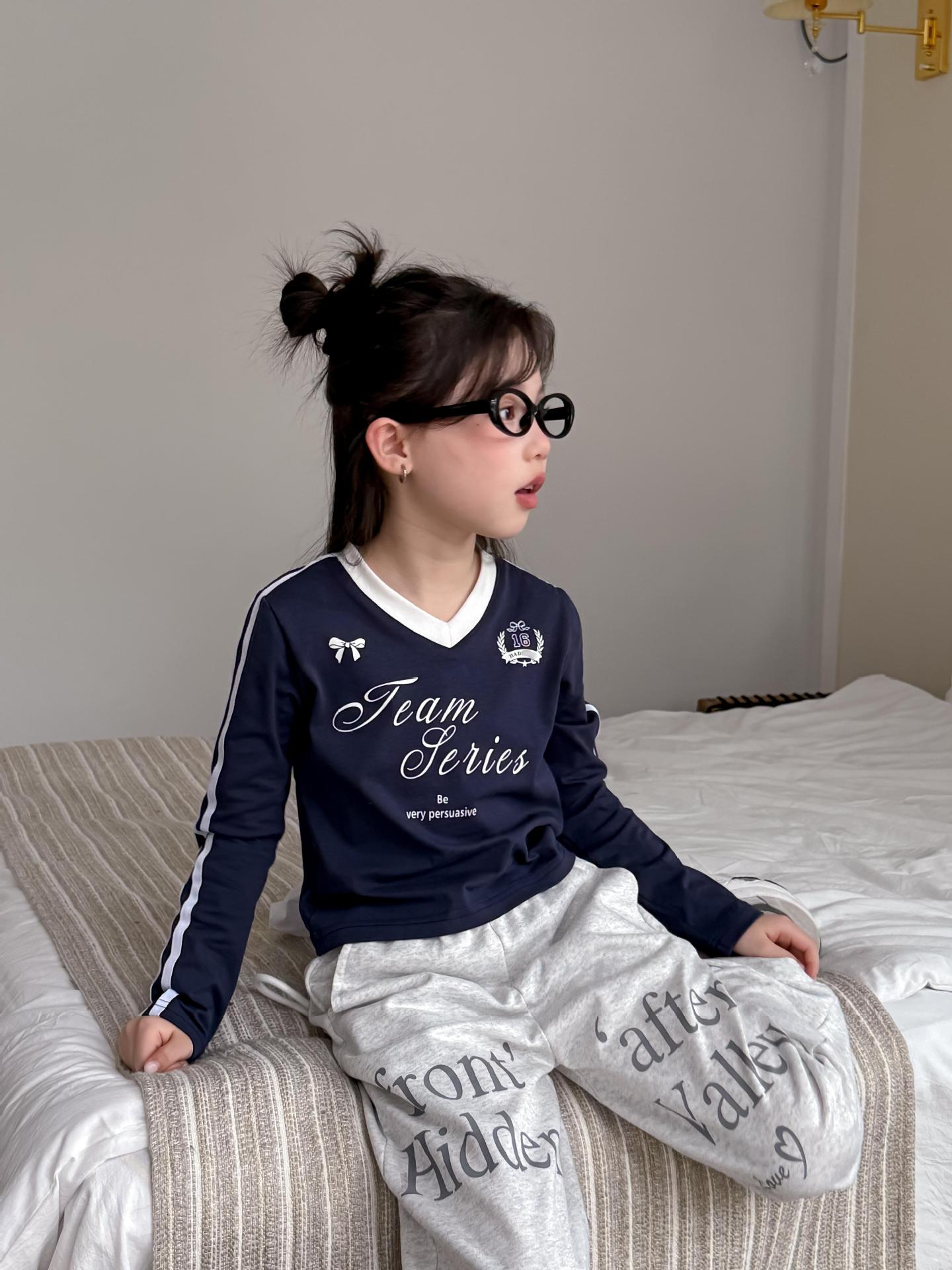 어린이 티셔츠 2025 봄 소녀 긴팔 V 넥 슬림 핏 내면베이스 셔츠 중 어린이 보물 인쇄 티셔츠 탑스토어 가기