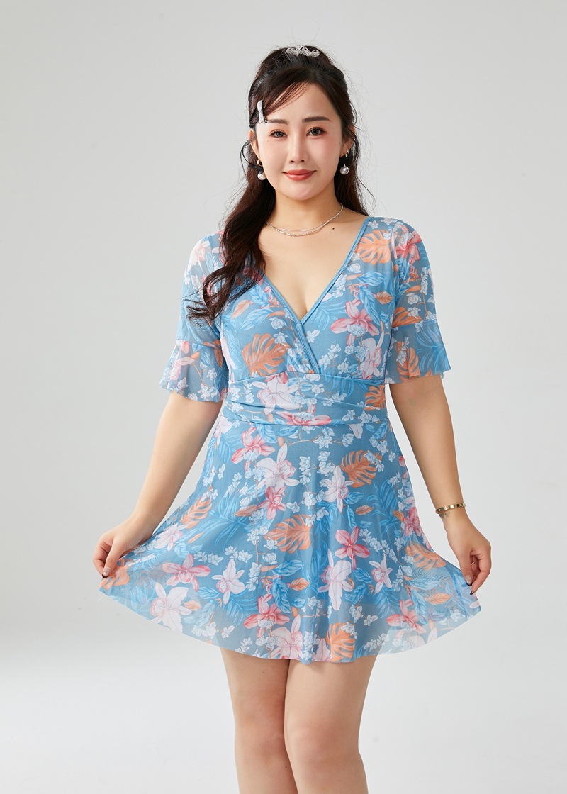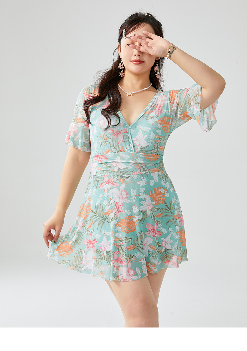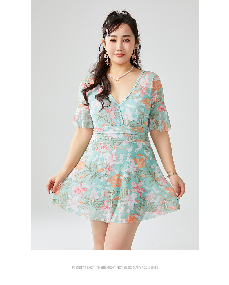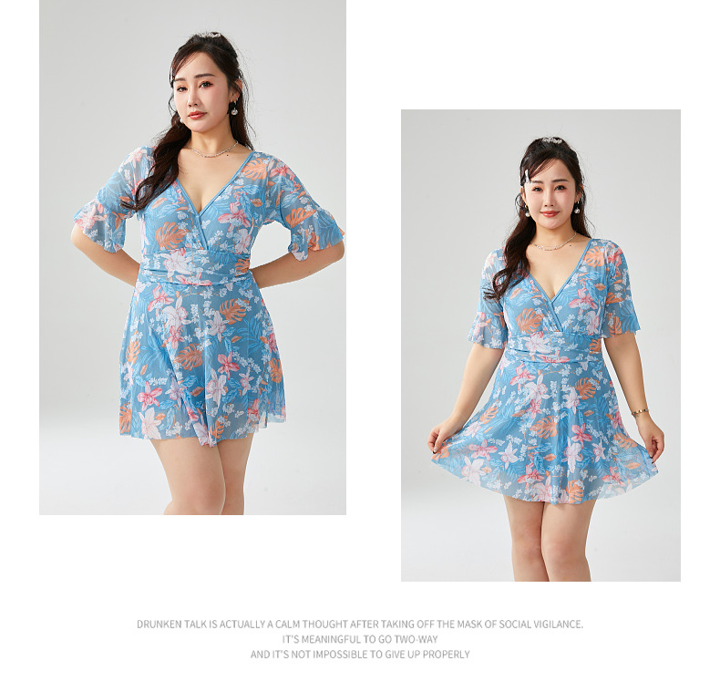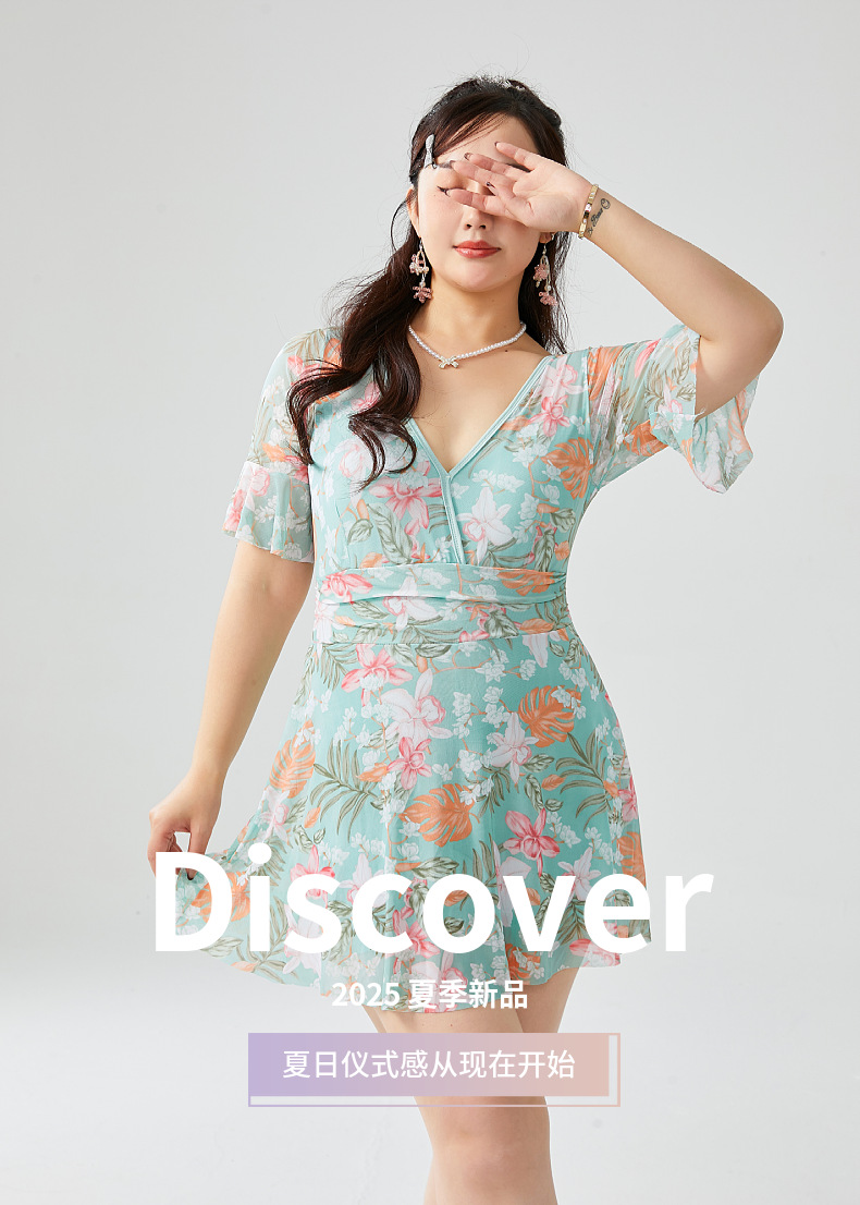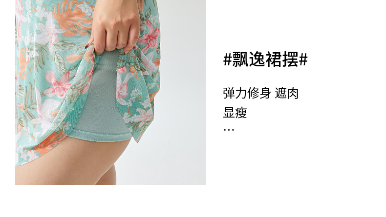 원피스 플러스 사이즈 수영복 여성 2025 뉴 통통녀 온천 수영복 프린트 스커트 수영복 스포츠 안티 라이트