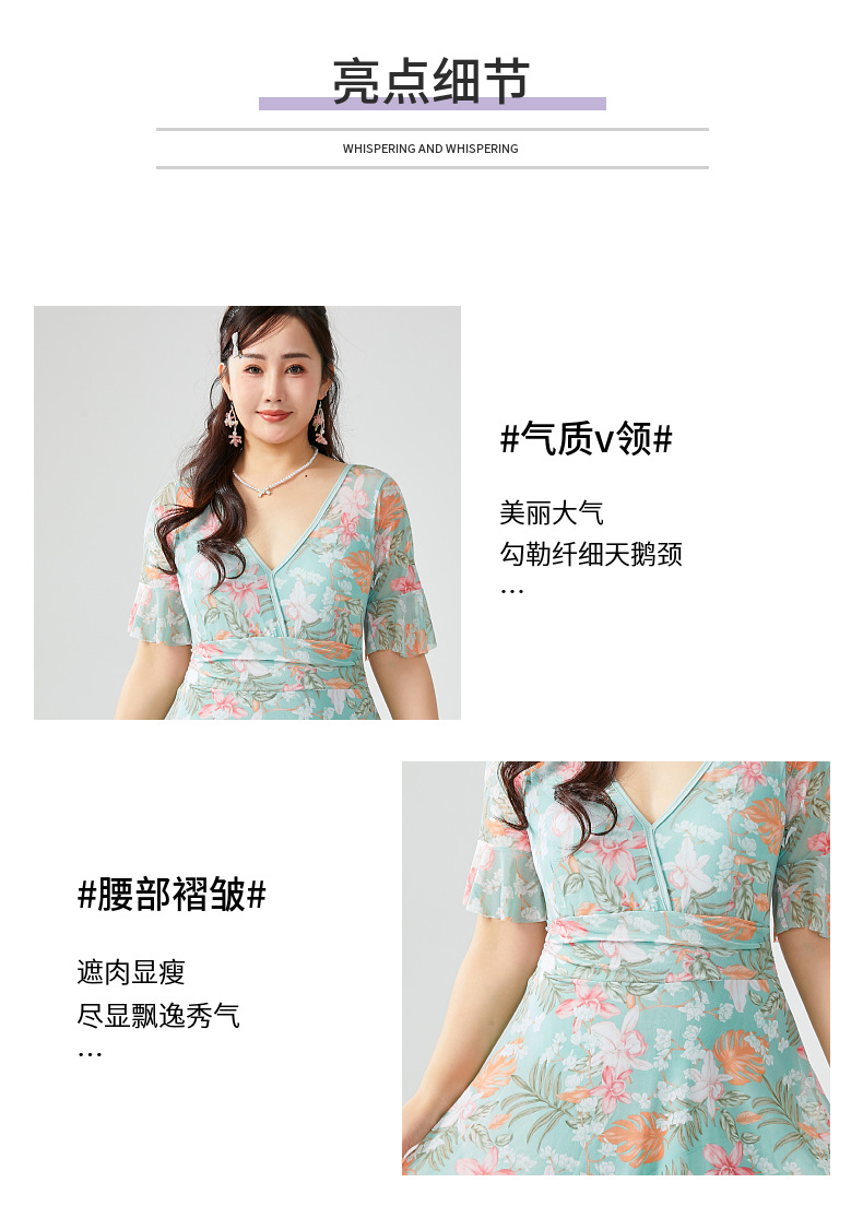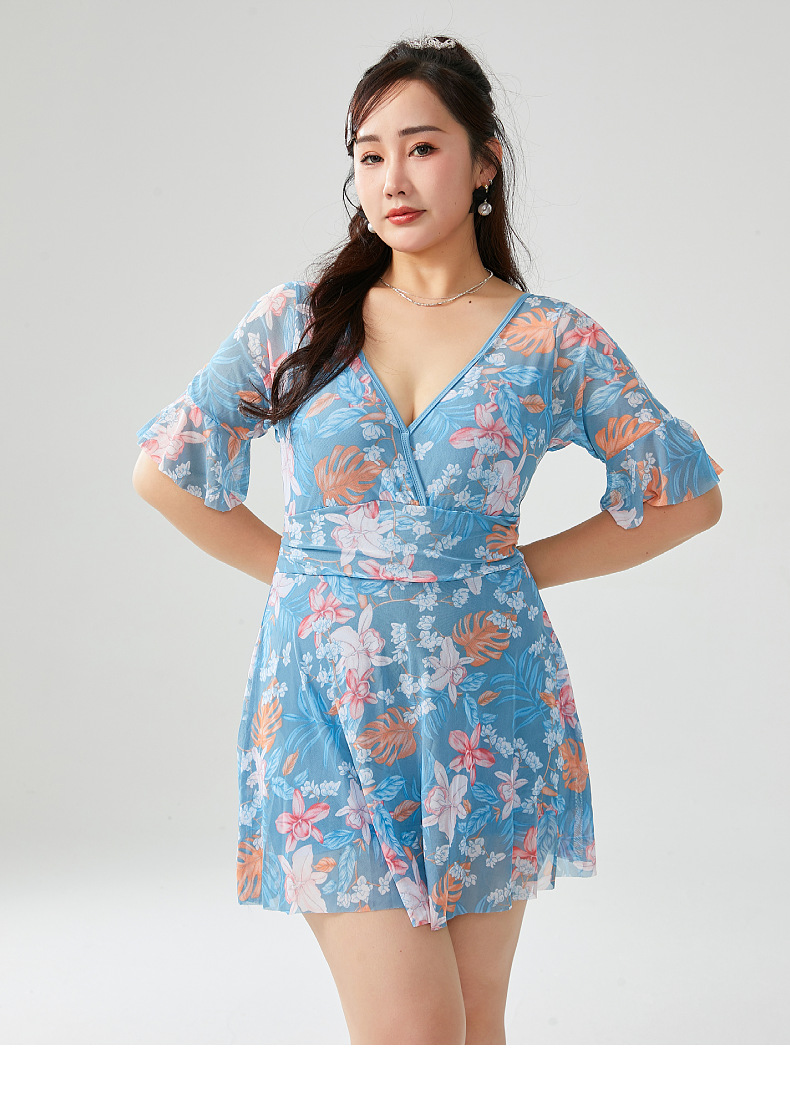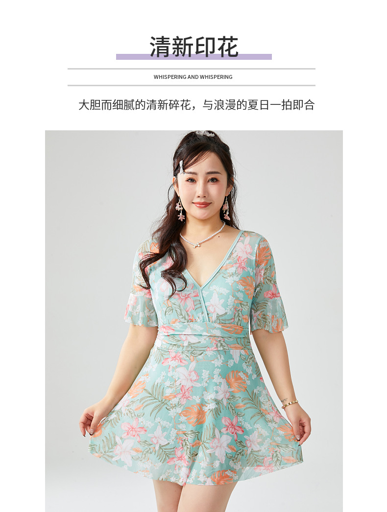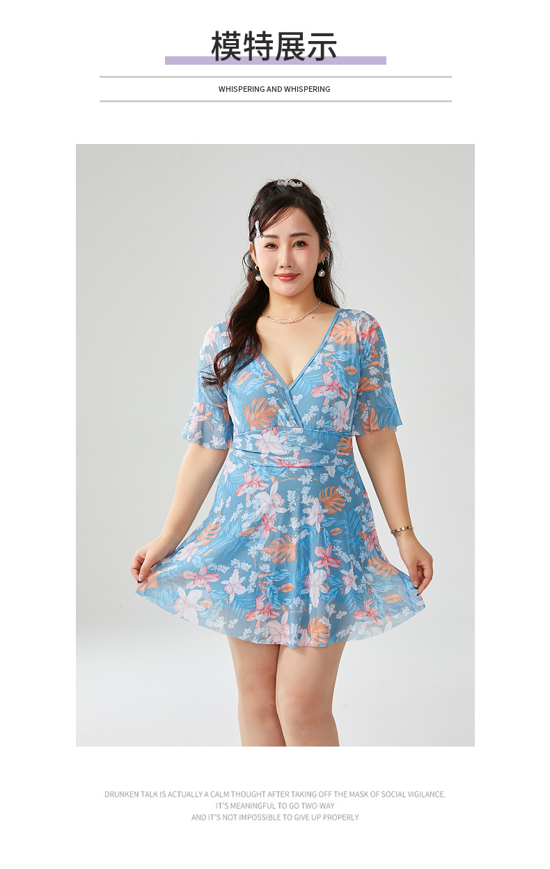 원피스 플러스 사이즈 수영복 여성 2025 뉴 통통녀 온천 수영복 프린트 스커트 수영복 스포츠 안티 라이트