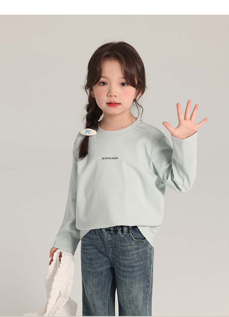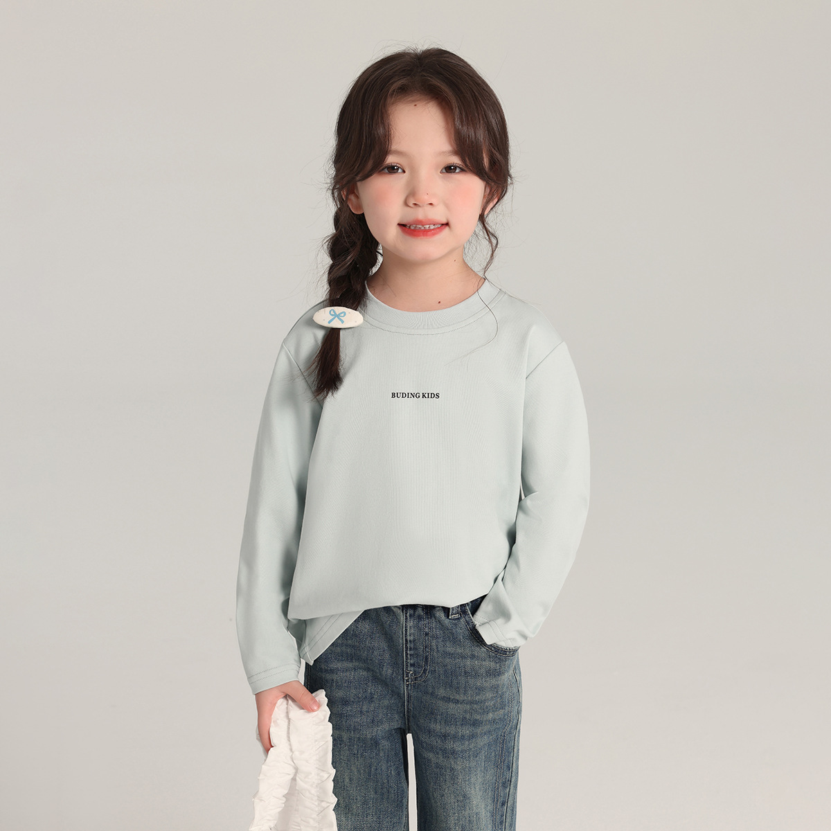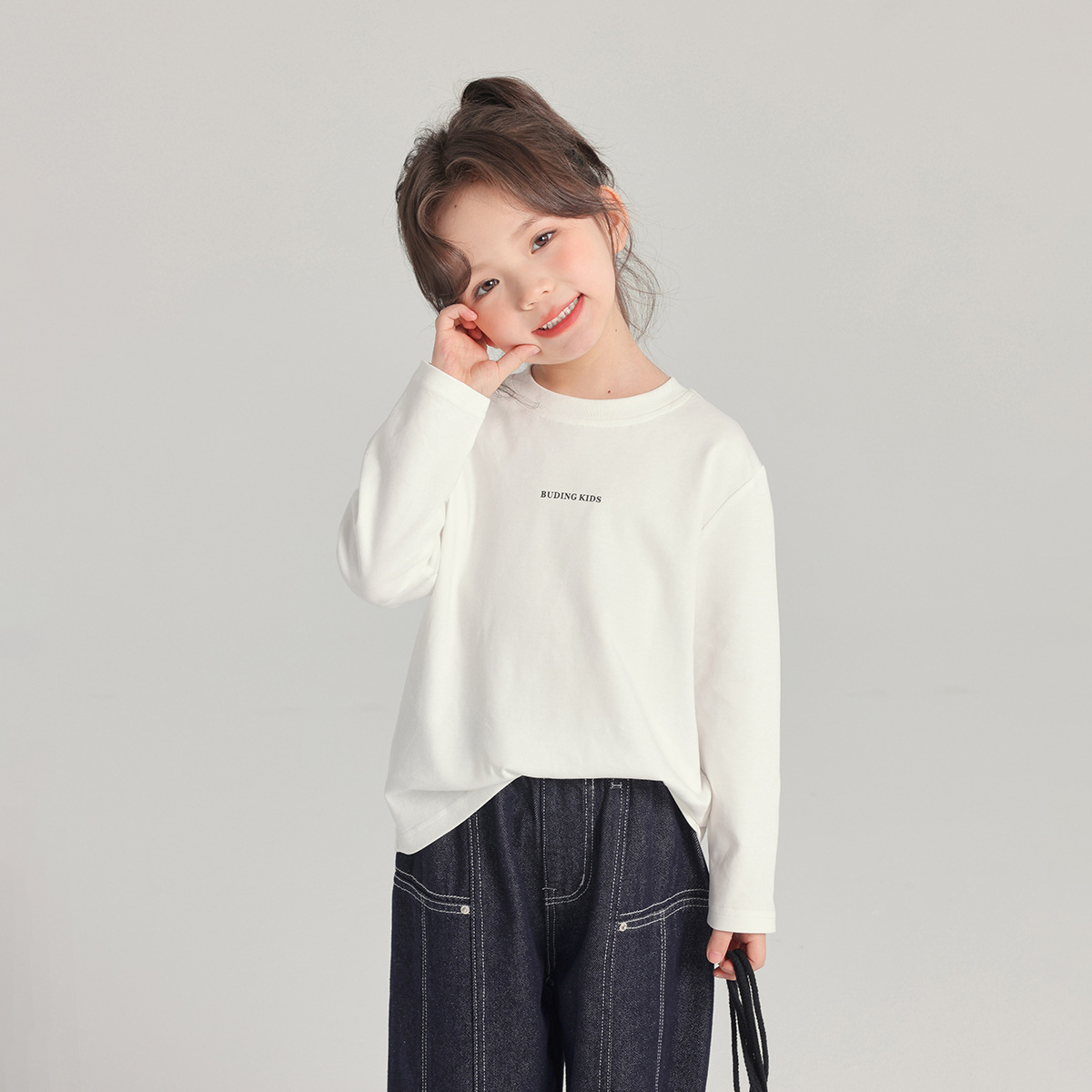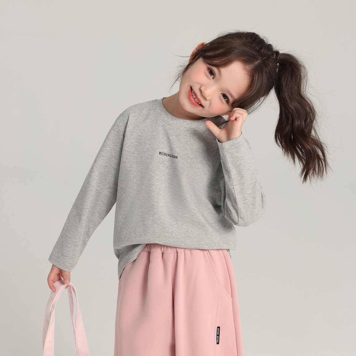 모모지아 상의 2026 봄 신상 여아 베이직 티셔츠 다용도 아동용 레터 프린트 순면 긴팔 티셔츠스토어 가기