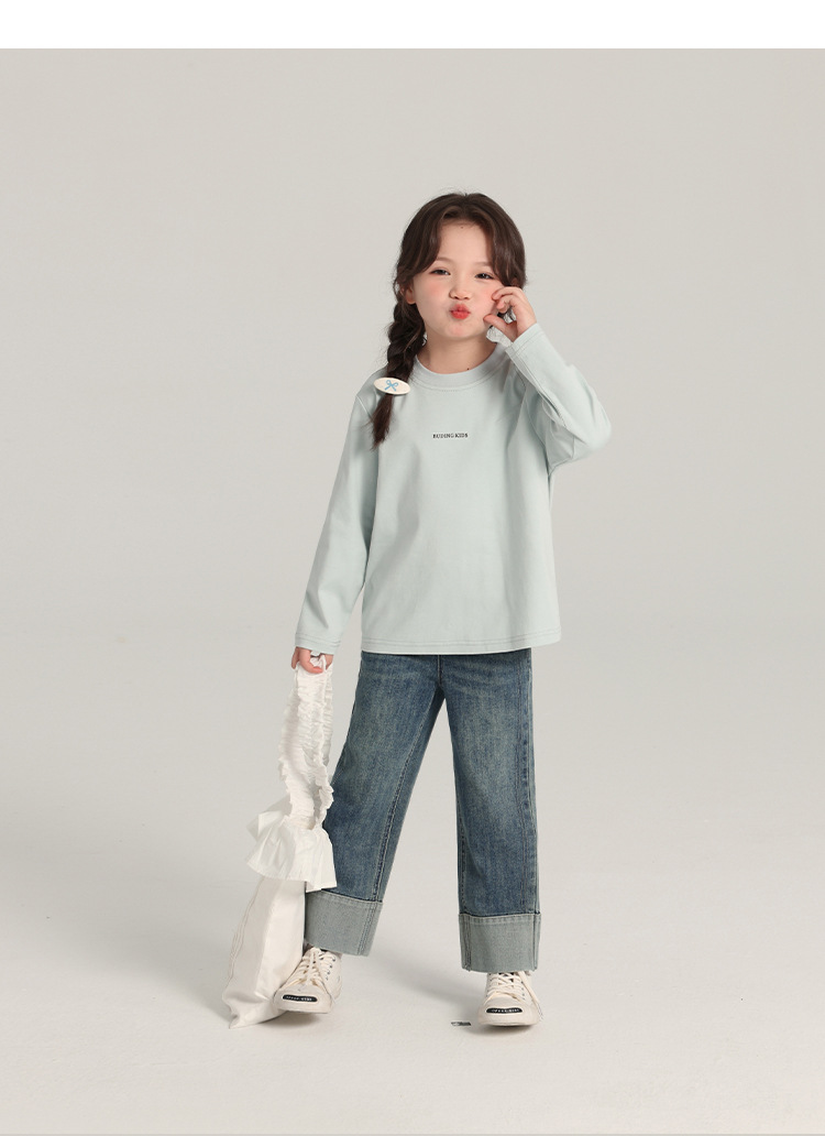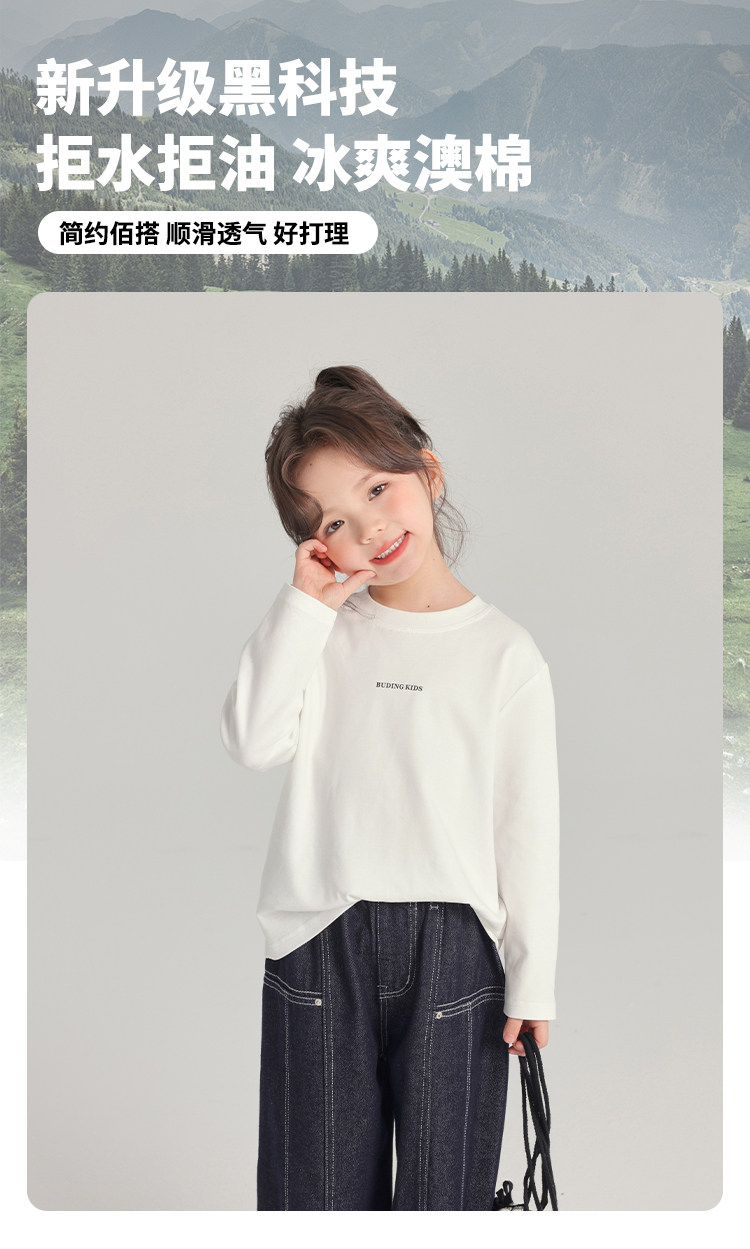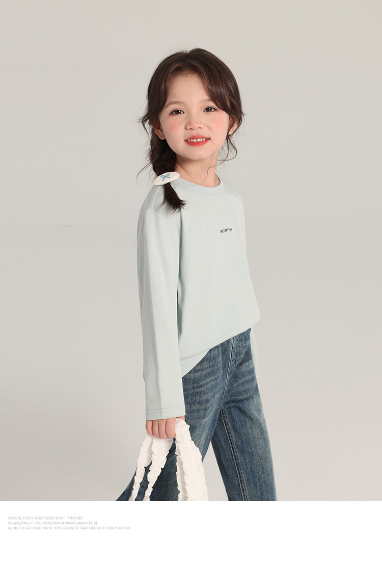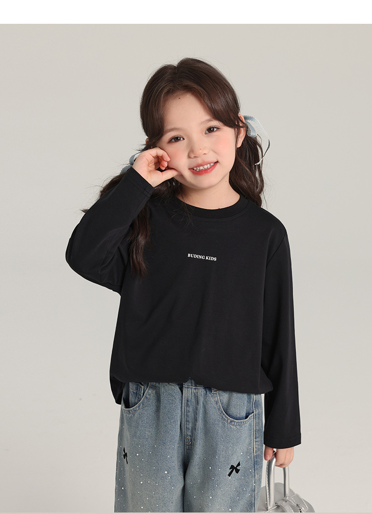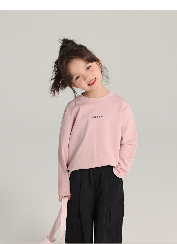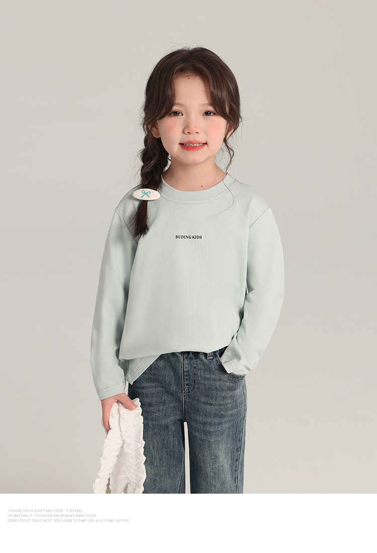 모모지아 상의 2026 봄 신상 여아 베이직 티셔츠 다용도 아동용 레터 프린트 순면 긴팔 티셔츠스토어 가기