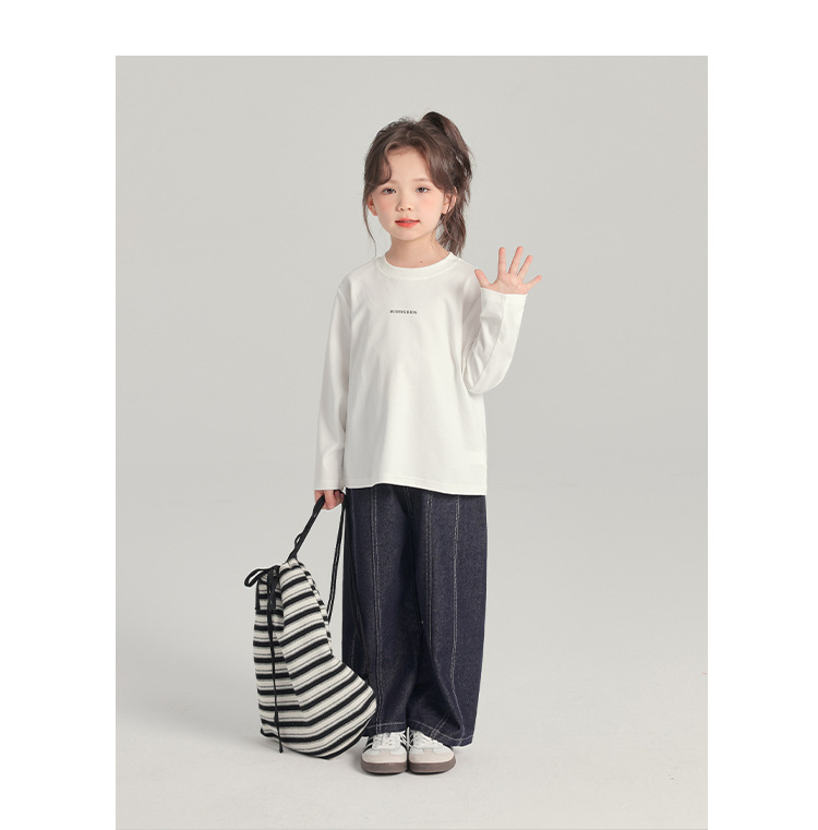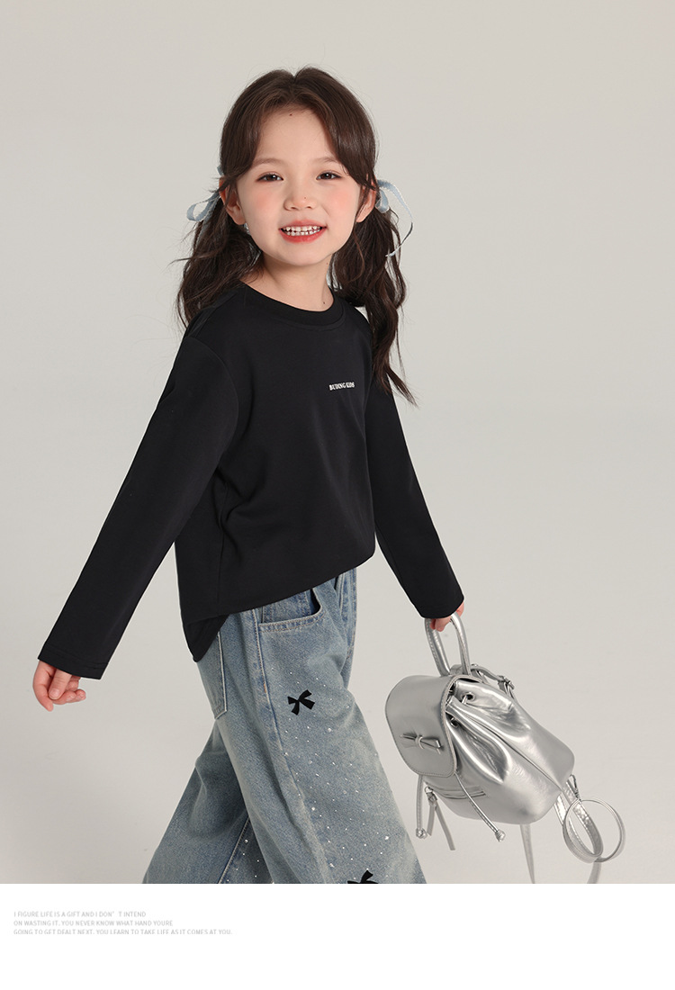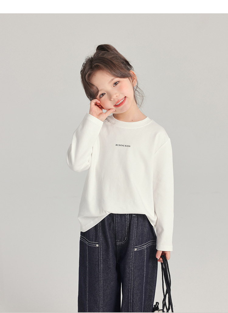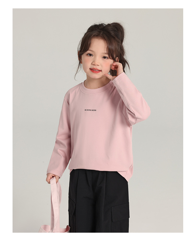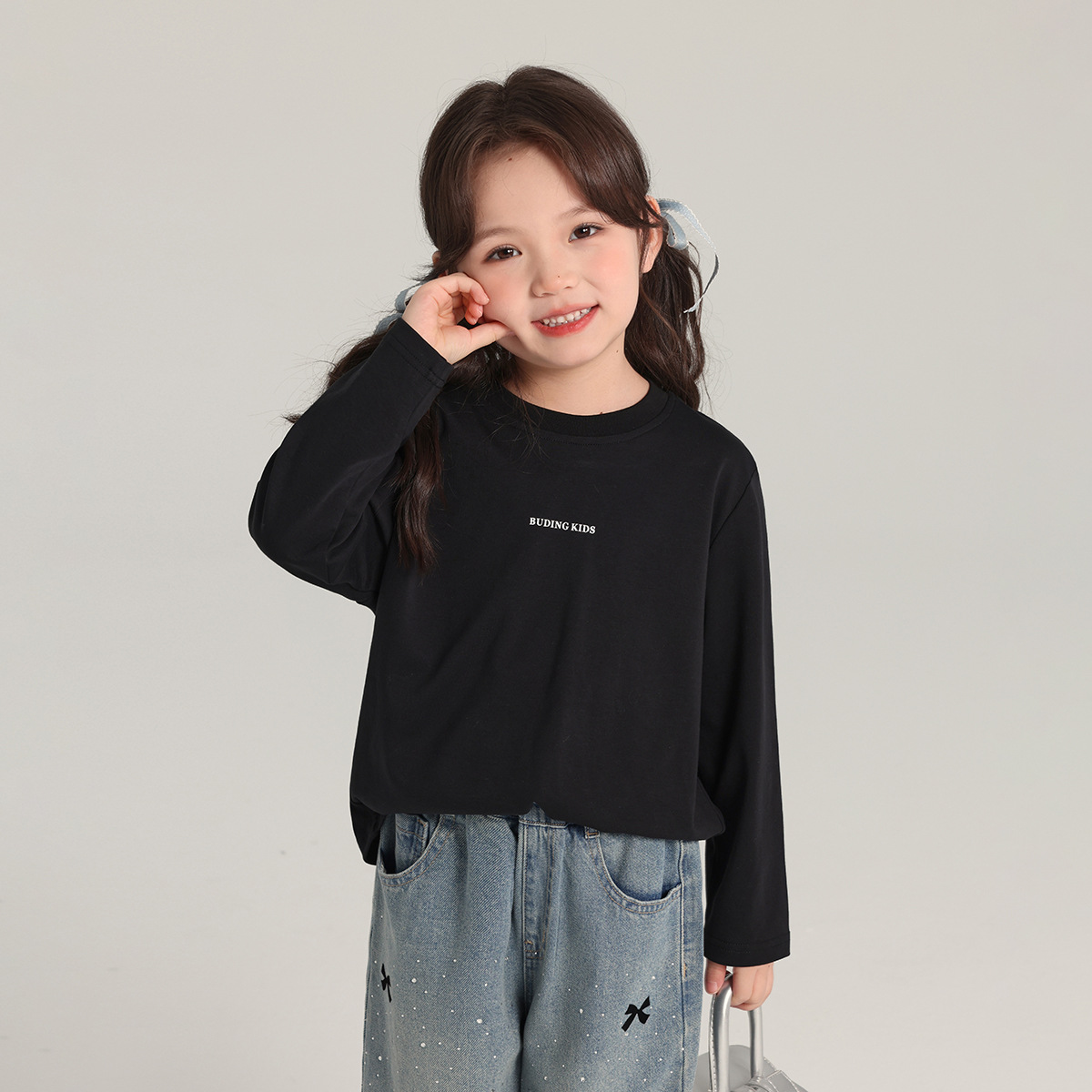 모모지아 상의 2026 봄 신상 여아 베이직 티셔츠 다용도 아동용 레터 프린트 순면 긴팔 티셔츠