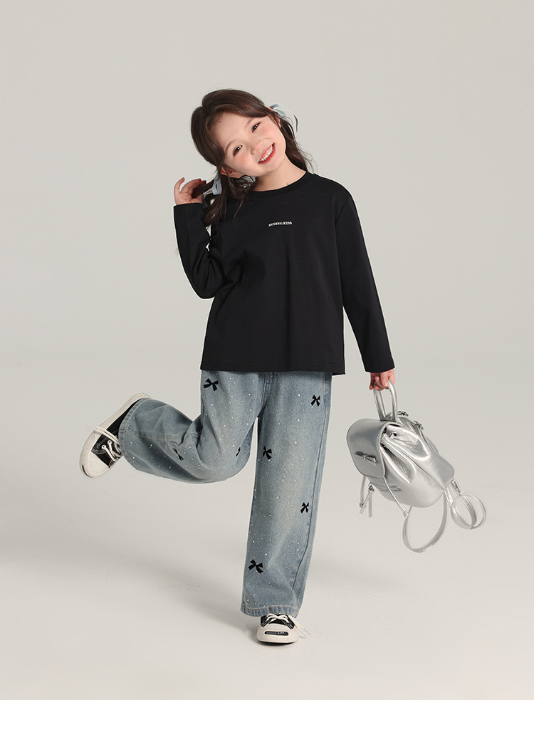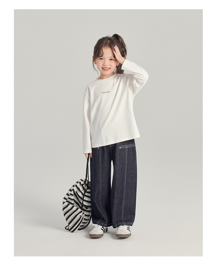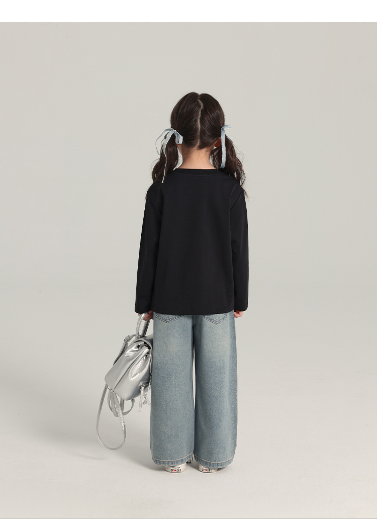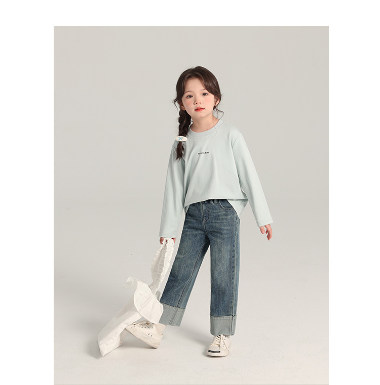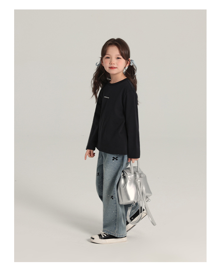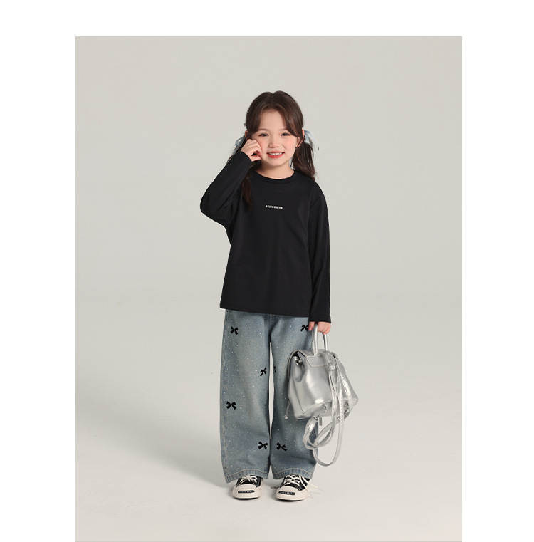 모모지아 상의 2026 봄 신상 여아 베이직 티셔츠 다용도 아동용 레터 프린트 순면 긴팔 티셔츠