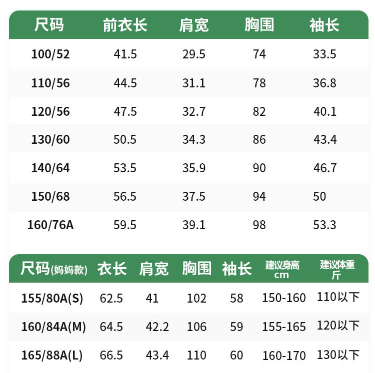 • 사이즈 120의 권장 신장은 115-125cm입니다.