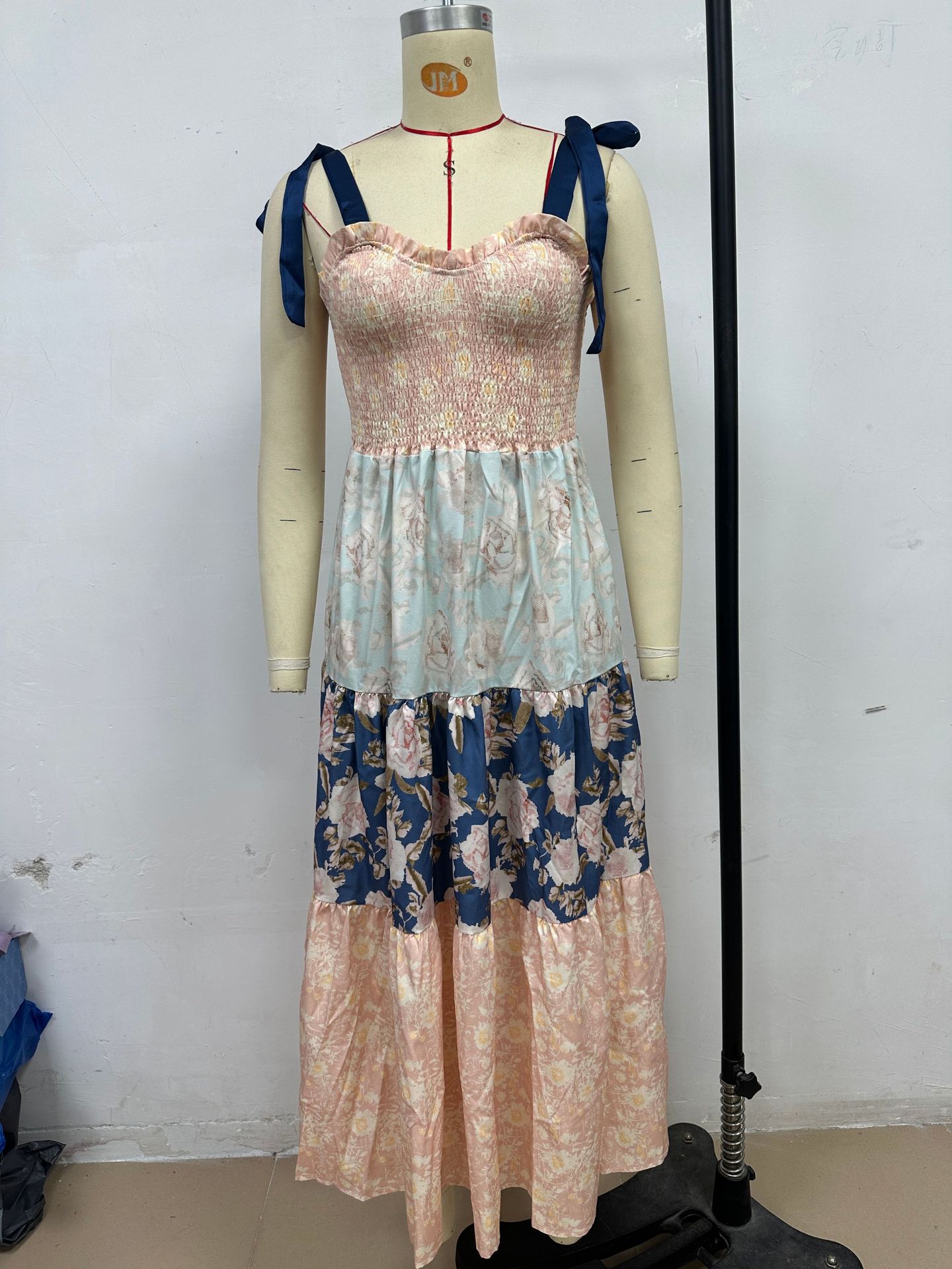 재고 25 년 유럽과 미국의 국경 여름 새로운 프랑스 패션 슬림 적합 여성의 인쇄 슬링 원피스-68632스토어 가기