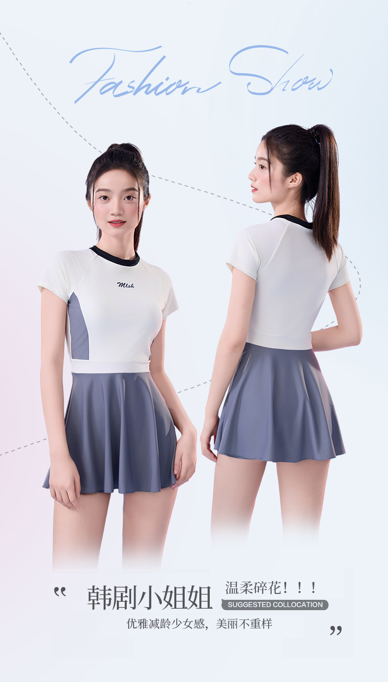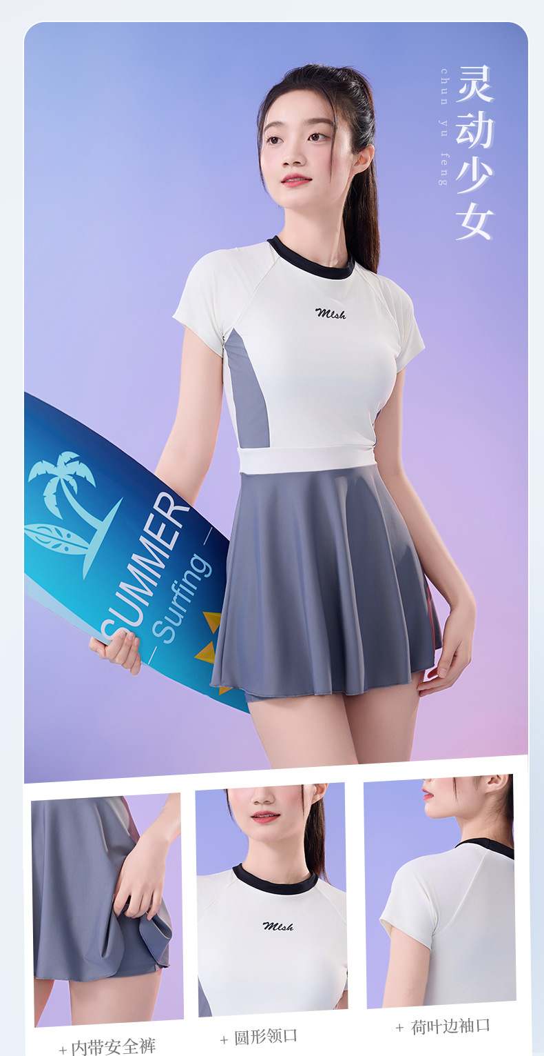 유행 주름 A 라인 스커트 여성 수영복 분할 반바지 빠른 건조 비치 휴가 수영복 보수적 인 하이 엔드 센스스토어 가기