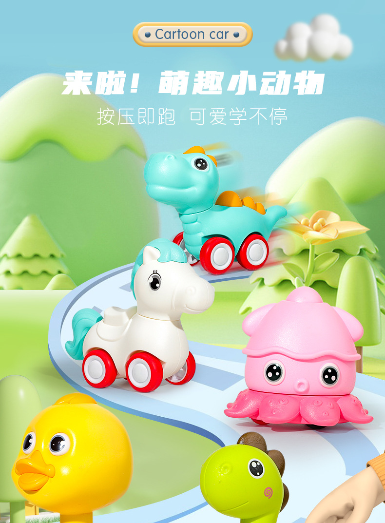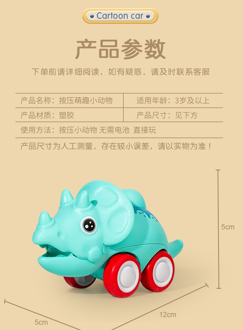 어린이 장난감 사랑스러운 관성 다시 동물 자동차 만화 자동차 가을 저항 공룡 장난감 마구간 도매