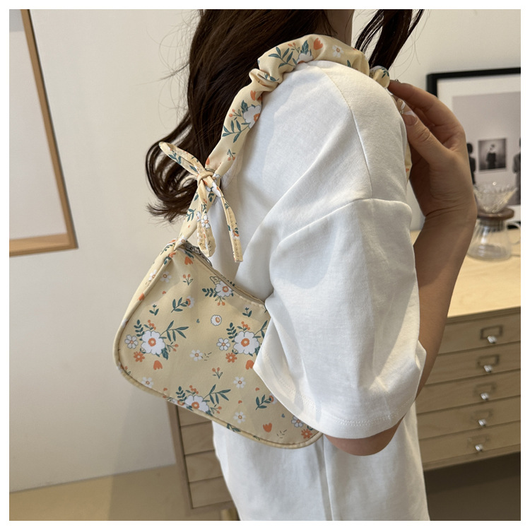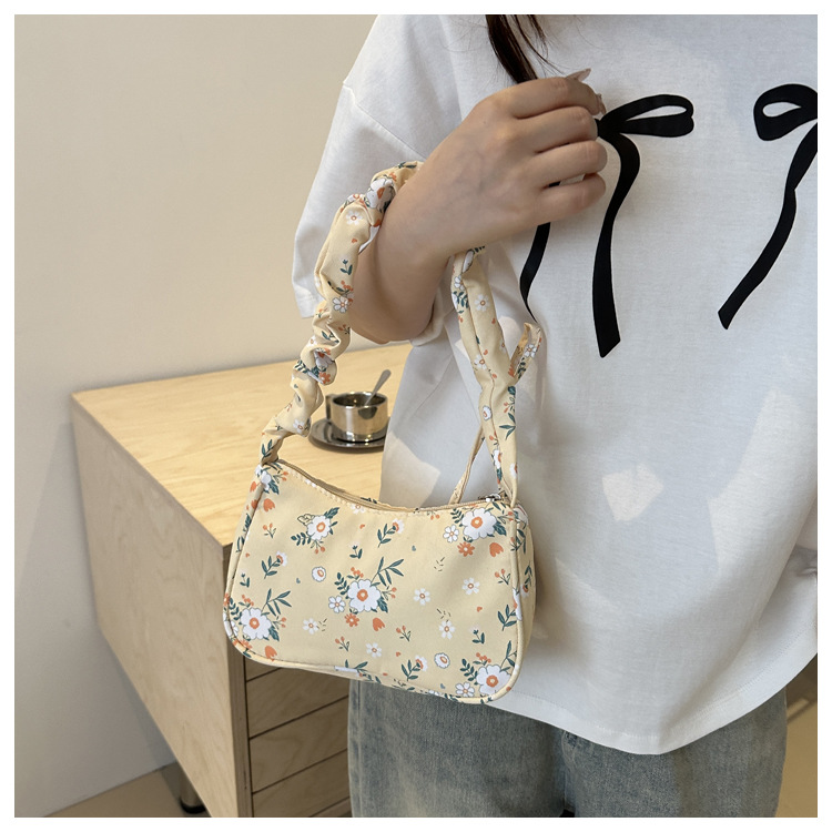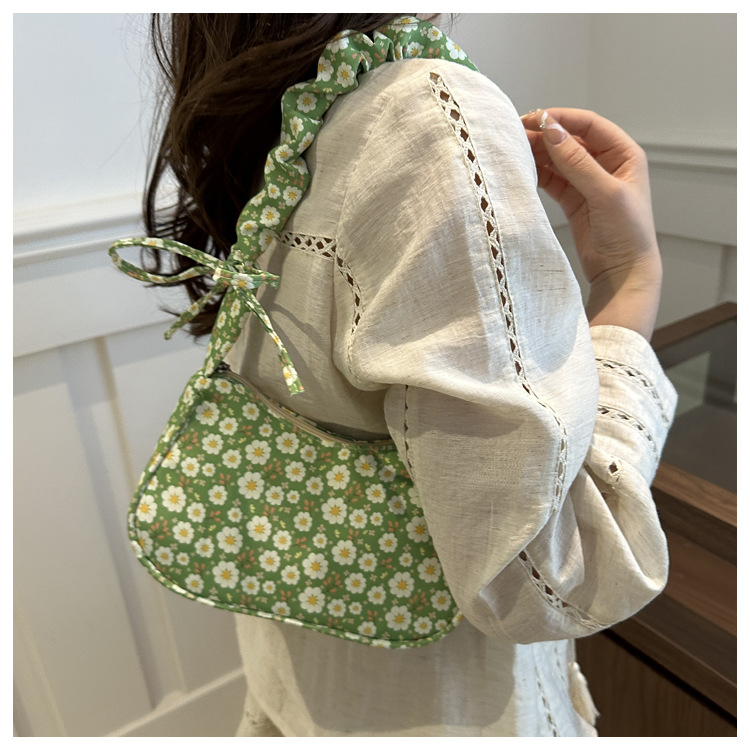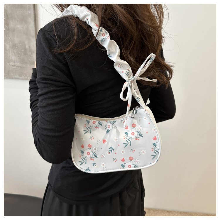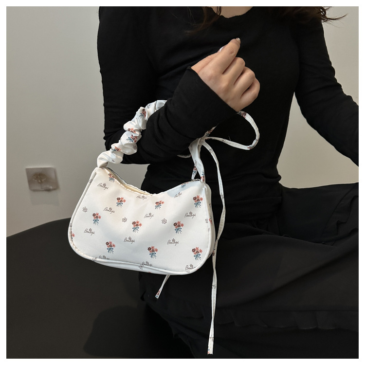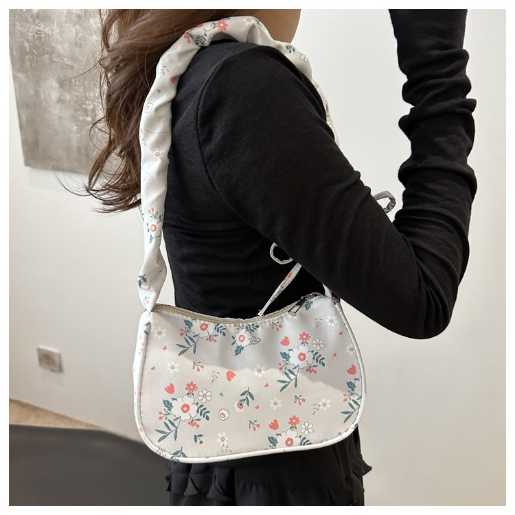 2025 여성용 가방 꽃 무늬 간단한 겨드랑이 가방 크로스 바운드 가방 여성용 새 숄더 백 트렌디 한 달콤한 목가적 인 스타일 핸드백