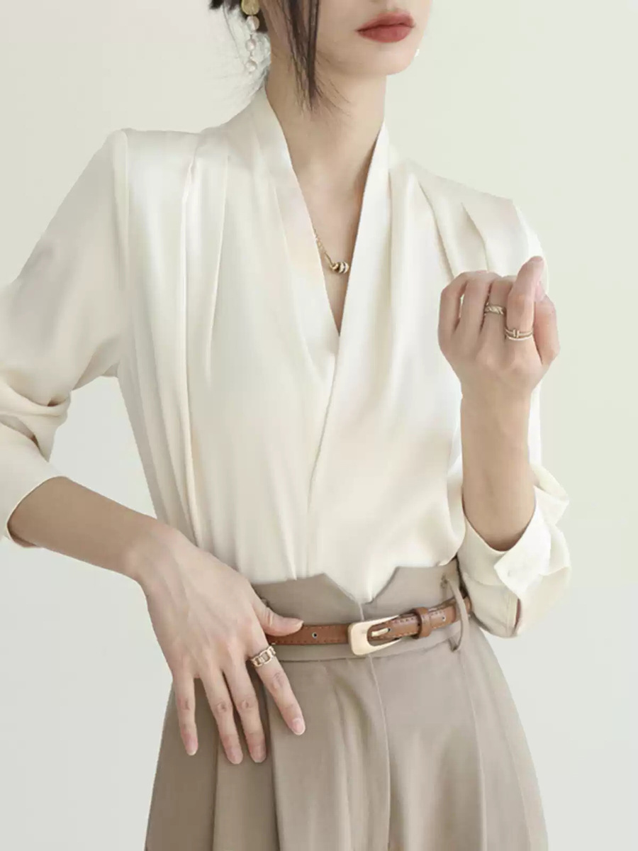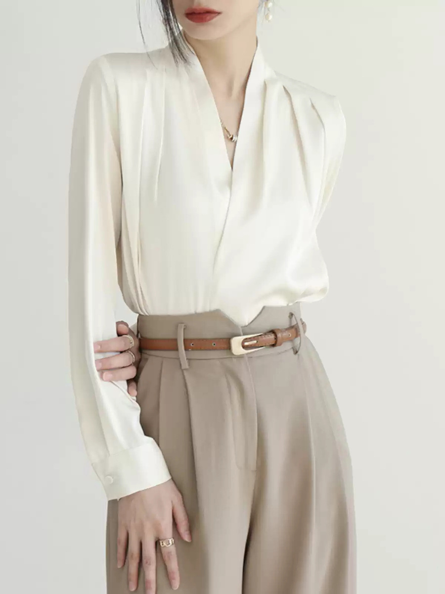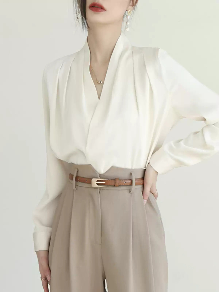 • 화이트 브이넥 셔츠