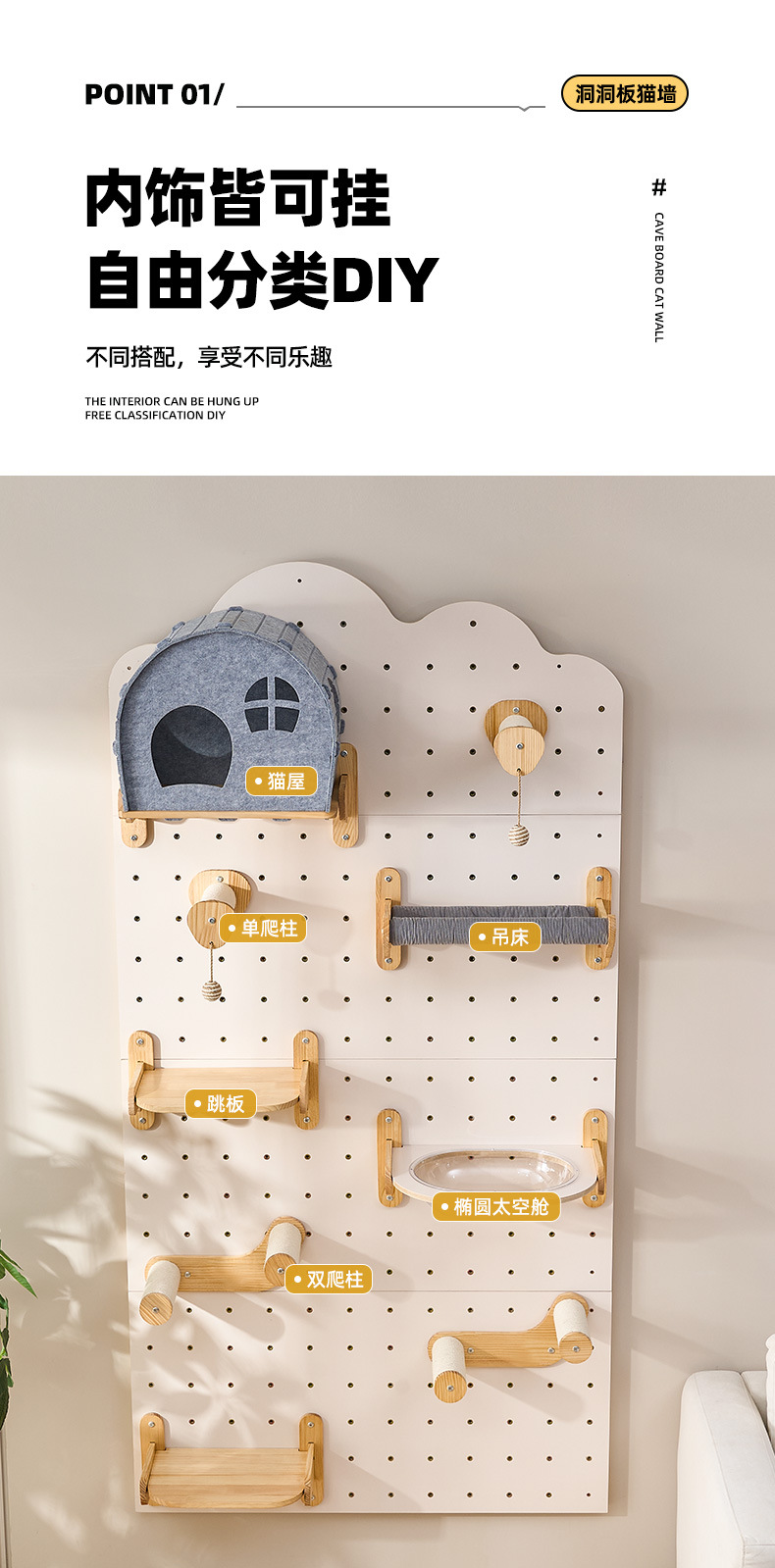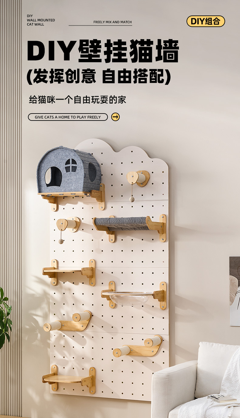 국경 고양이 등반 프레임 액세서리 도매 홈 벽 교수형 고양이 벽 고양이 둥지 올인원 사계절 유니버설 홀 보드 고양이 등반 프레임
