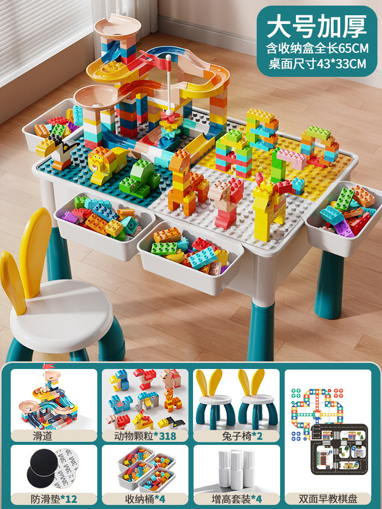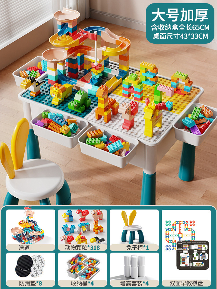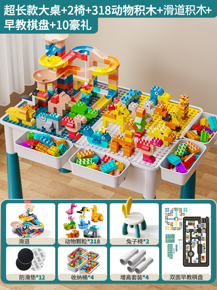 • 【108cm 특대형 테이블】 의자 2개 + 318피스 동물 블록 + 미끄럼틀 + 재미있는 체스판 + 10가지 특별 선물