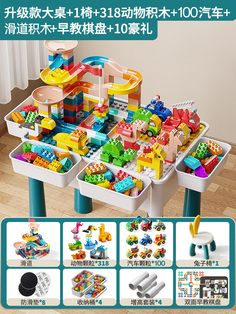 • 【업그레이드 대형 테이블】 의자 2개 + 318피스 동물 블록 + 슬라이드 + 재미있는 체스판 + 10가지 특별 선물