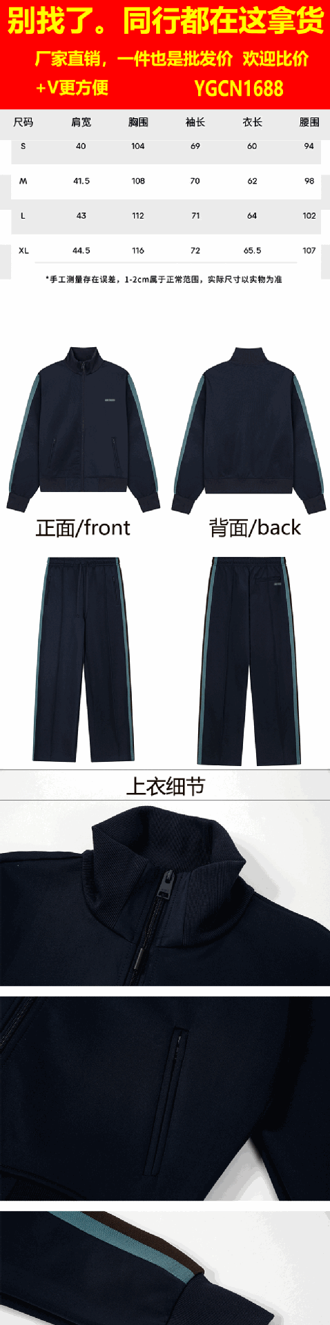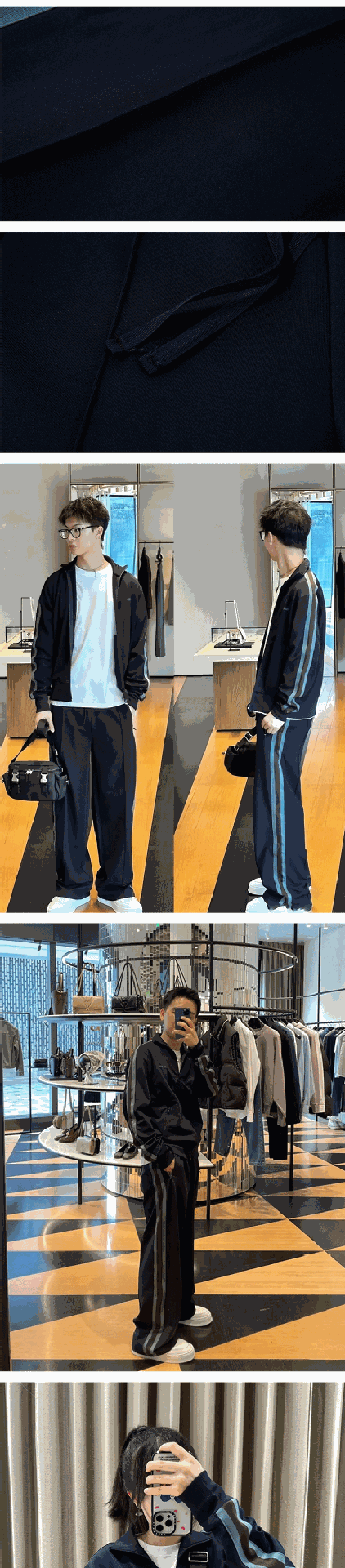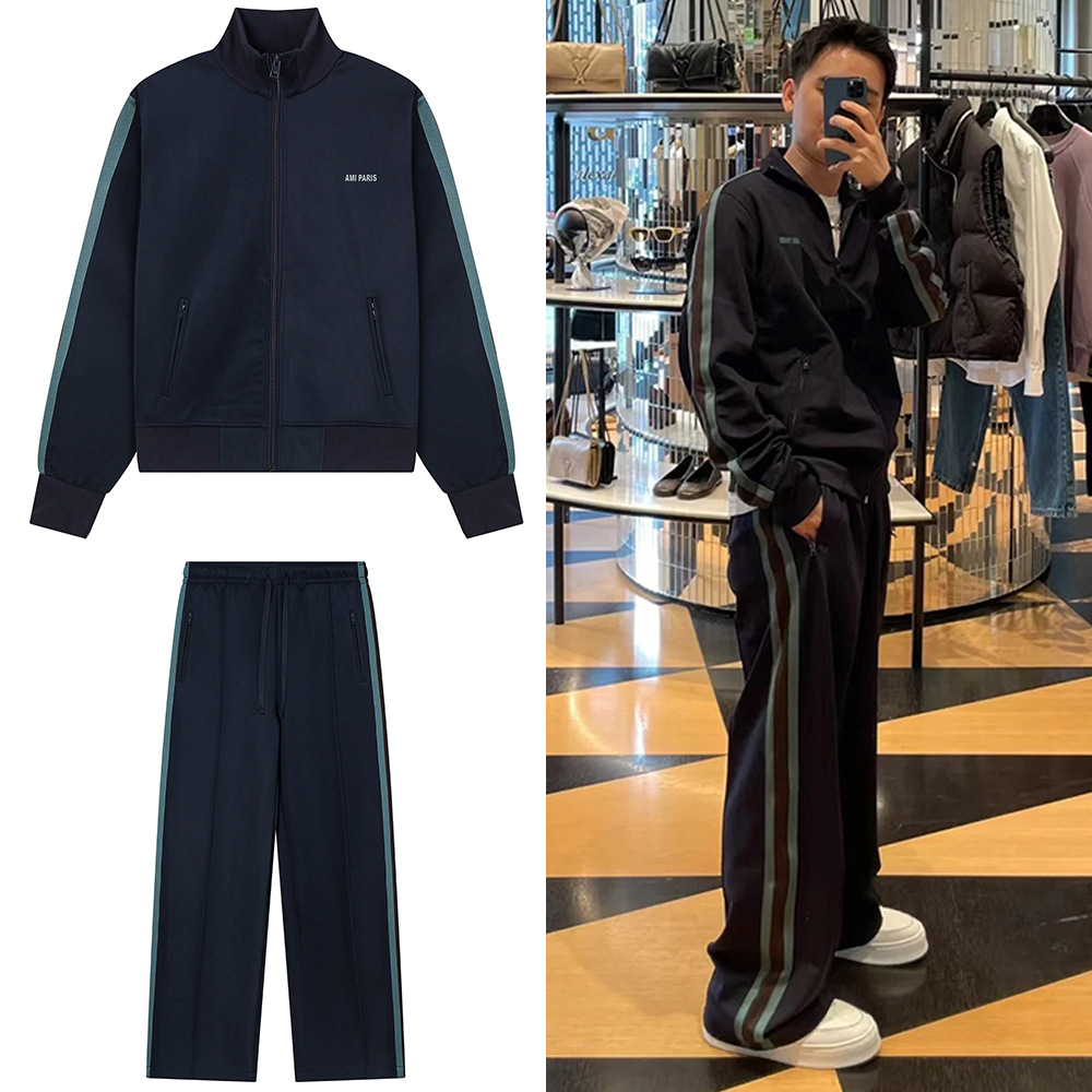 AMI CLAMS 남녀 레터 라벨 스트라이프 루즈 지퍼 가디건 스웨터 스트레이트 캐주얼 바지 투피스 세트스토어 가기