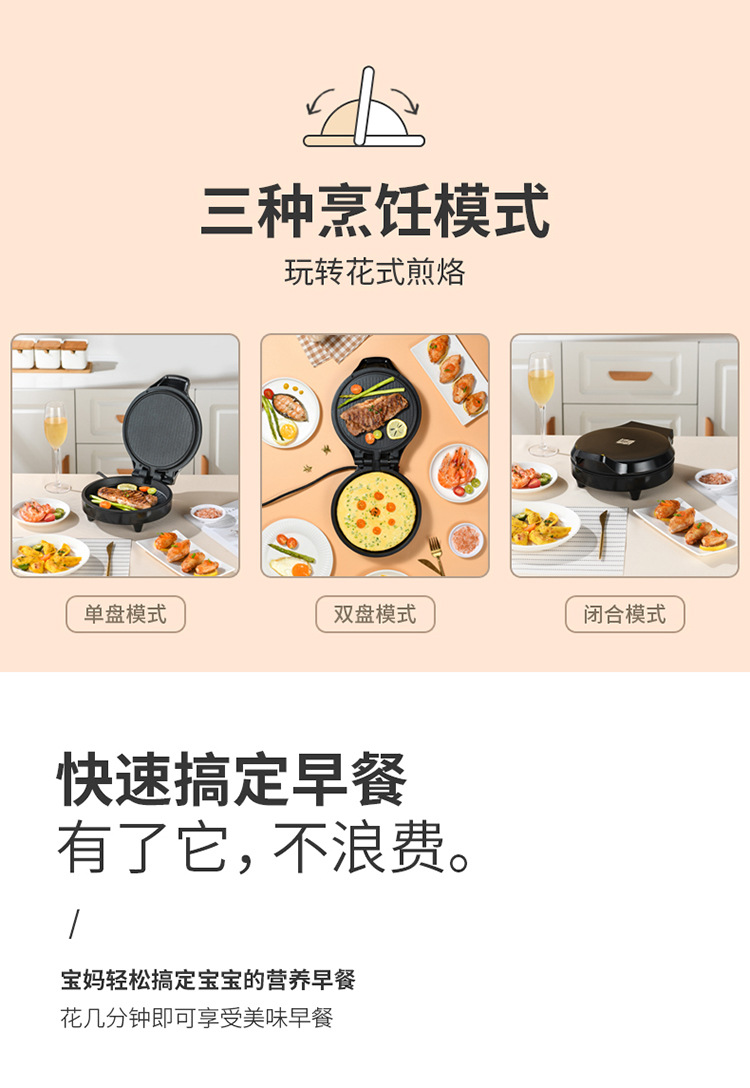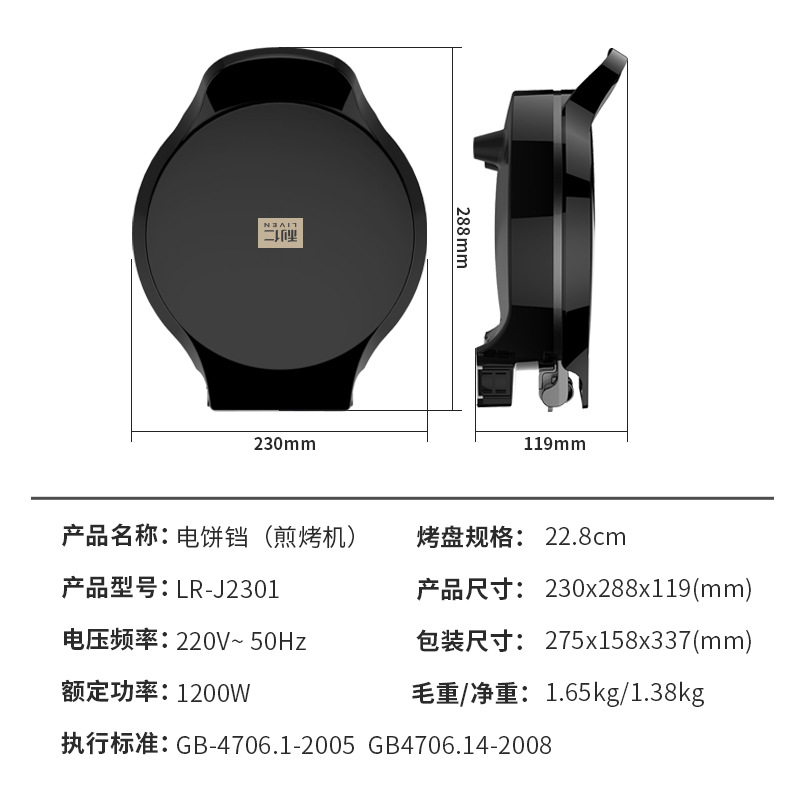 리렌 LR-J2301 전기 팬케이크 메이커 가정용 양면 가열 깊은 팬 논스틱 다기능 프라이팬 팬케이크 팬