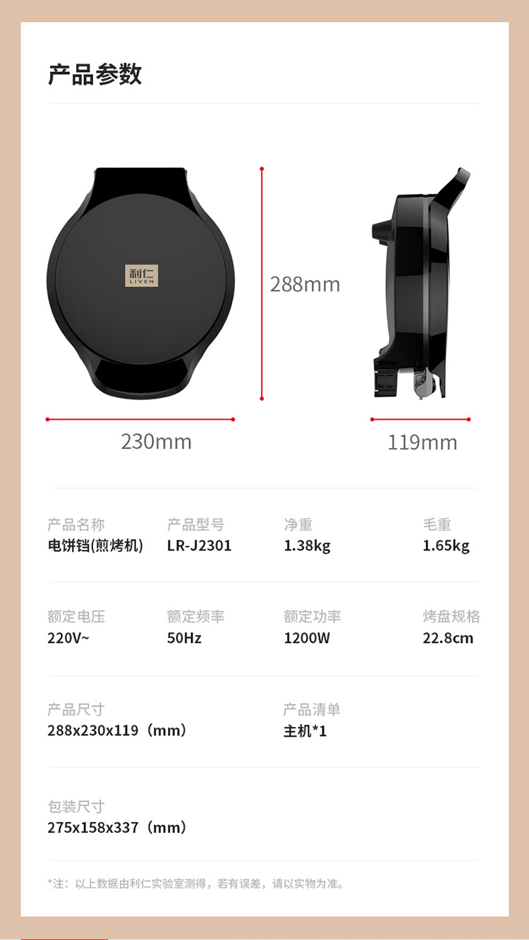 리렌 LR-J2301 전기 팬케이크 메이커 가정용 양면 가열 깊은 팬 논스틱 다기능 프라이팬 팬케이크 팬스토어 가기