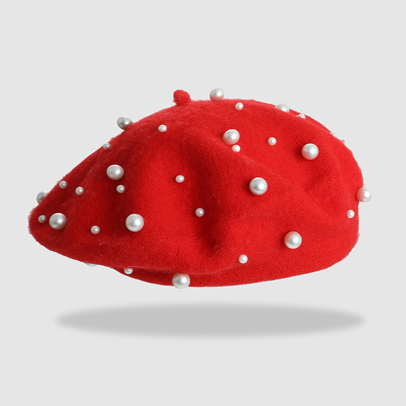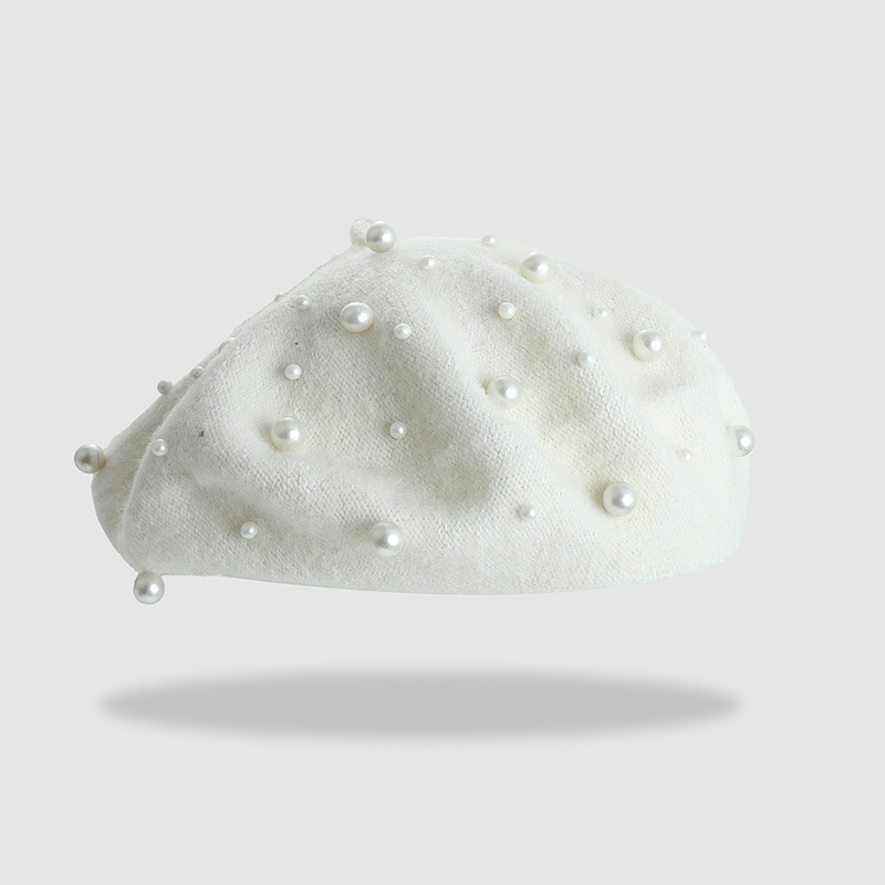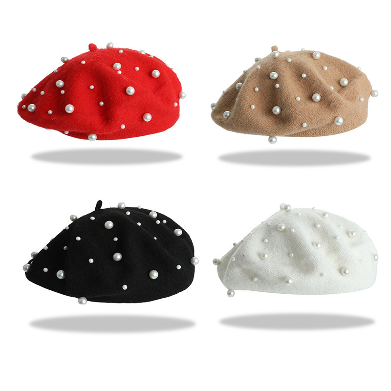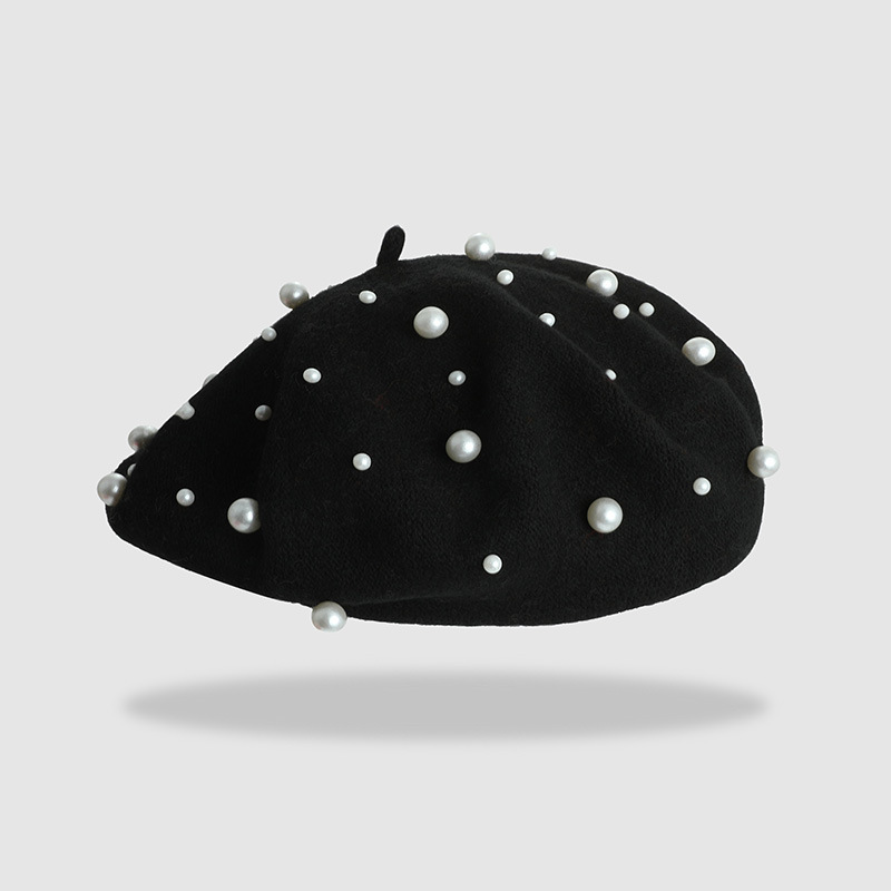 크로스보더 신상 진주 패션 베레모 가을 겨울 레트로 여성 다용도 화가 모자 진주 장식 울 베레모스토어 가기