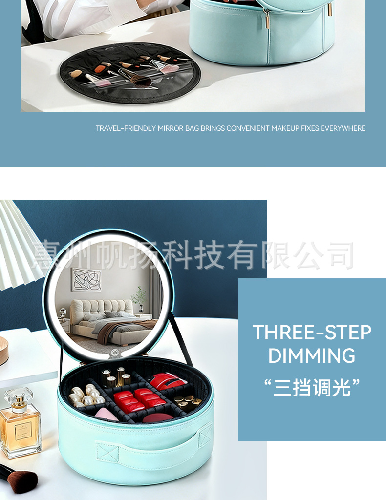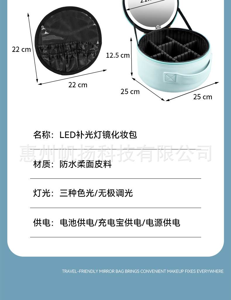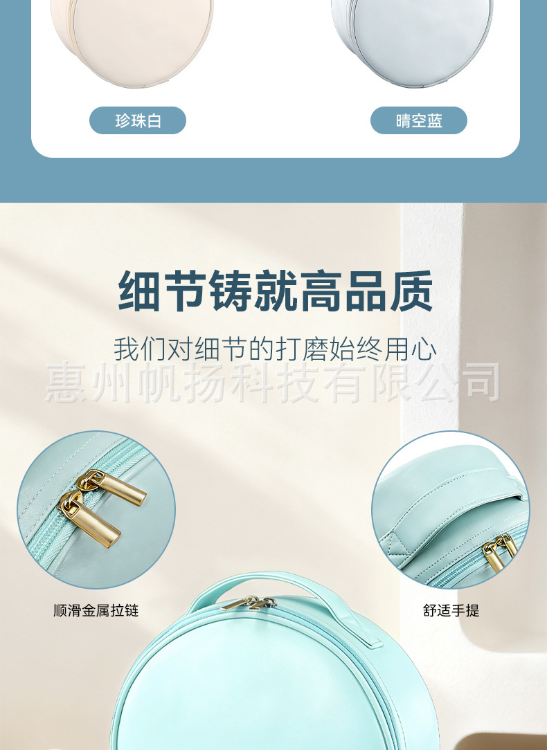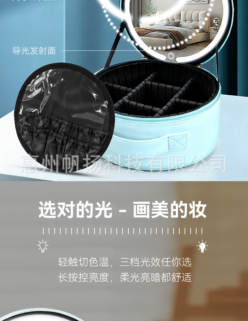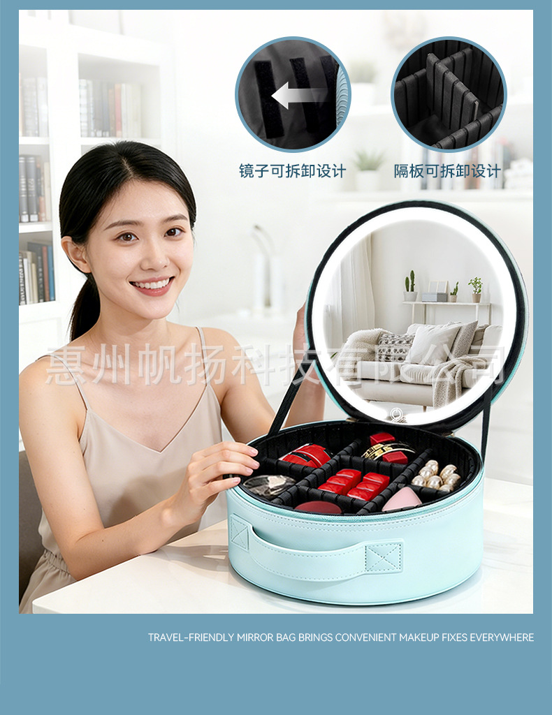 • [조명포함] 부드러운 가죽 LED 원형거울백 - 맑은 하늘색
