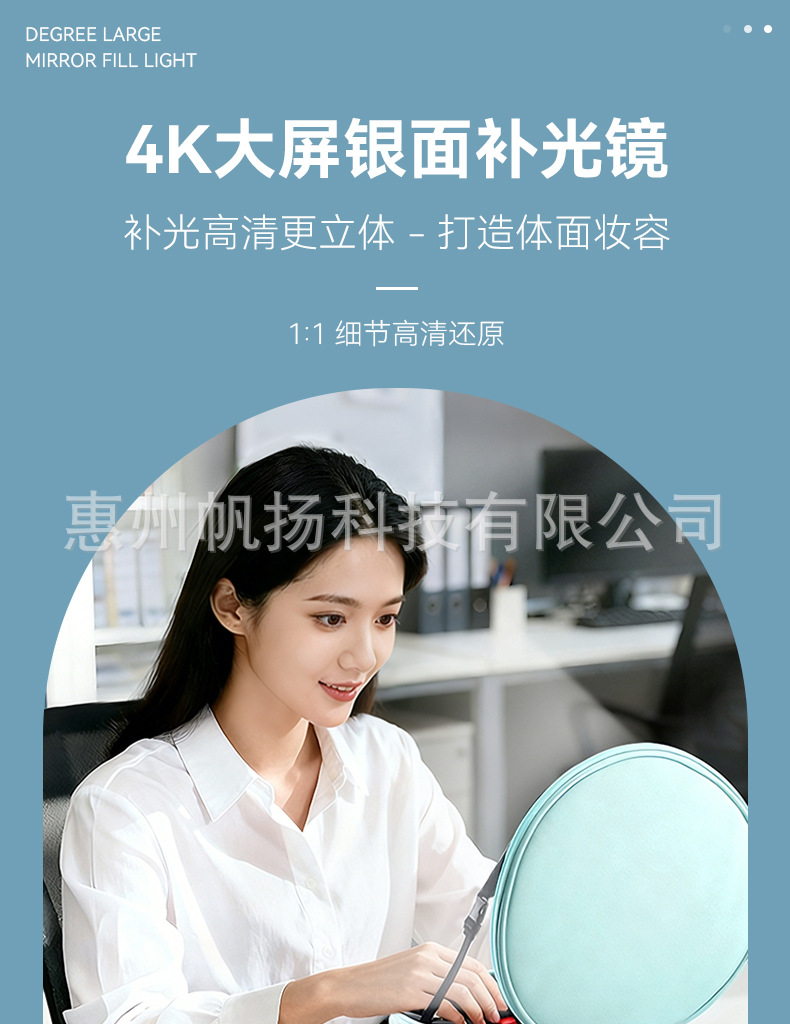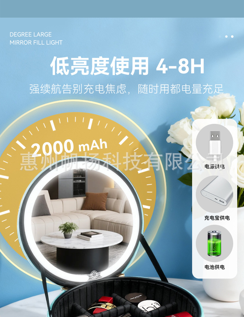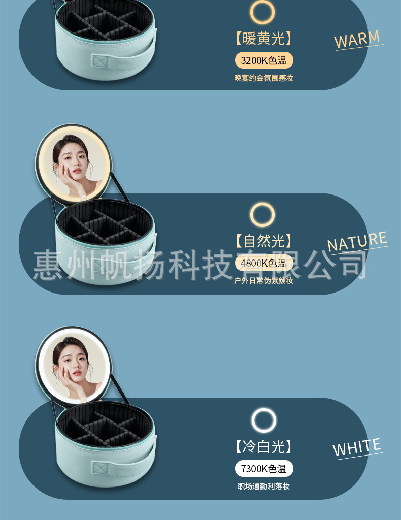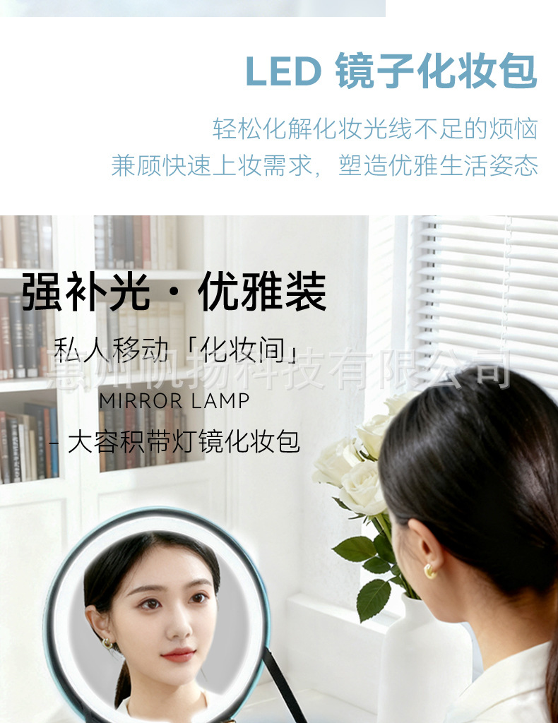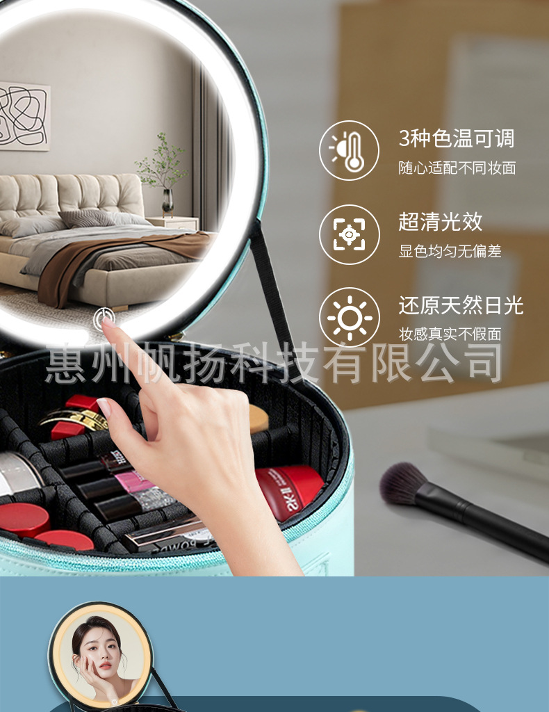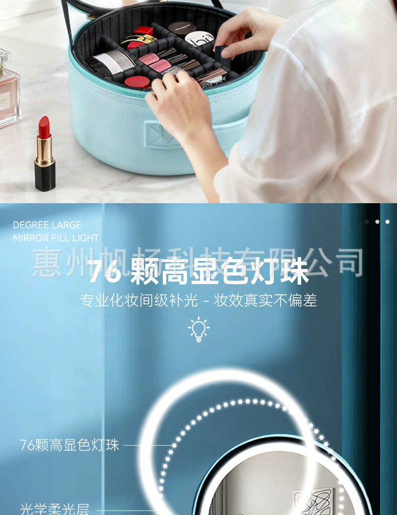 • [조명포함] 부드러운 가죽 LED 원형거울백 - 맑은 하늘색