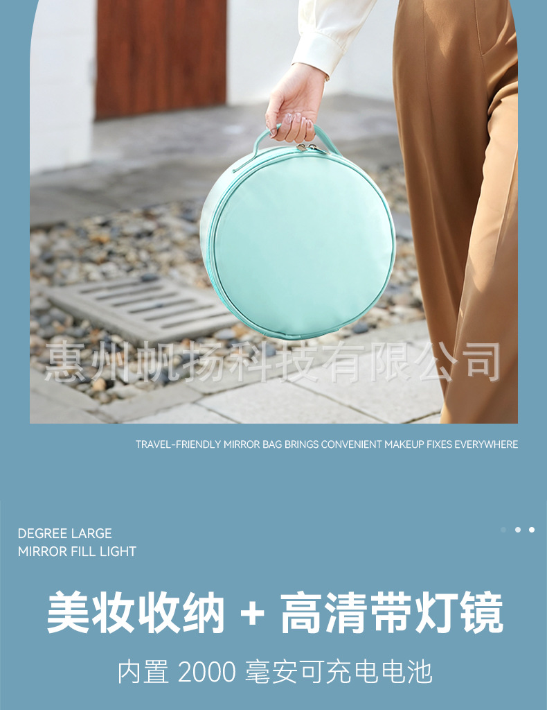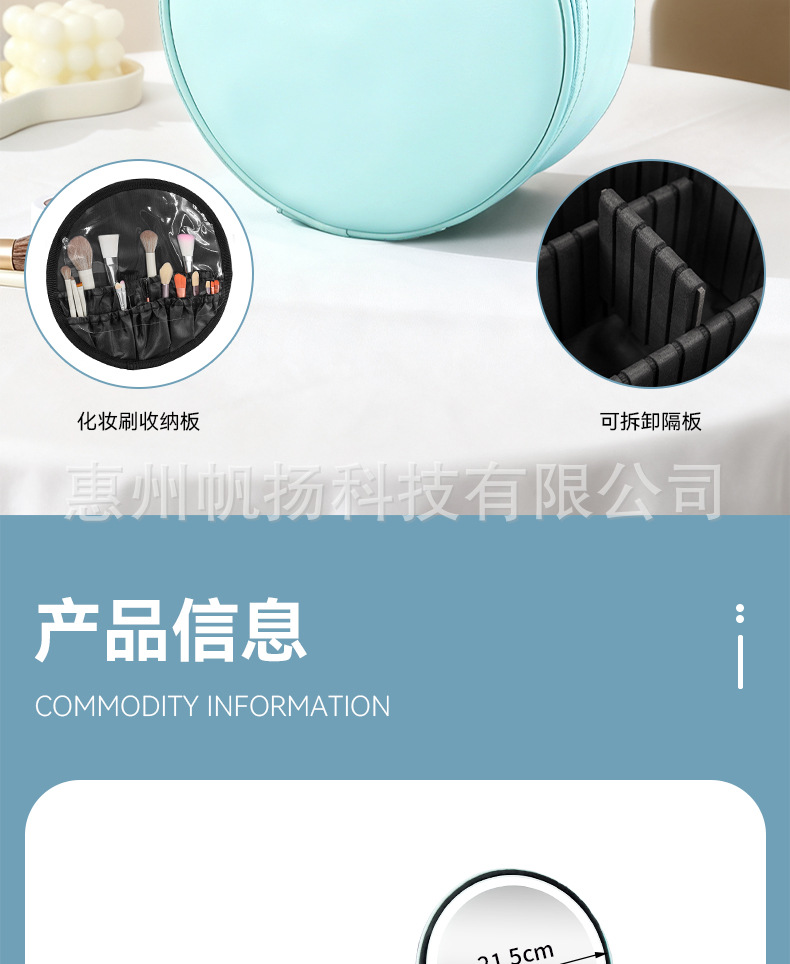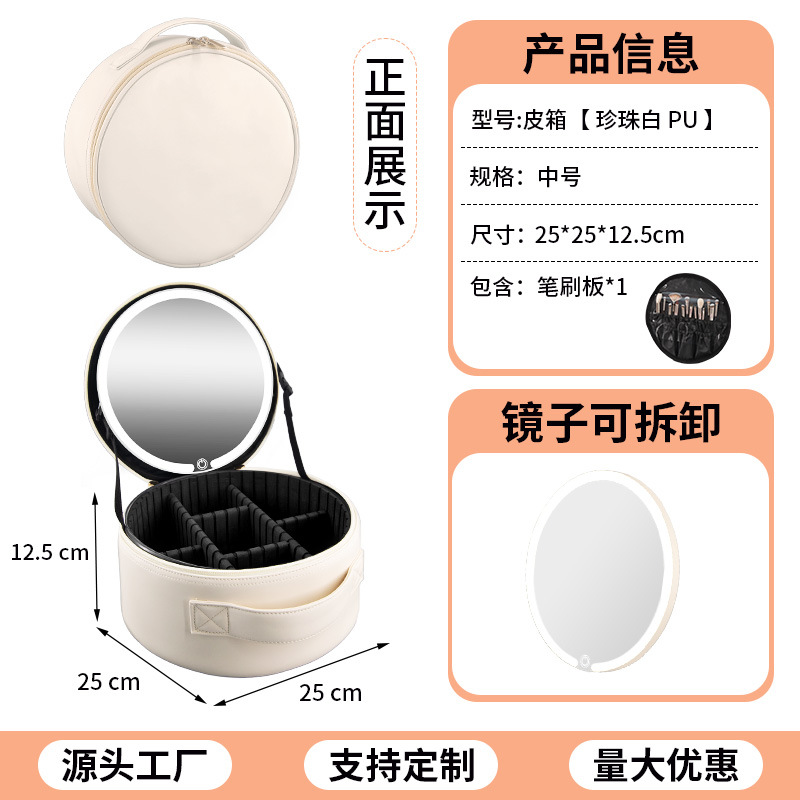 크로스보더 태기 원형 심플 화장품 가방 대용량 거울 내장 휴대용 수납 가방 휴대용 외출 방수 가방스토어 가기