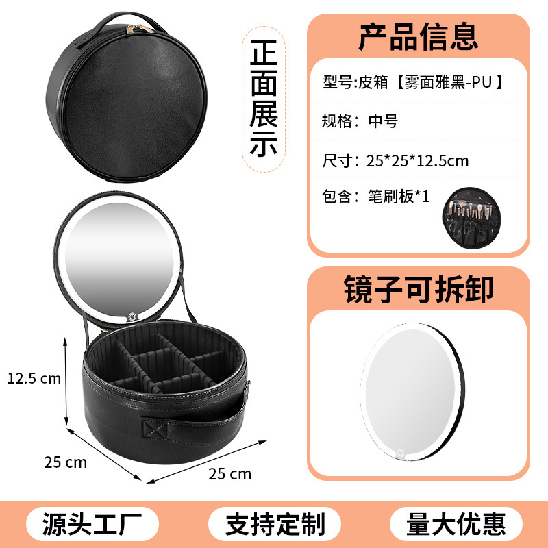 • [조명포함] 부드러운 가죽 LED 원형거울가방 - 매트하고 우아한 블랙