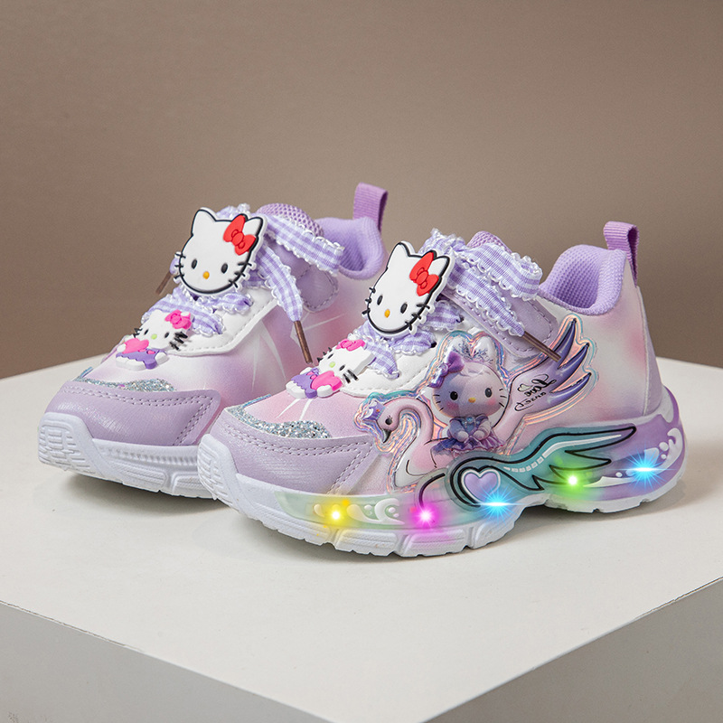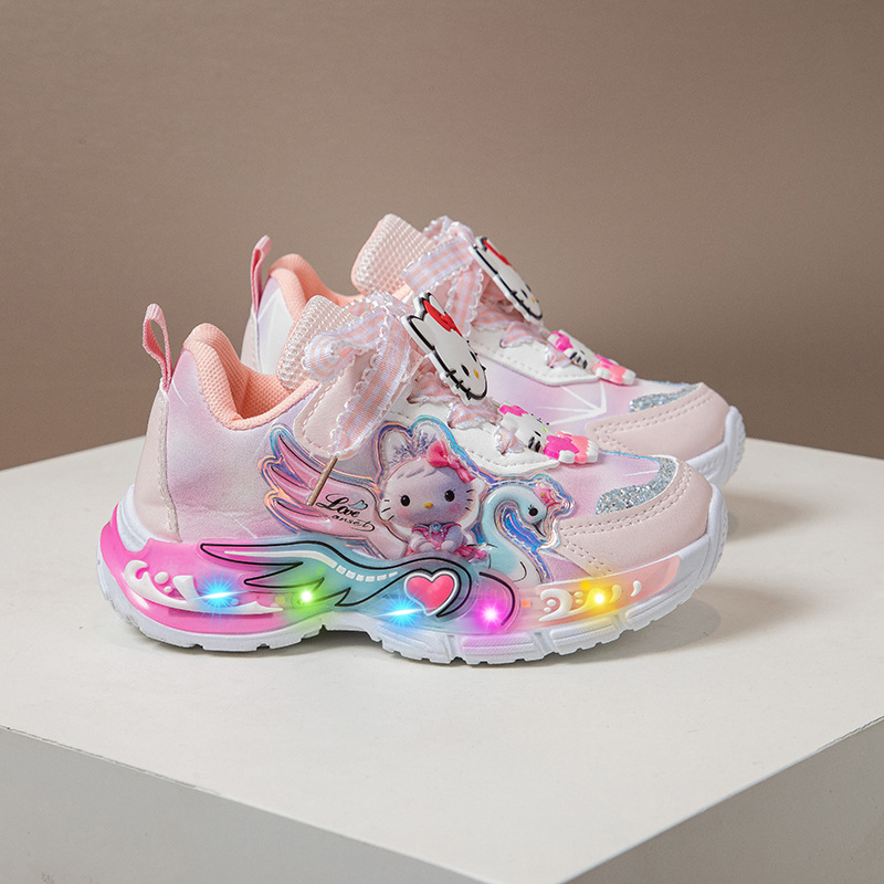 어린이 새로운 만화 빛 신발 포니 폴리 빛나는 신발 여자 학교 신발 봄 메쉬 운동화 회전