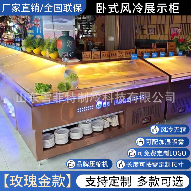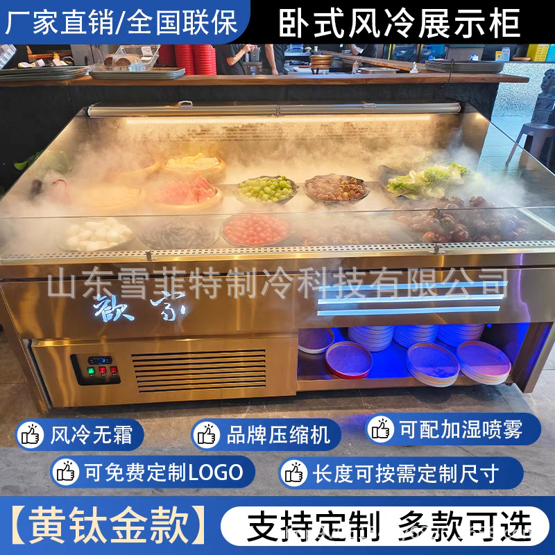맞춤형 오픈형 공냉식 스프레이 계단식 캐비닛 상업용 수평형 뷔페식 전골집 냉장 캐비닛 진열 캐비닛 신선 보관 캐비닛