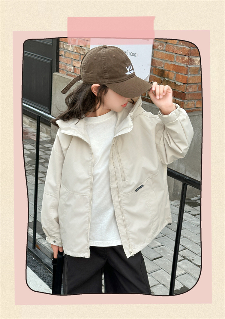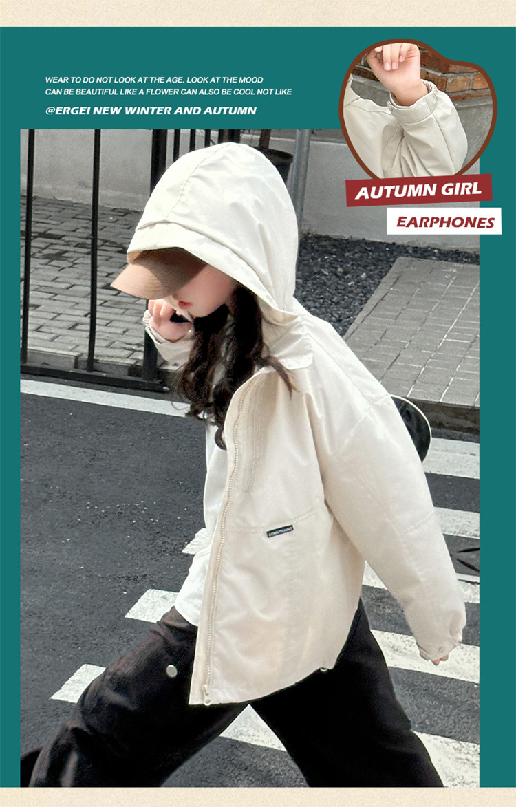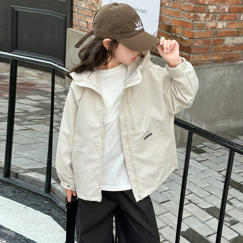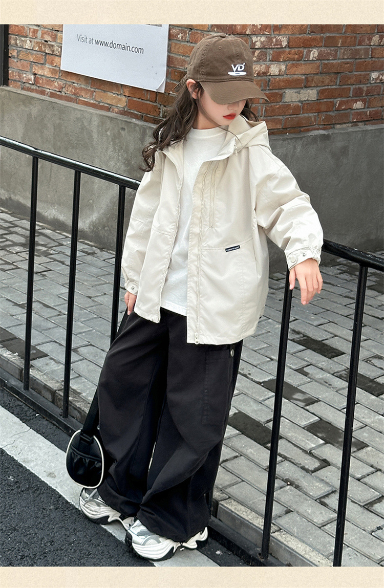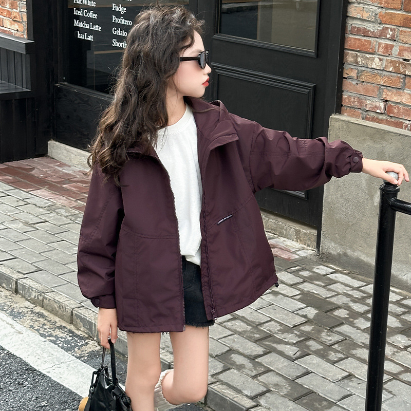 소녀 봄 코트 2025 새로운 대형 어린이 캐주얼 후드 탑 어린이 서양식 유행 폭행 의류 도매스토어 가기