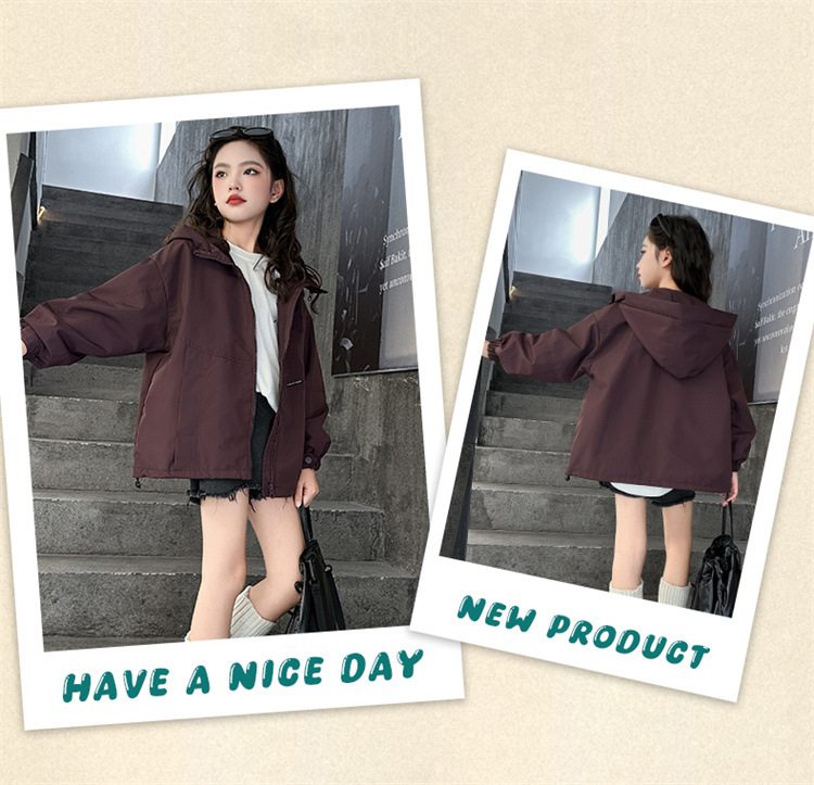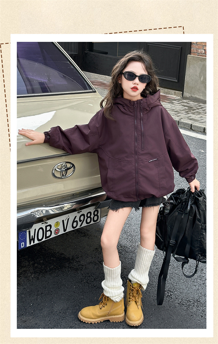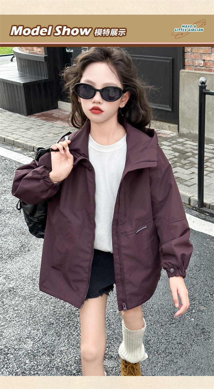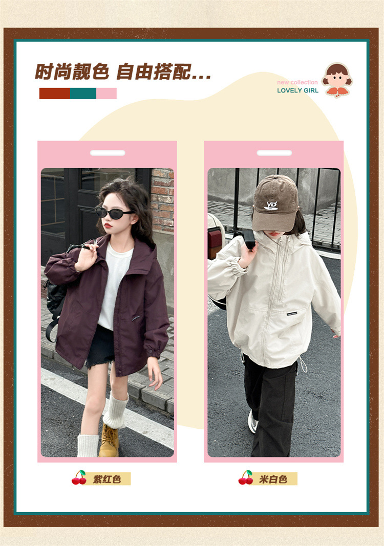 소녀 봄 코트 2025 새로운 대형 어린이 캐주얼 후드 탑 어린이 서양식 유행 폭행 의류 도매스토어 가기