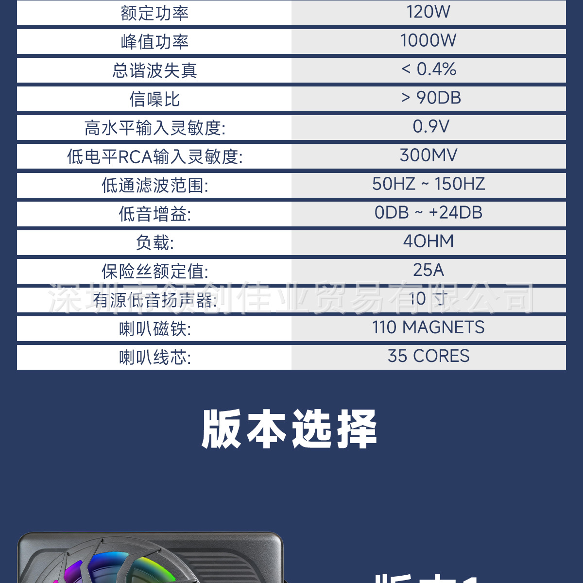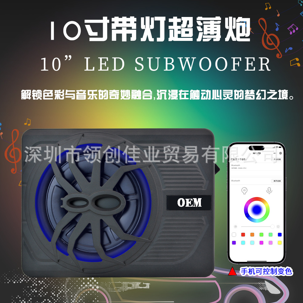 공장 도매 고출력 10inch 자동차 오디오 800W 컬러 라이트 모델 자동차 수정 스파이더 총 초박형 서브 우퍼