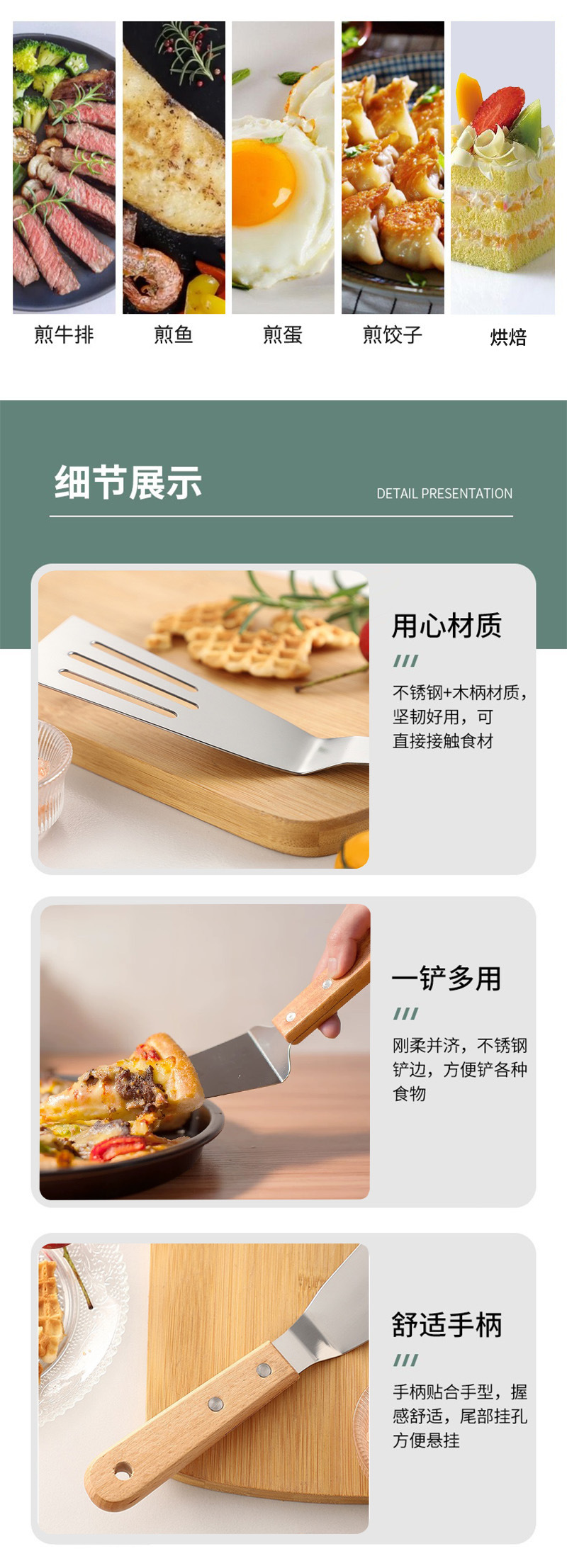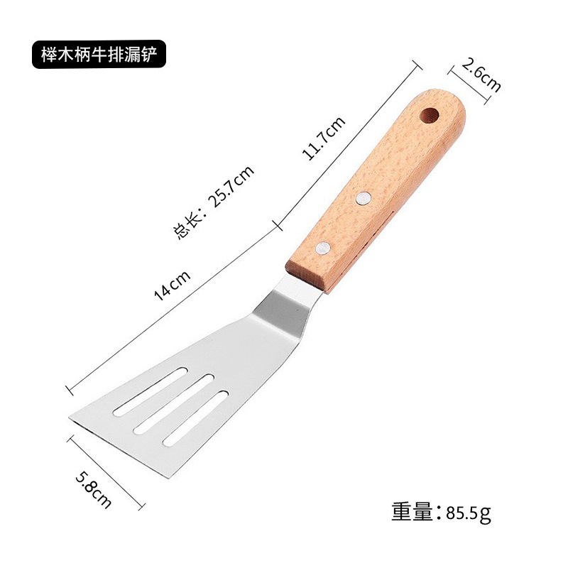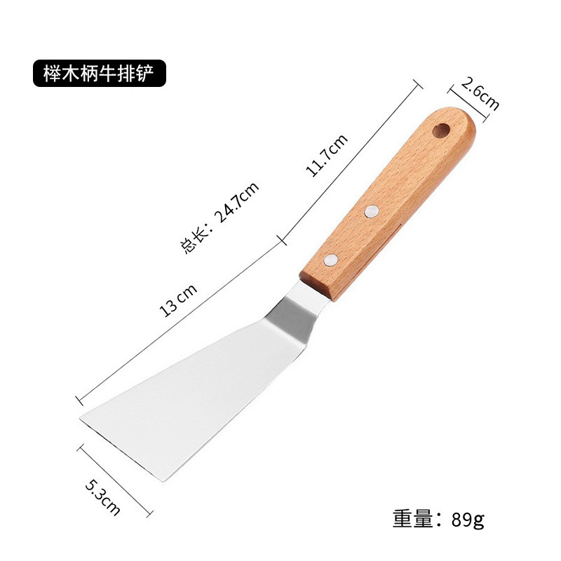 너도밤 나무 손잡이 스테인레스 스틸 요리 삽 아마존 스테이크 피자 Teppanyaki 팬케이크 과일 핸드 케이크 도구