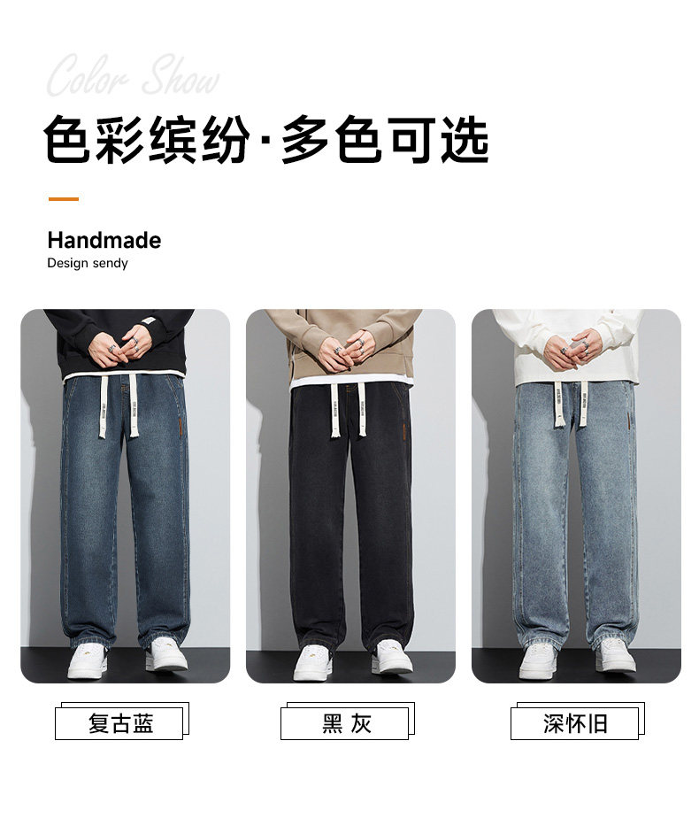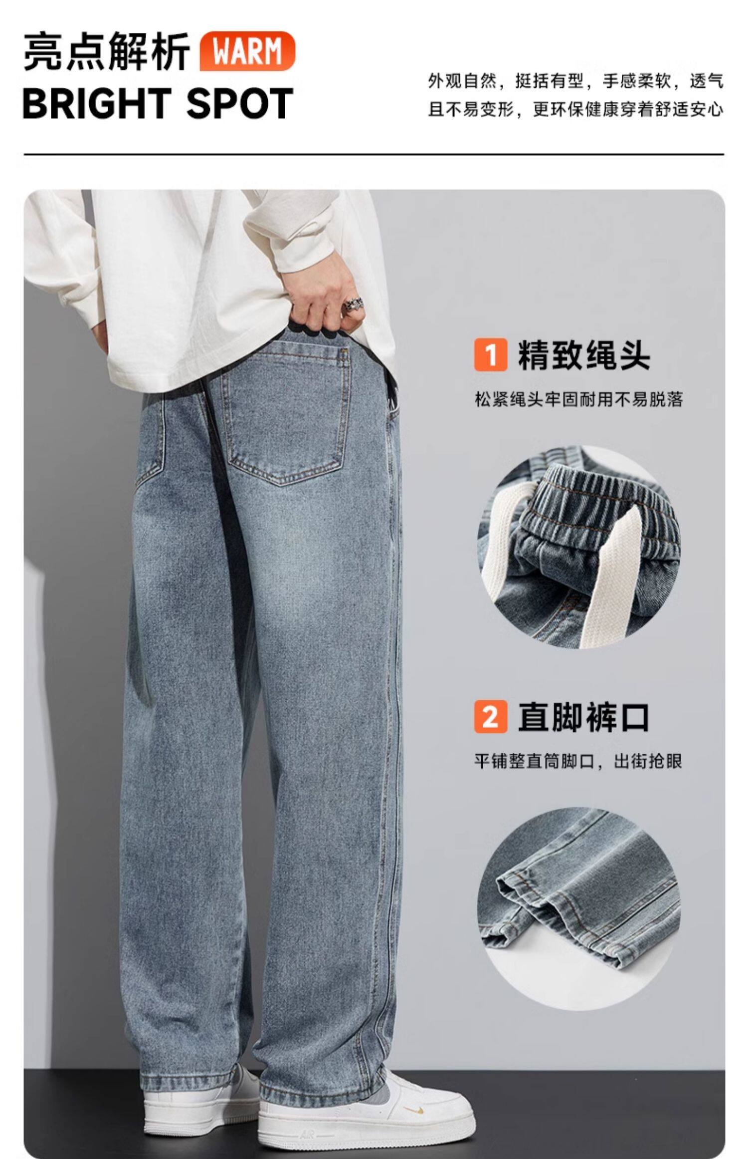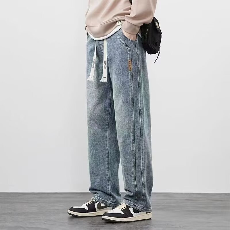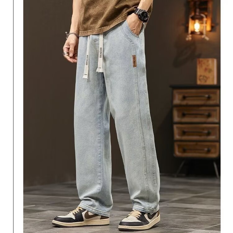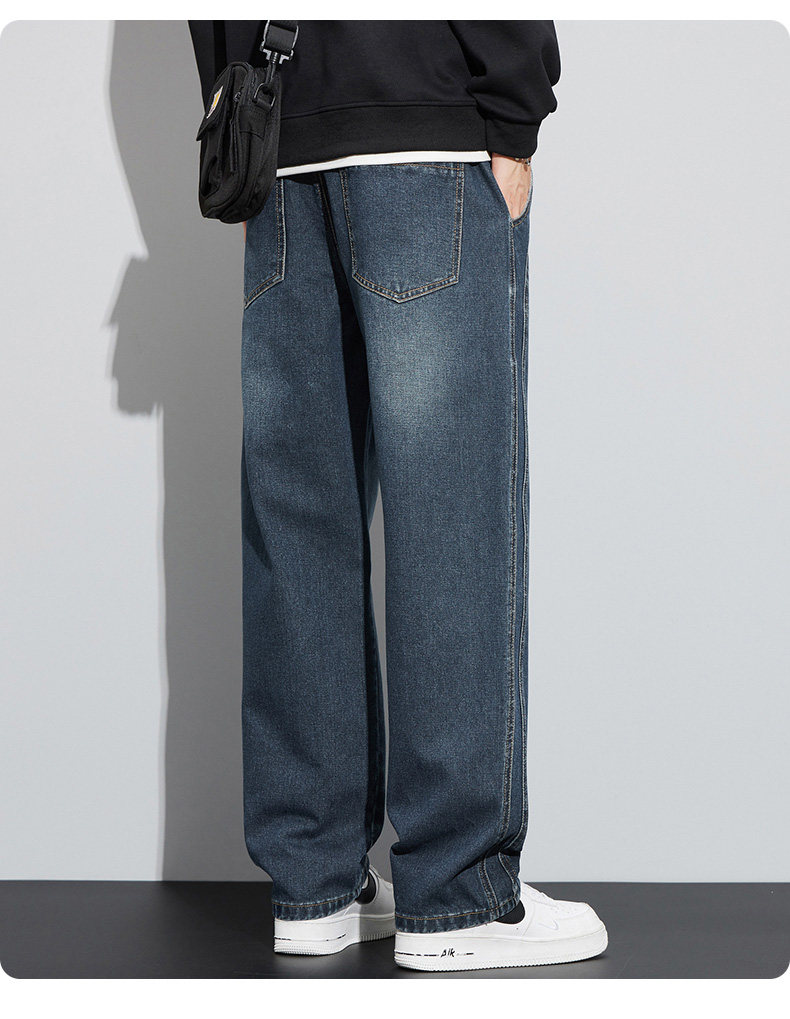아메리칸 하이 스트리트 2024 새로운 루즈 스트레이트 청바지 남성 가을 겨울 패션 브랜드 와이드 레트로 캐주얼 롱 팬츠스토어 가기