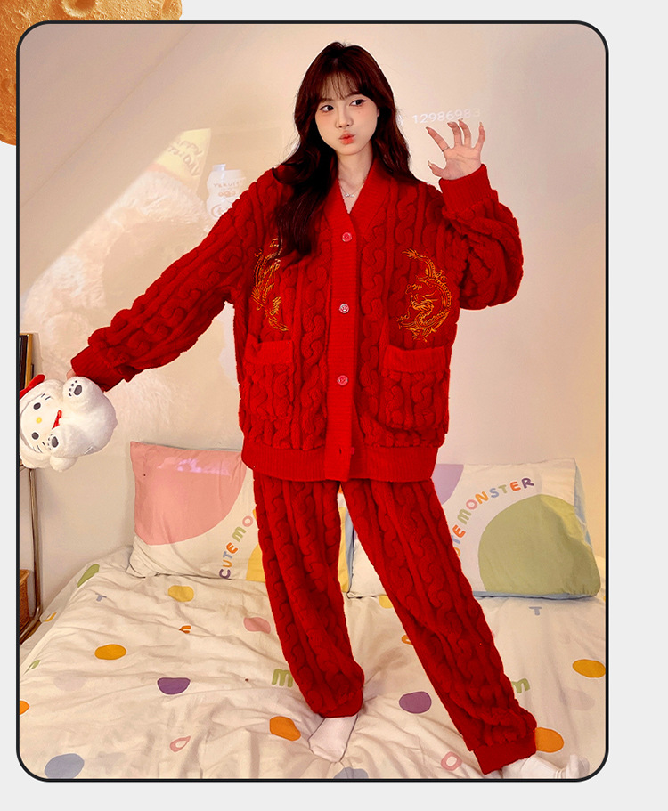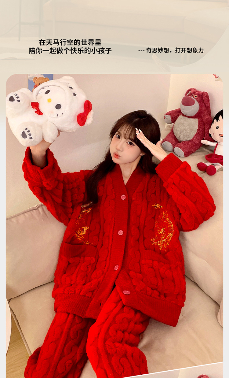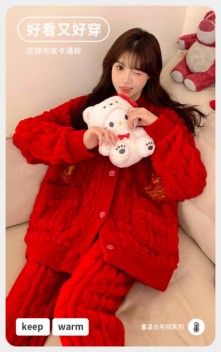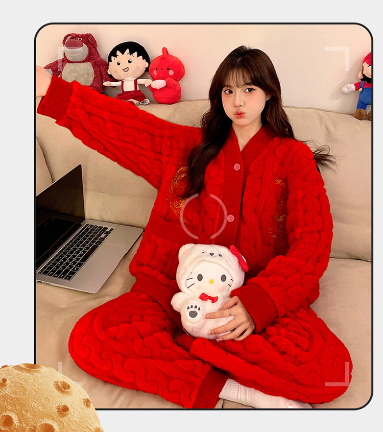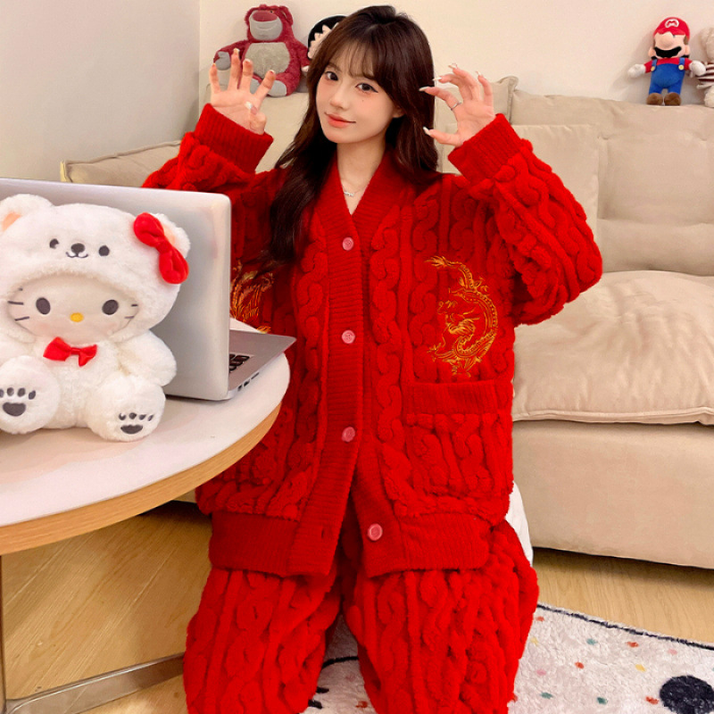 잠옷 여성의 겨울 연애 두꺼운 따뜻한 공주 스타일 달콤한 세트 겨울 플란넬 여성 홈 옷
