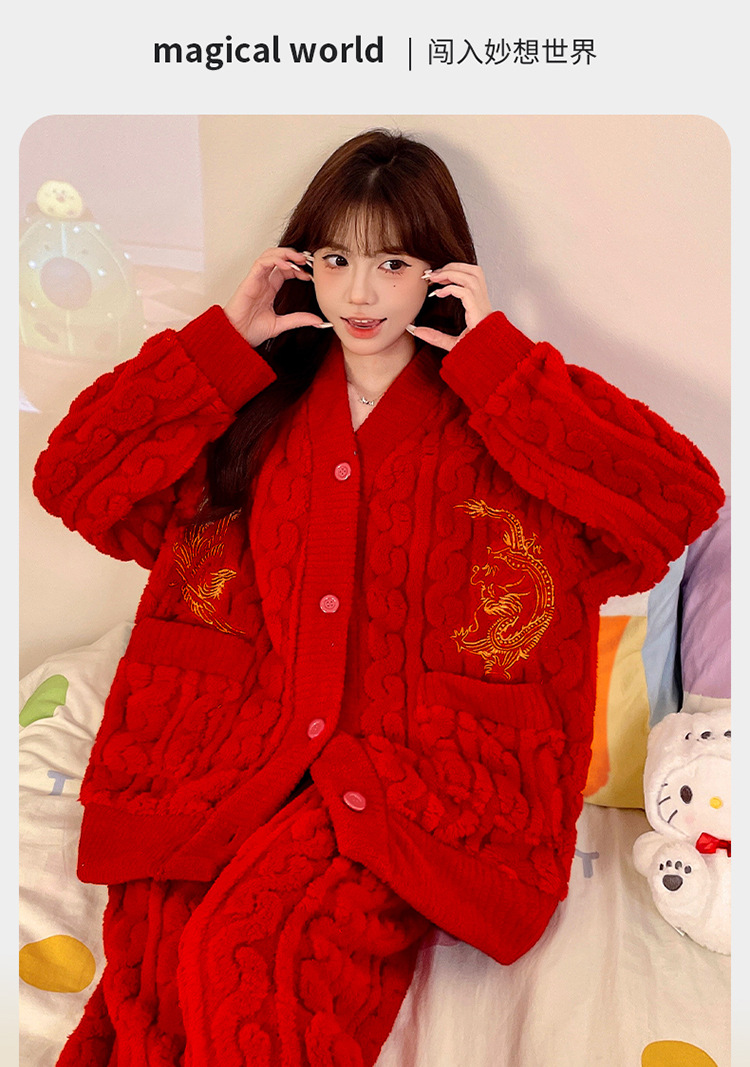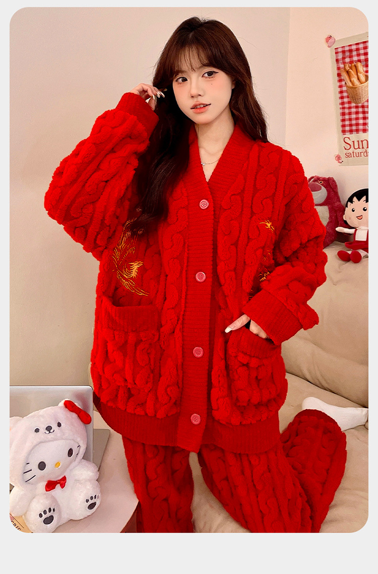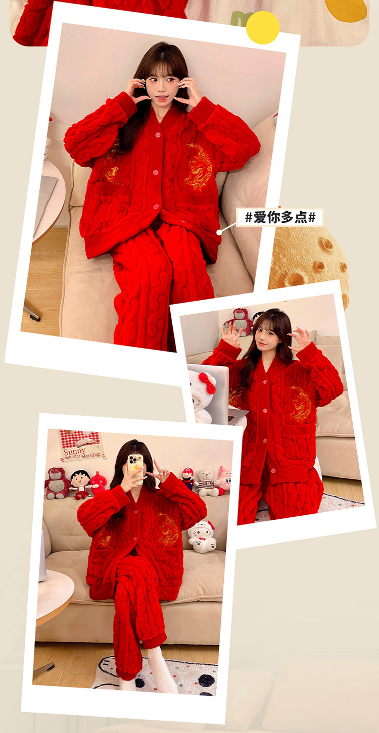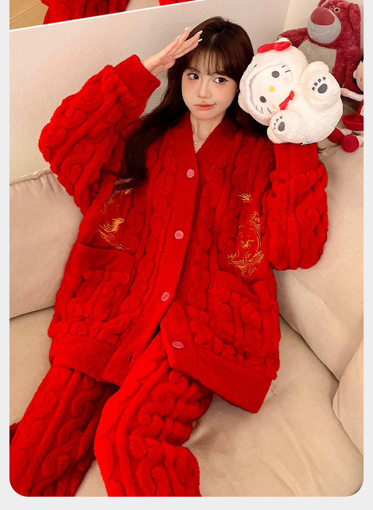 잠옷 여성의 겨울 연애 두꺼운 따뜻한 공주 스타일 달콤한 세트 겨울 플란넬 여성 홈 옷