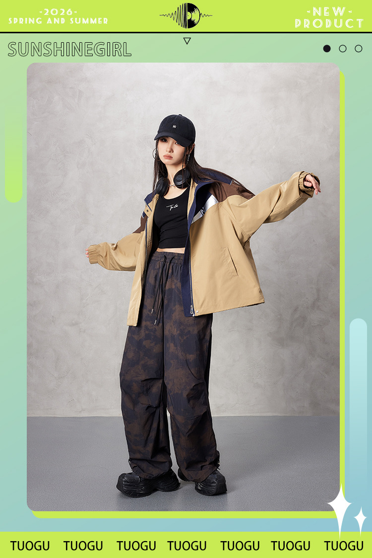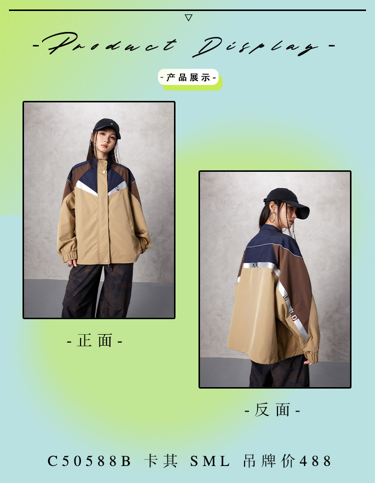 Tuogu 봄 신상품 스탠드 칼라 배색 카키색 윈드브레이커 여성용 루즈핏 캐주얼 긴팔 재킷 야구 점퍼스토어 가기