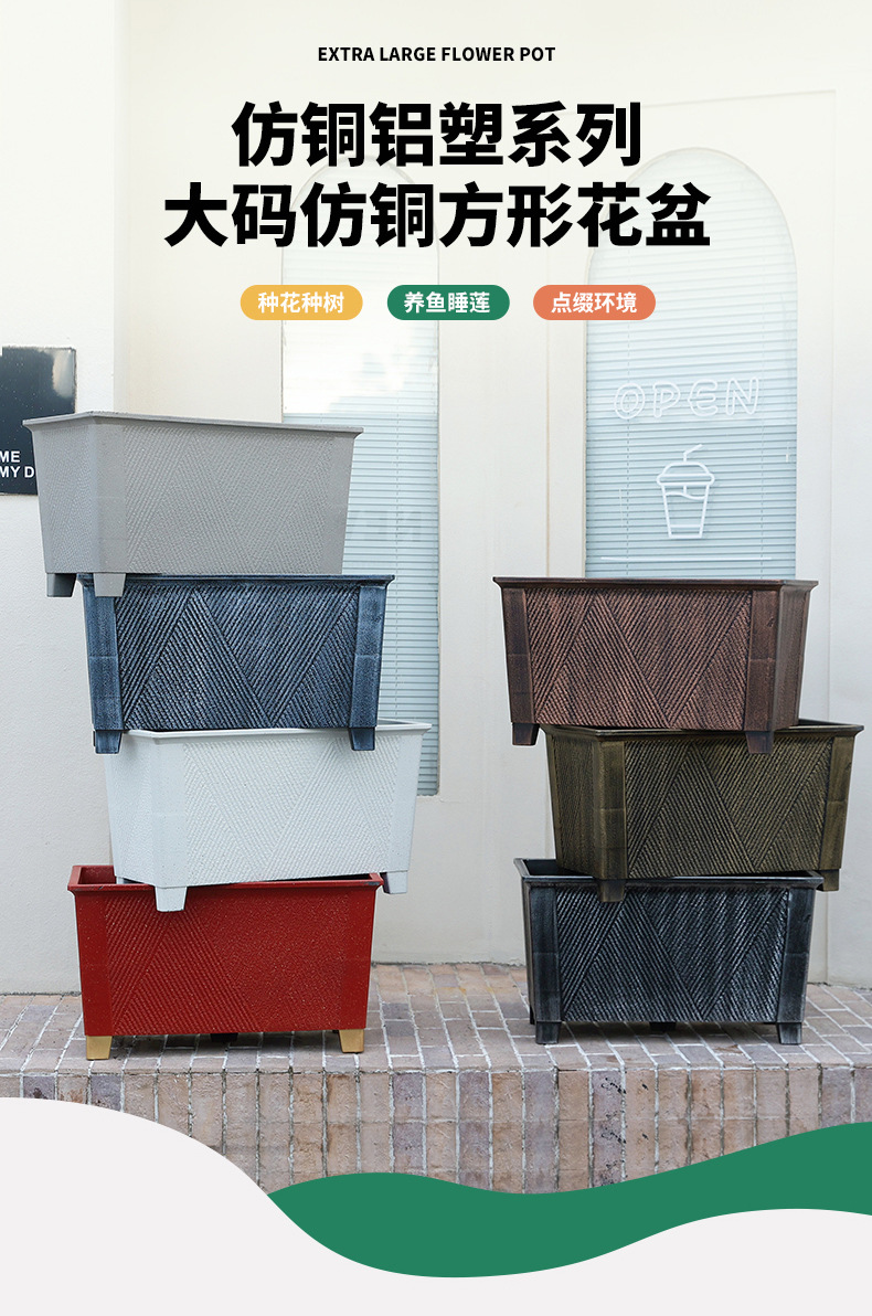 공장 직송 직사각형 야외 재배 상자, 발코니 및 옥상용 플라스틱 대형 화분, 채소 및 꽃 재배용 상자, 녹색 식물 재배용 상자스토어 가기