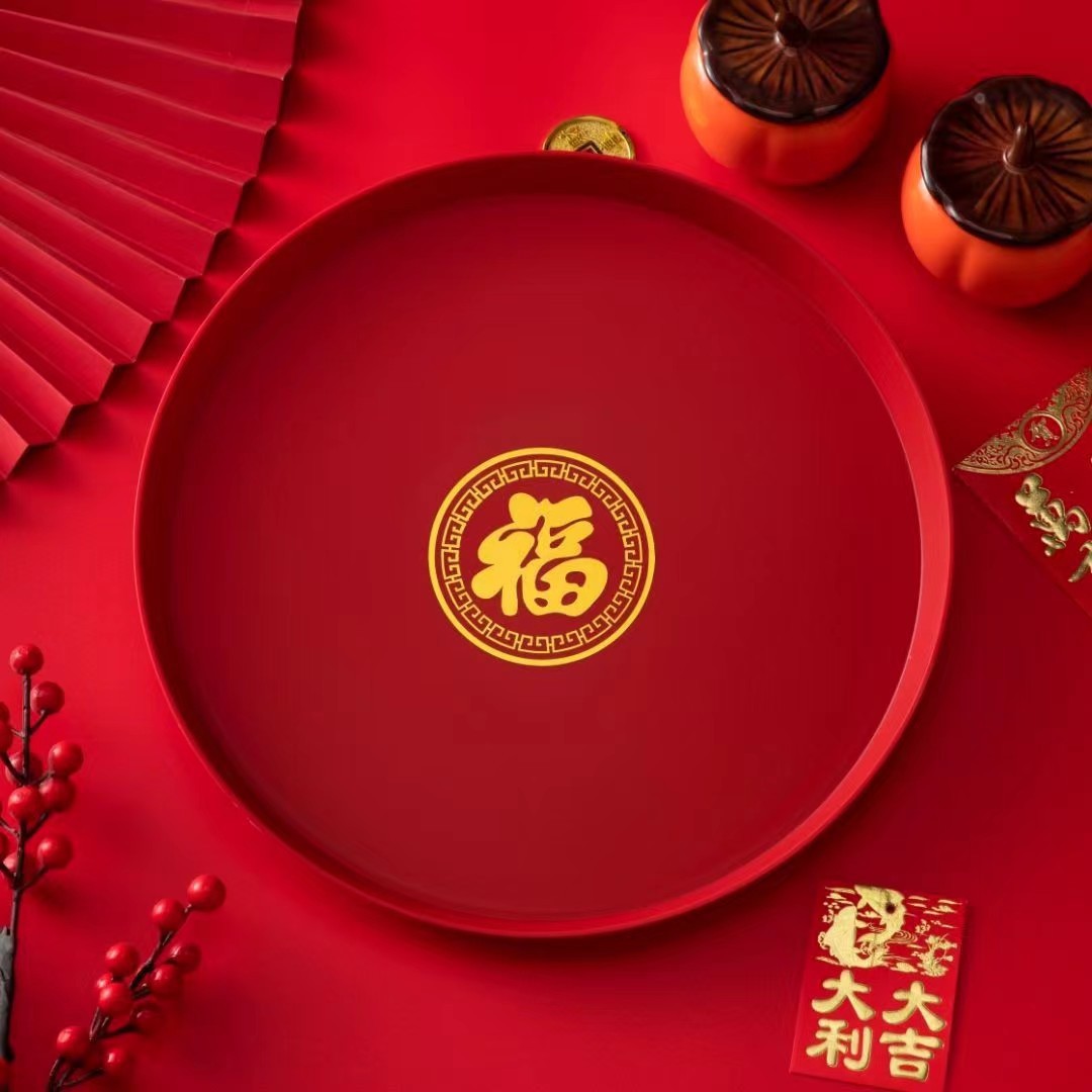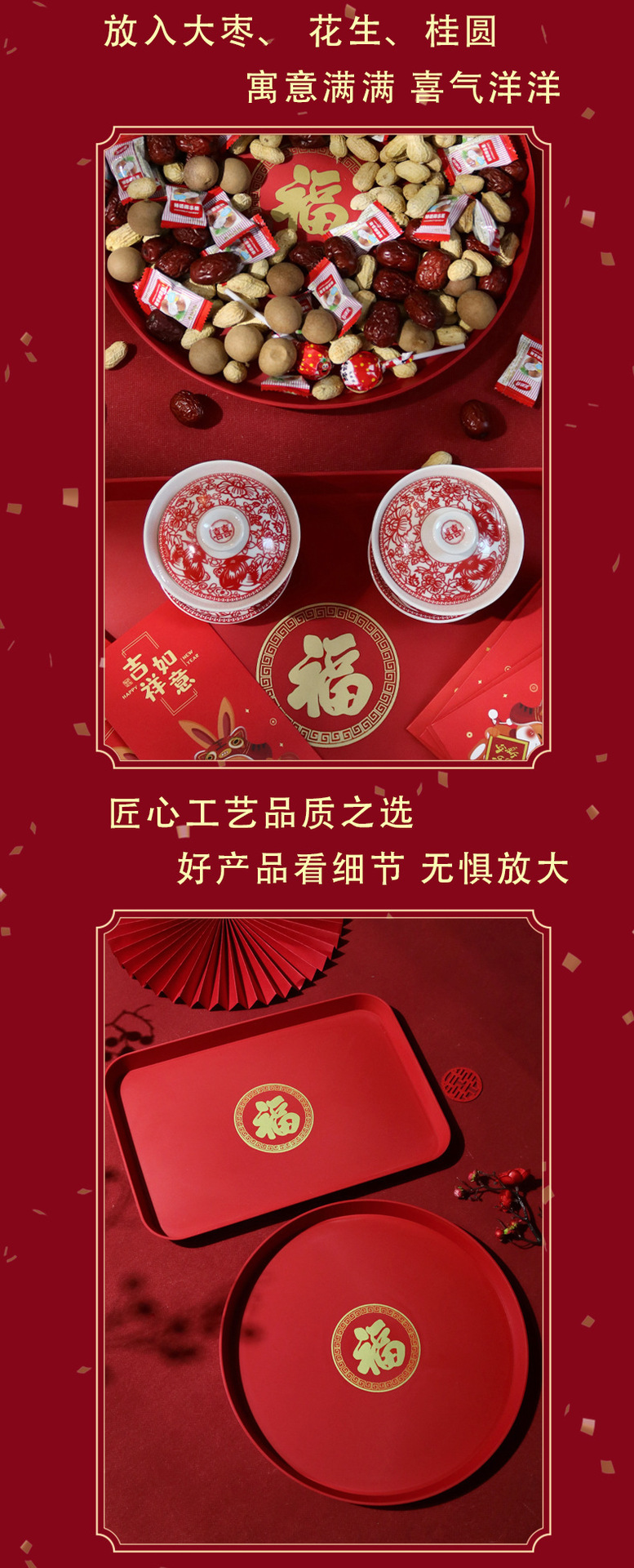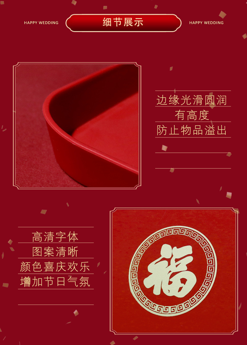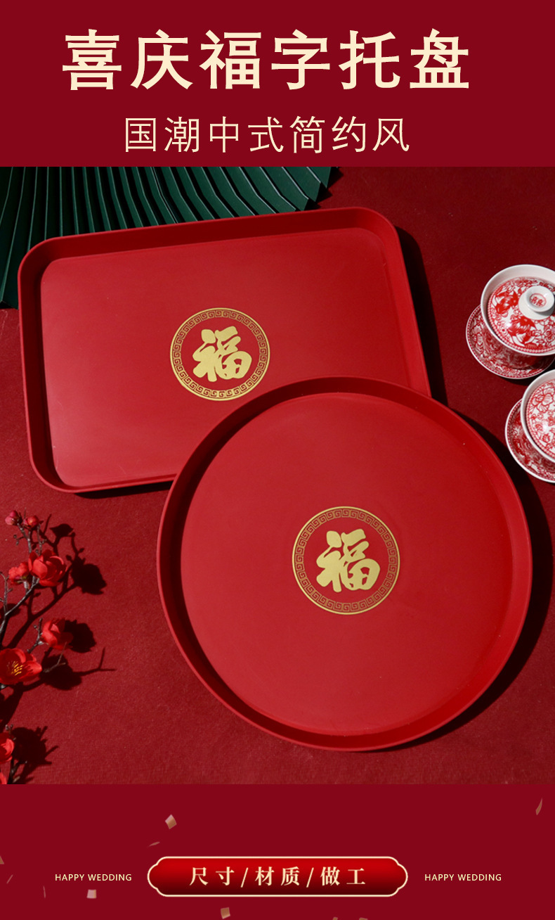 도매 결혼식 용품 Daquan 결혼식 새로운 행복한 단어 차 트레이 집들이 새 집 행운의 단어 과일 플레이트 웨딩 연회 플레이트