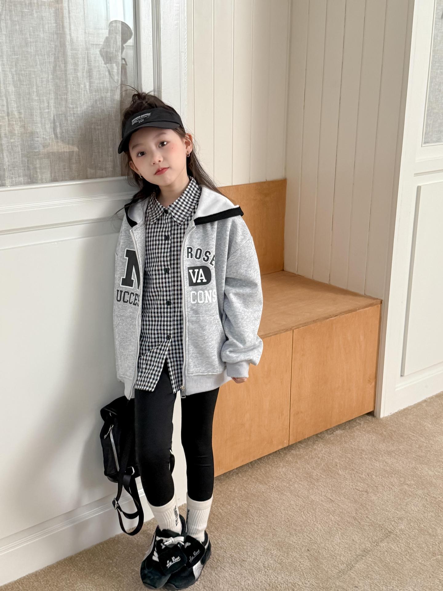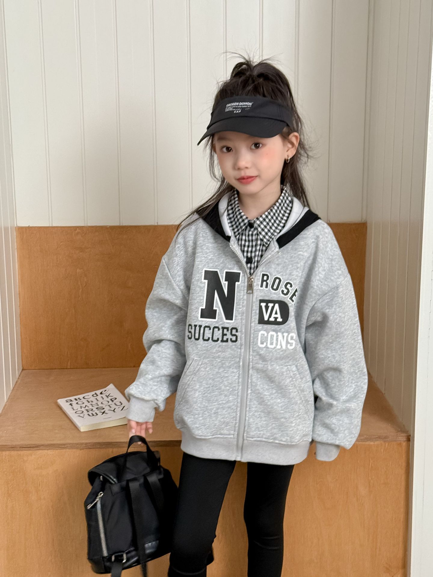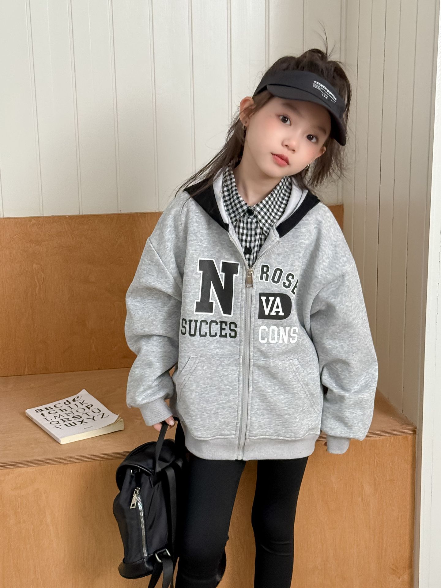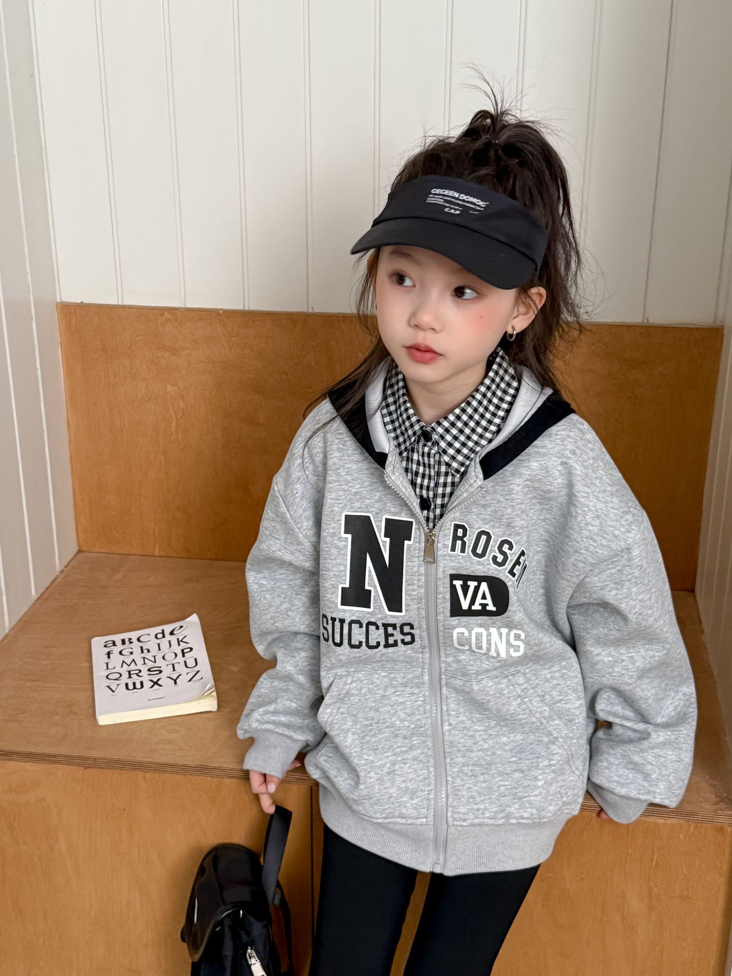 어린이 야구 의류 어린이 의류 2025 봄 새 소녀 편지 인쇄 후드 자켓 소녀 캐주얼 스웨트 셔츠 탑