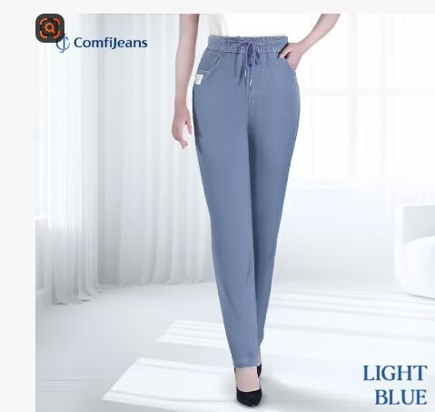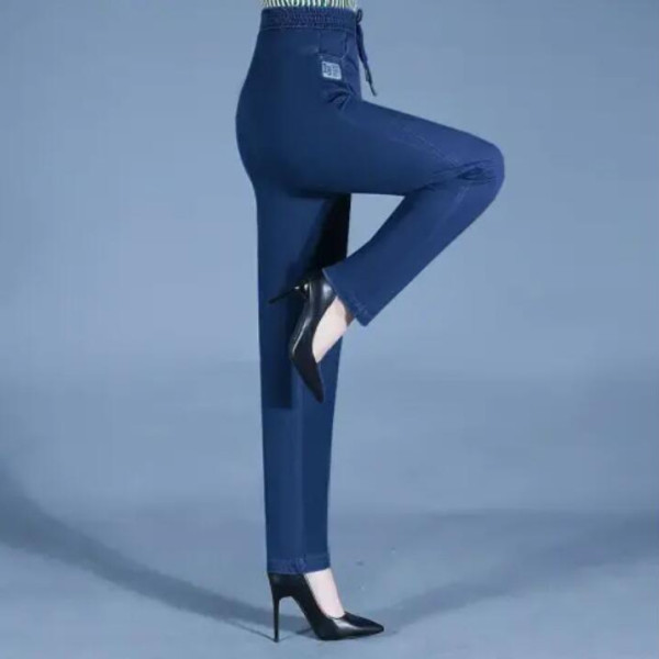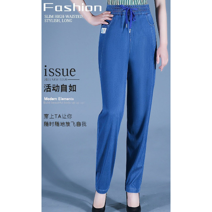아이스 실크 청바지 여성의 높은 허리 스트레치 소프트 청바지 여름 엄마 탄성 허리 스키니 바지 중년 및 노인 대형 바지스토어 가기