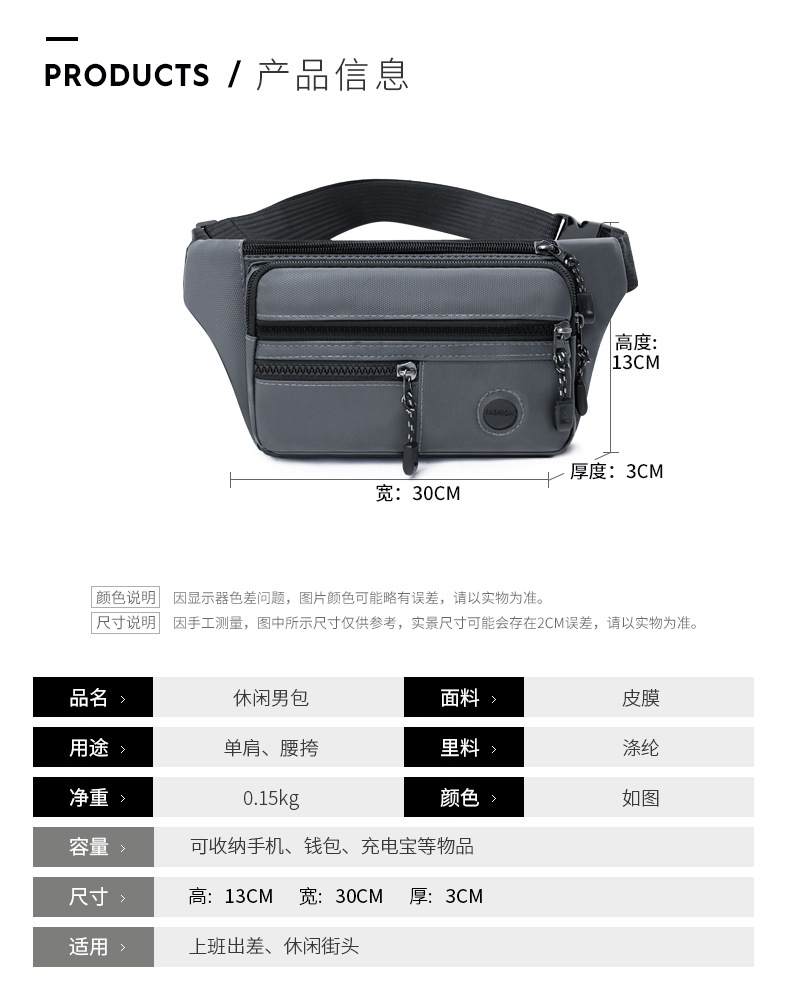 도매 새로운 크로스 바디 가방 발수 허리 가방 남성 맞춤형 캐주얼 야외 스포츠 어깨 가방 패션 가슴 가방스토어 가기