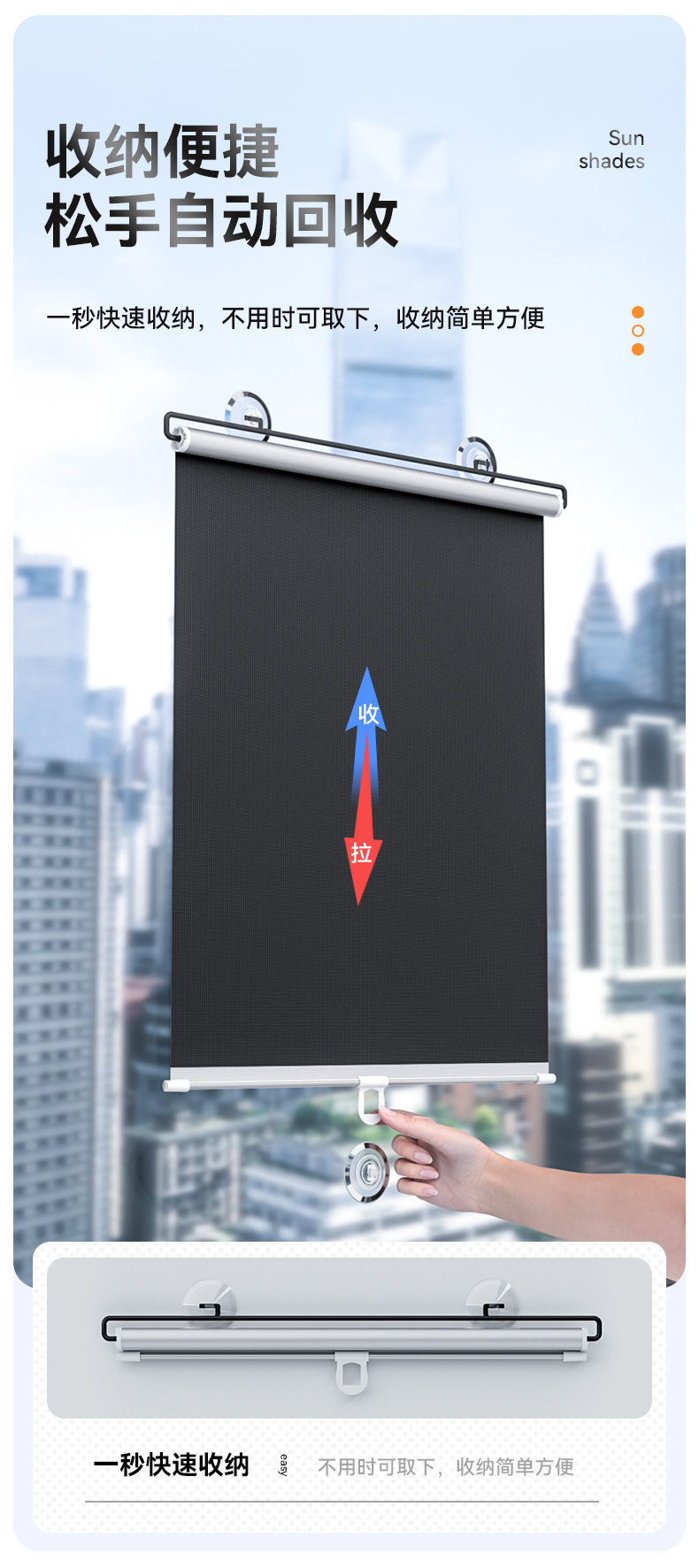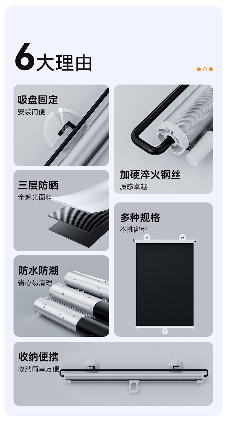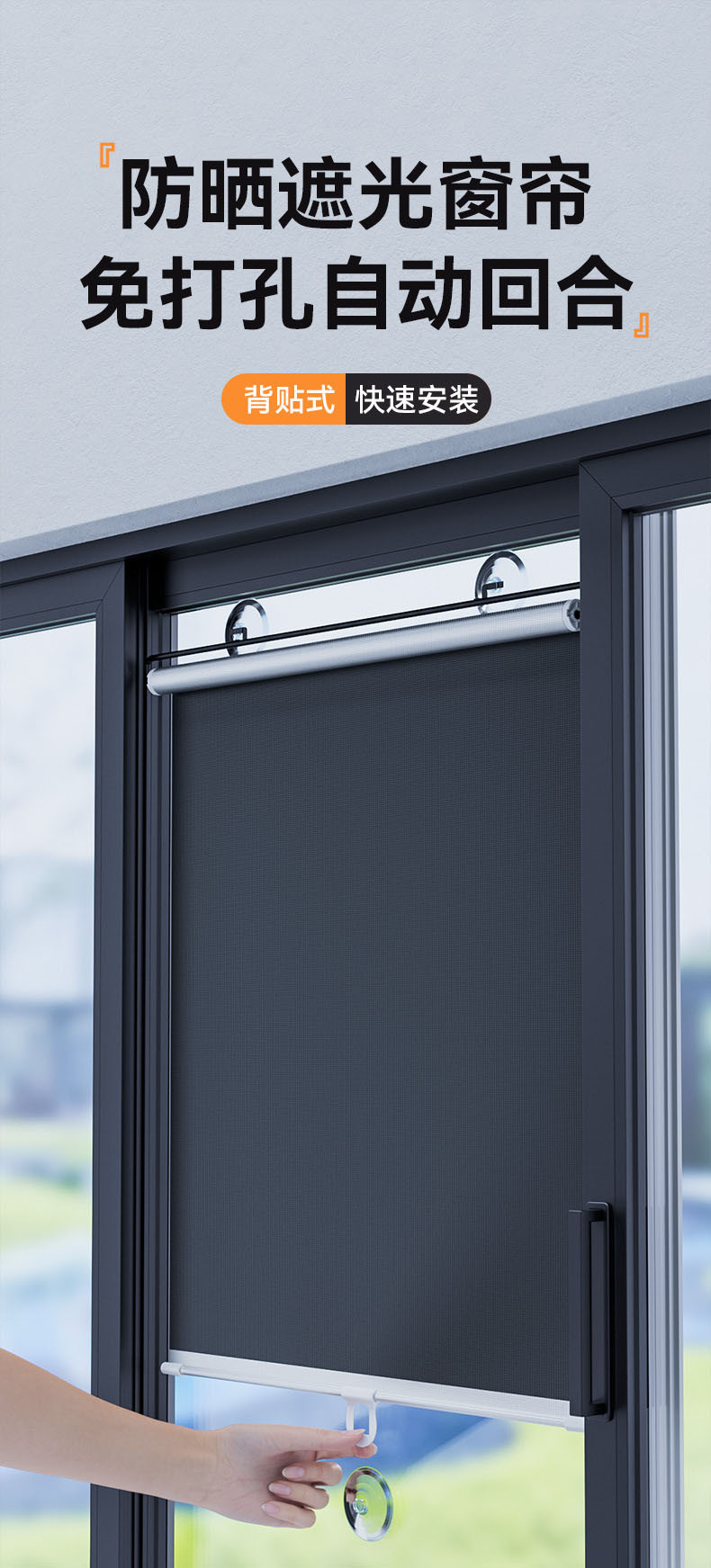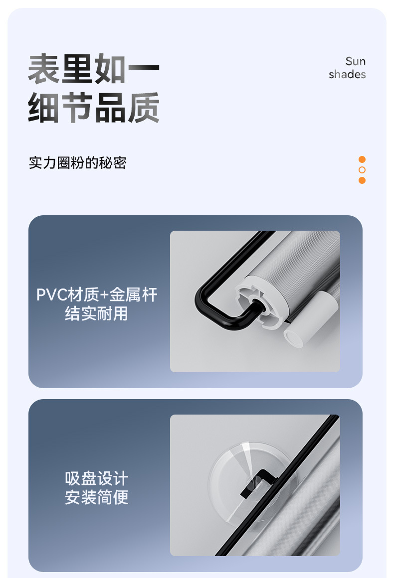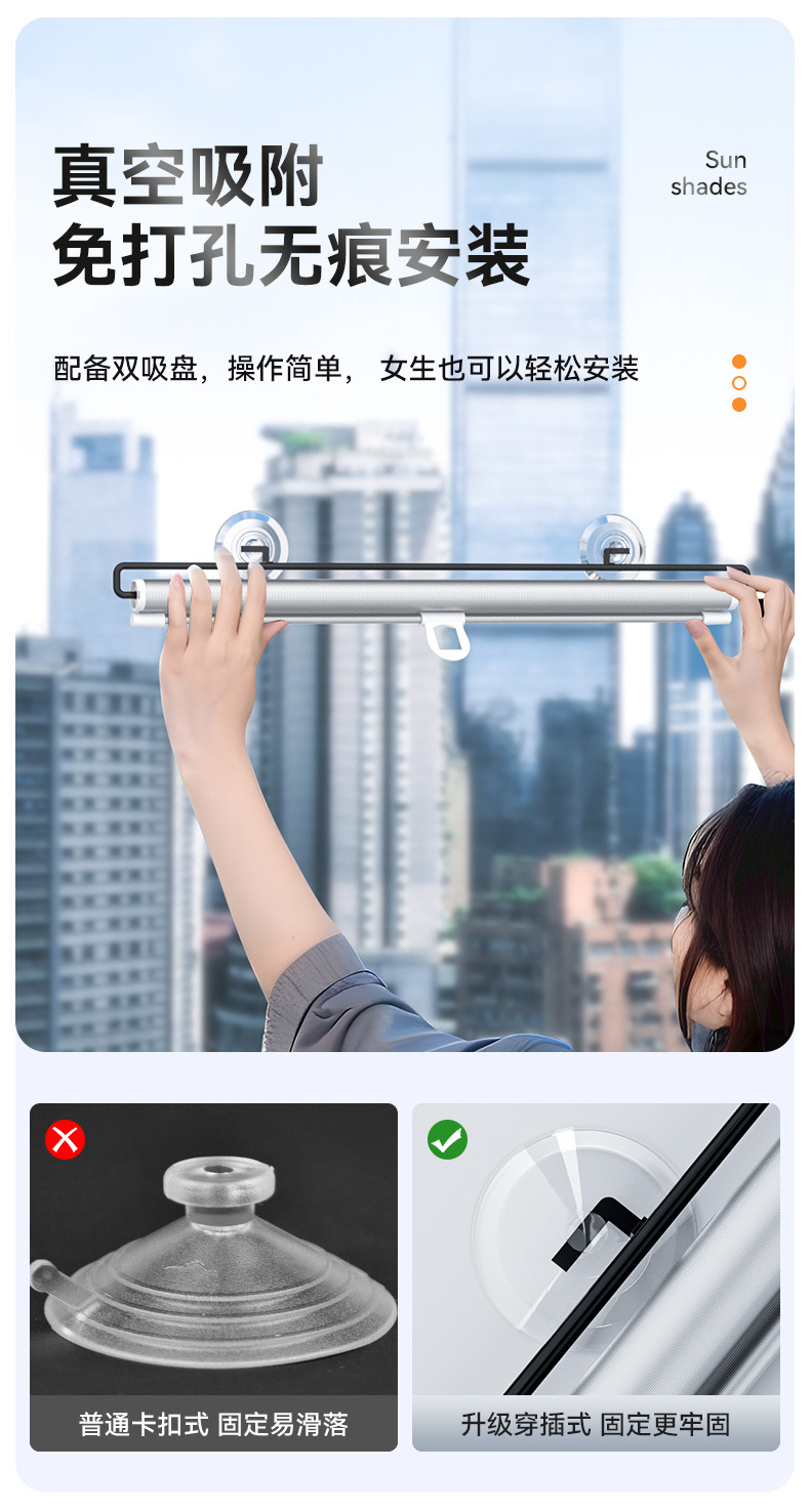 2、吸盘吸附,直接粘在窗轨上,方便使用;