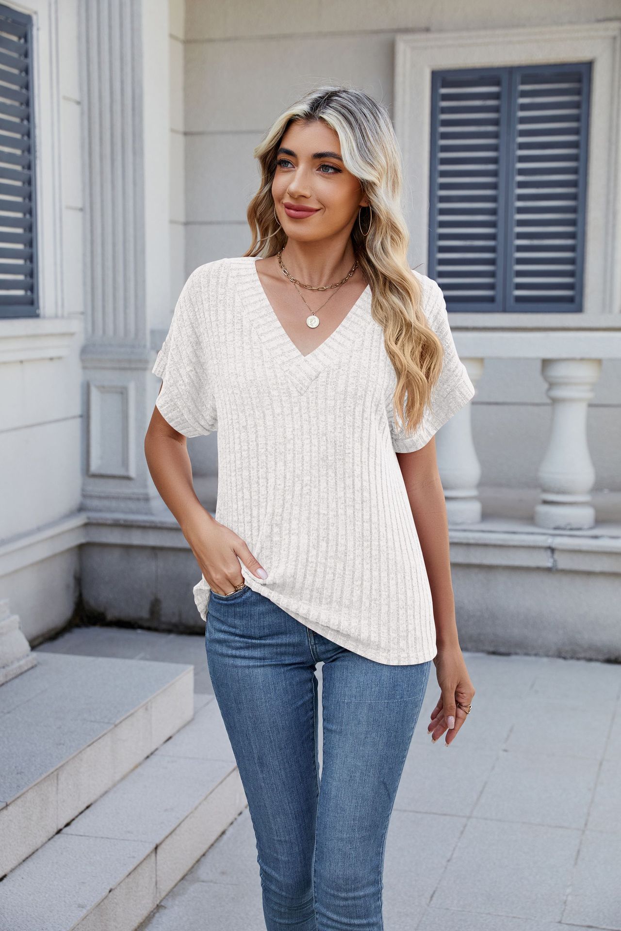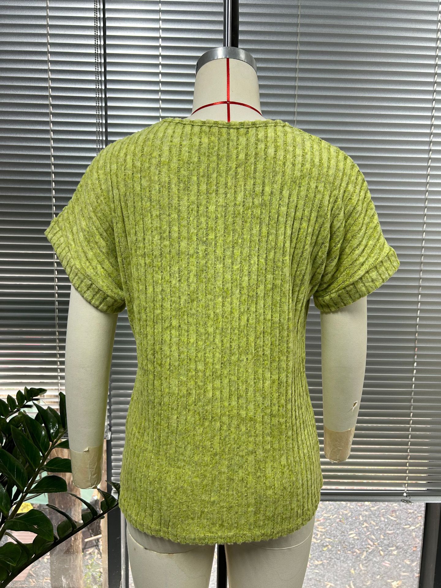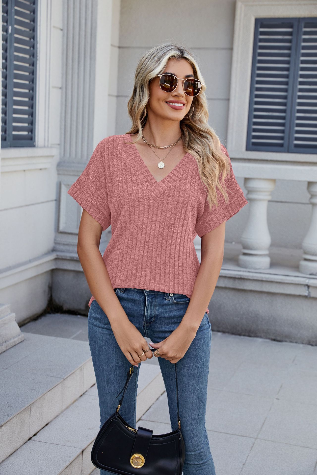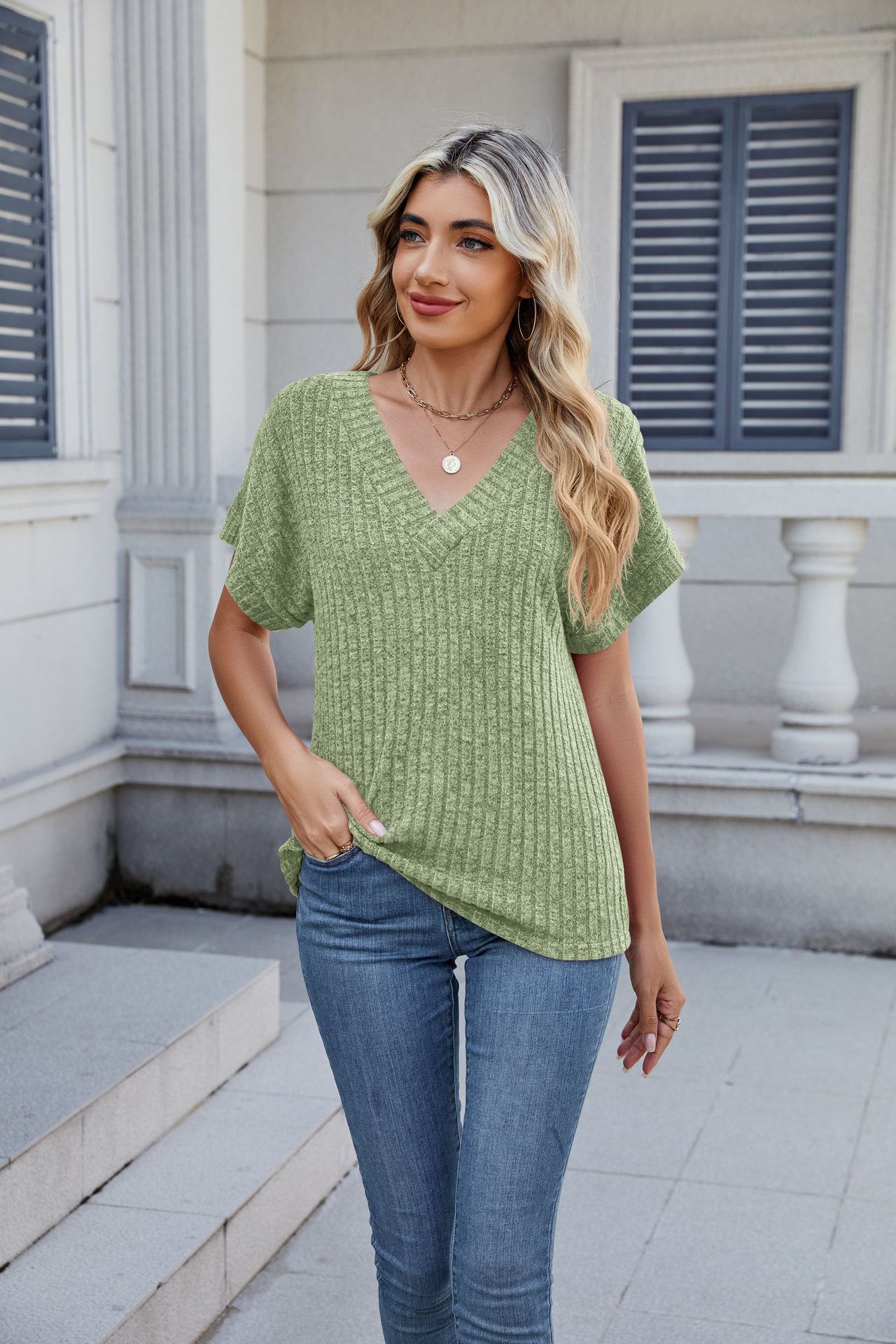 2025 봄 국경 유럽 및 미국 신제품 아마존 TEMU 폭발 여성 느슨한 캐주얼 솔리드 컬러 V 넥 티셔츠 짧은 소매