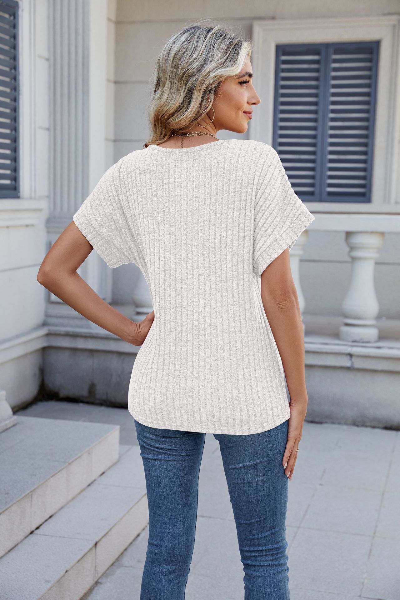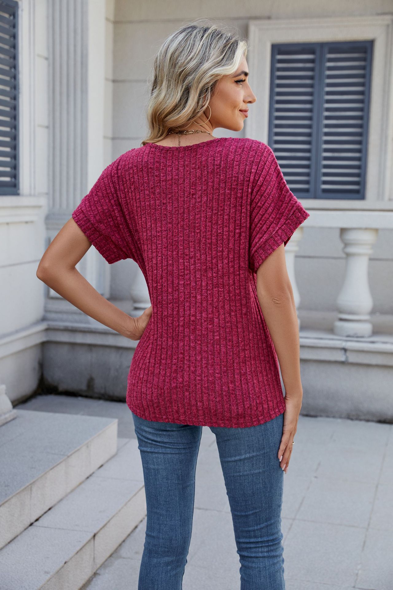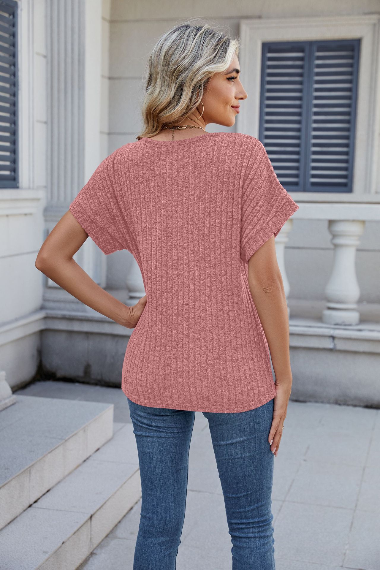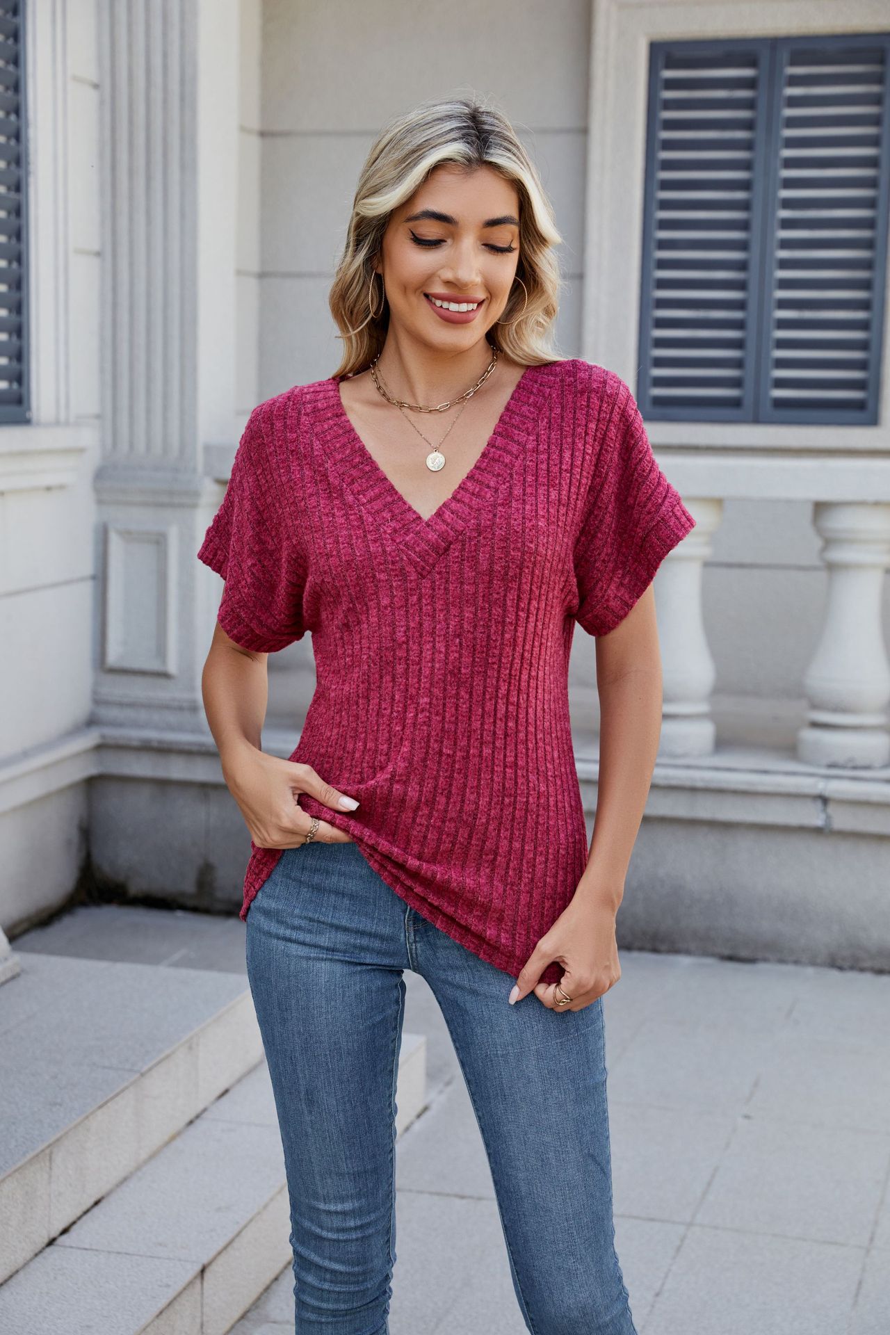 2025 봄 국경 유럽 및 미국 신제품 아마존 TEMU 폭발 여성 느슨한 캐주얼 솔리드 컬러 V 넥 티셔츠 짧은 소매