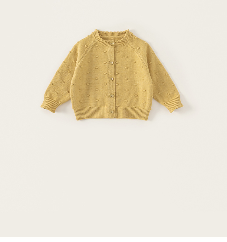 방선택 신상 여아 스웨터 노란색 아기 가디건 레이스 칼라 한국 스타일 니트웨어 여자 아기 코트 신생아용스토어 가기