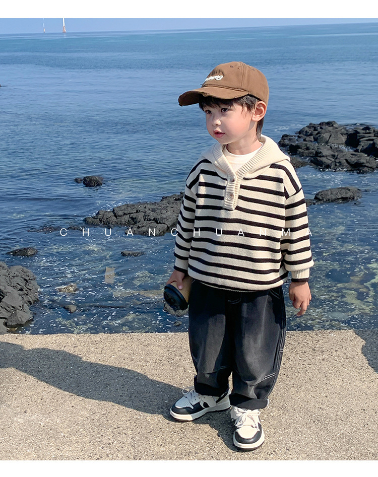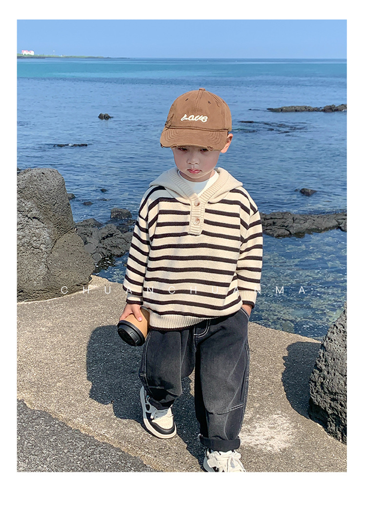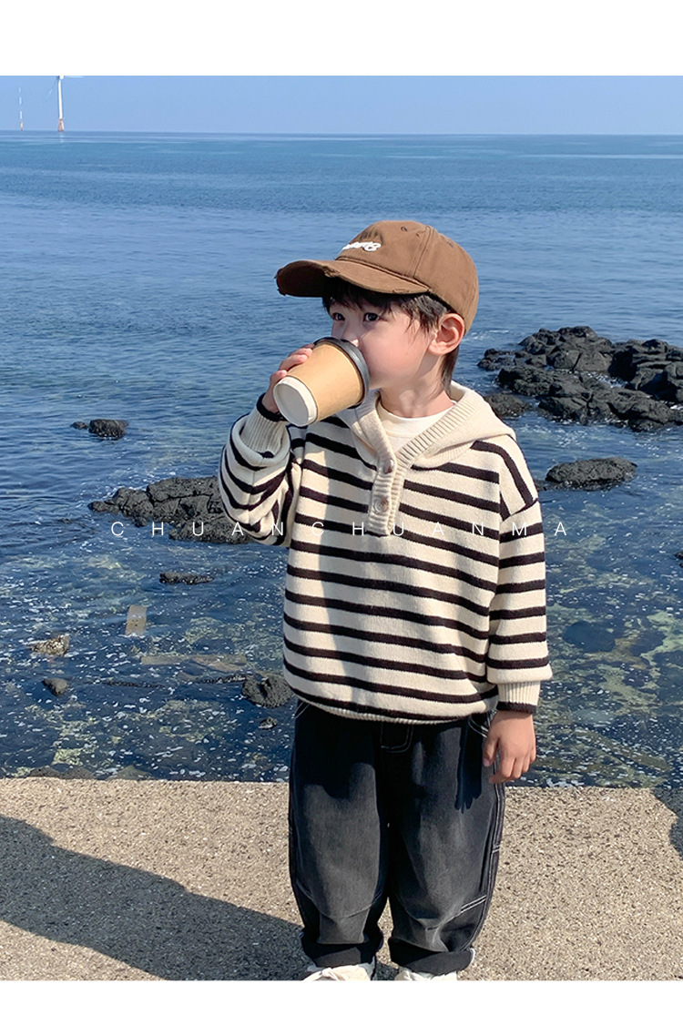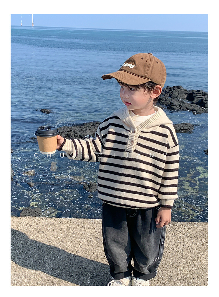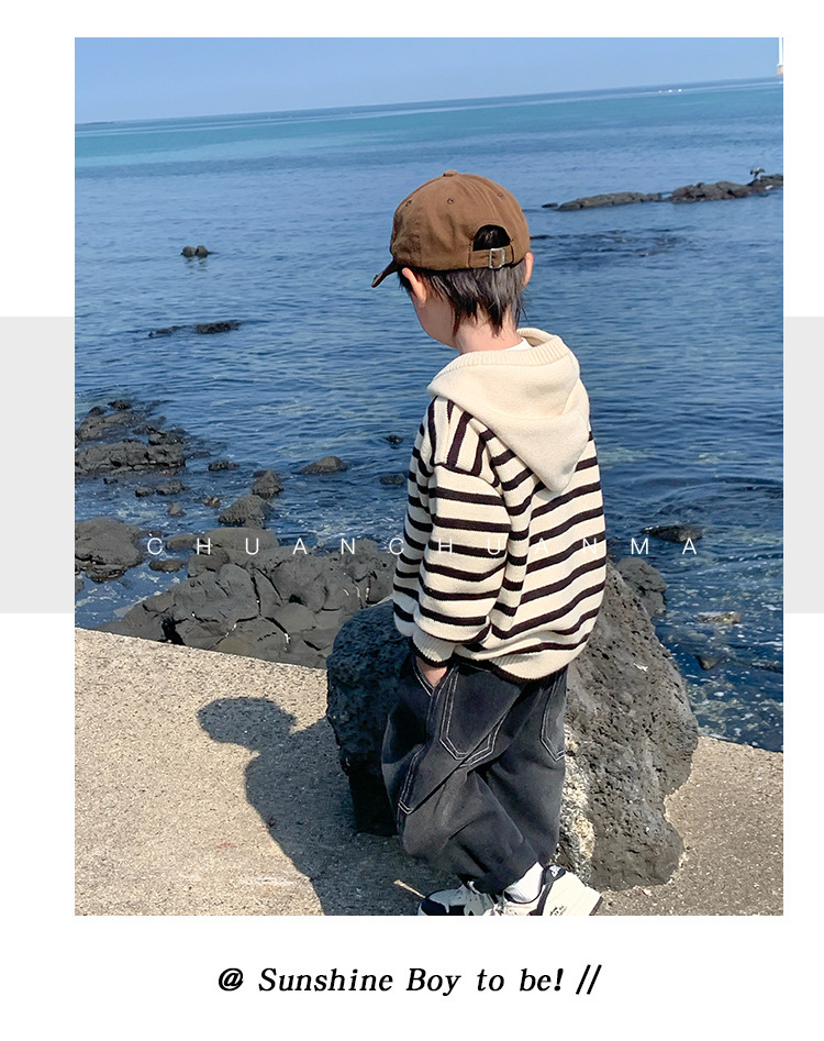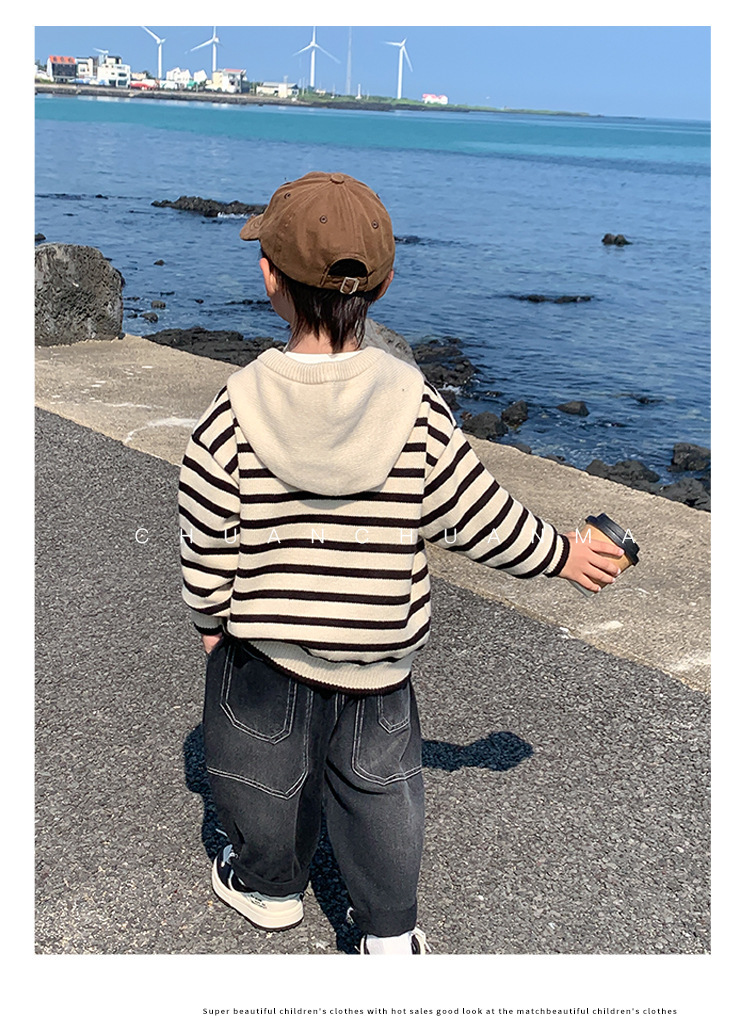 아기 스웨터 봄과 가을 소년의 니트웨어 어린이 가을 후드 탑 어린이 코트 얇은 소년의 가을 착용스토어 가기
