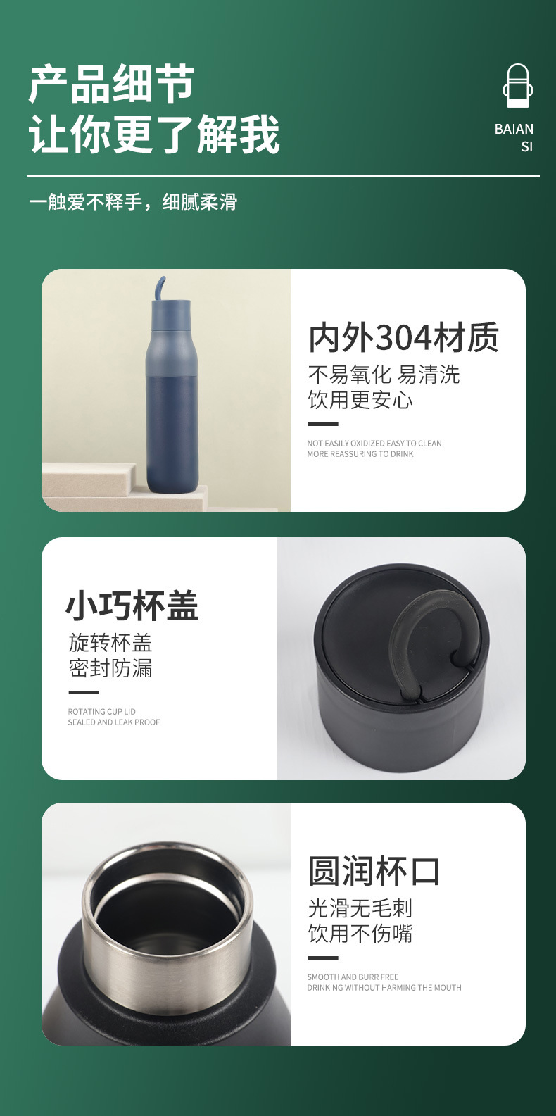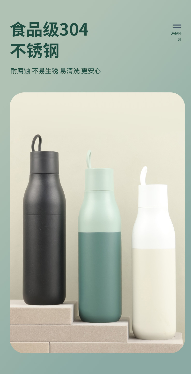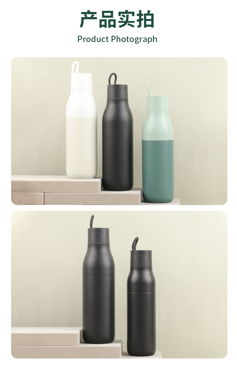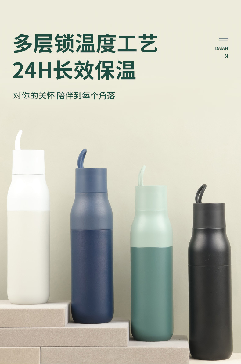 손잡이가 있는 맞춤형 보온병, 304 스테인리스 진공 물병, 휴대용 고급 단색 야외 스포츠 물병스토어 가기