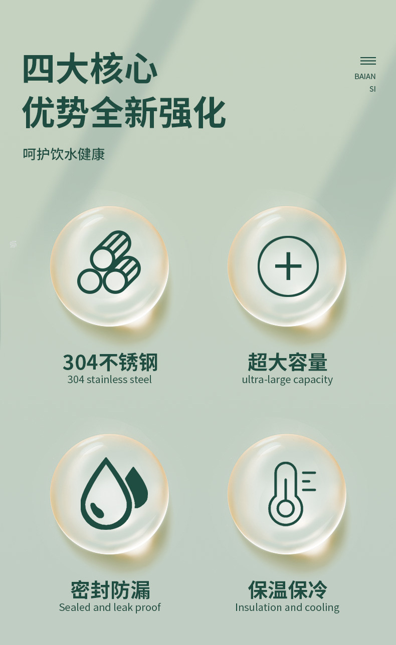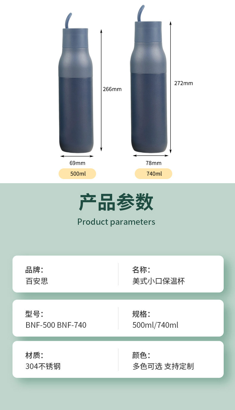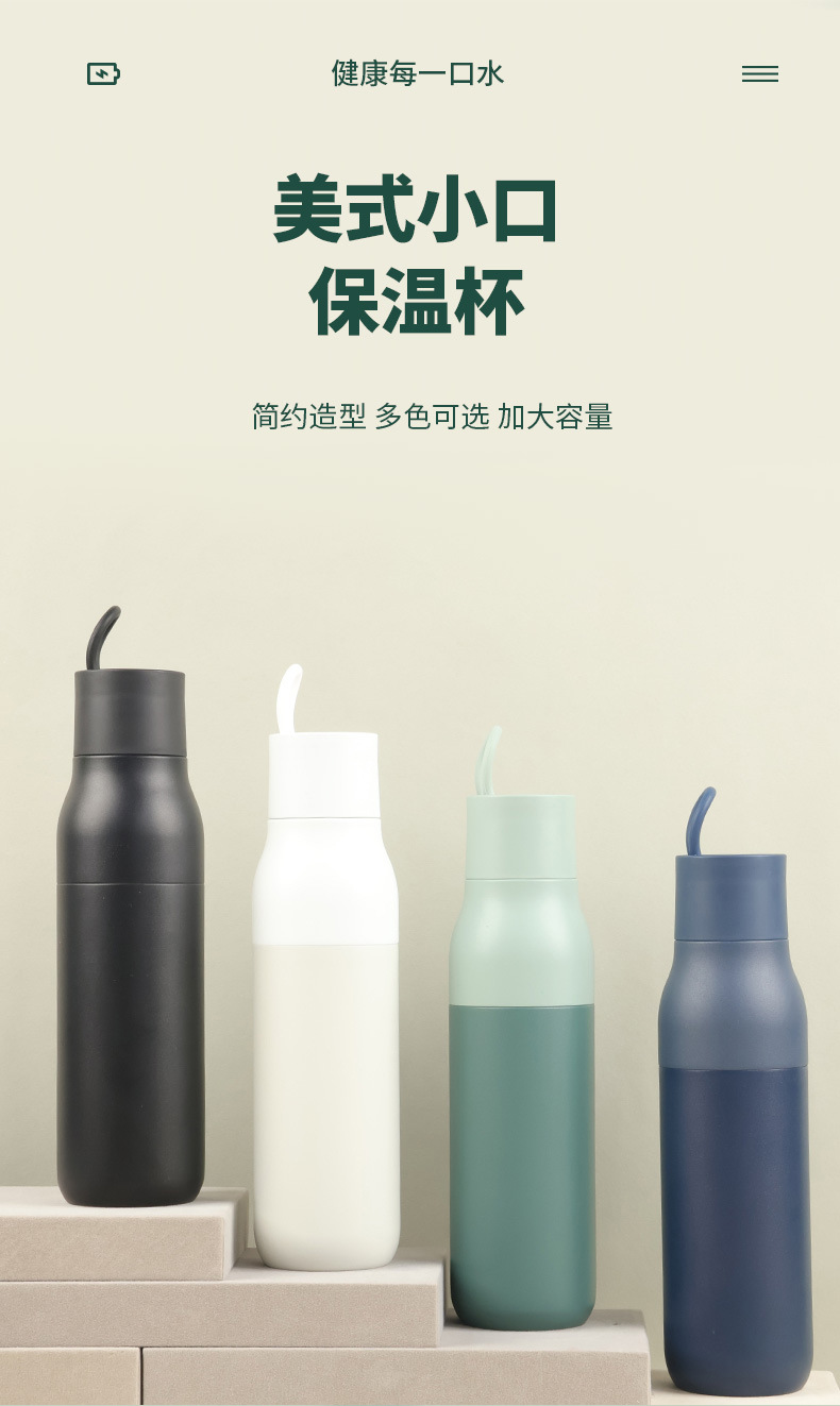 손잡이가 있는 맞춤형 보온병, 304 스테인리스 진공 물병, 휴대용 고급 단색 야외 스포츠 물병스토어 가기